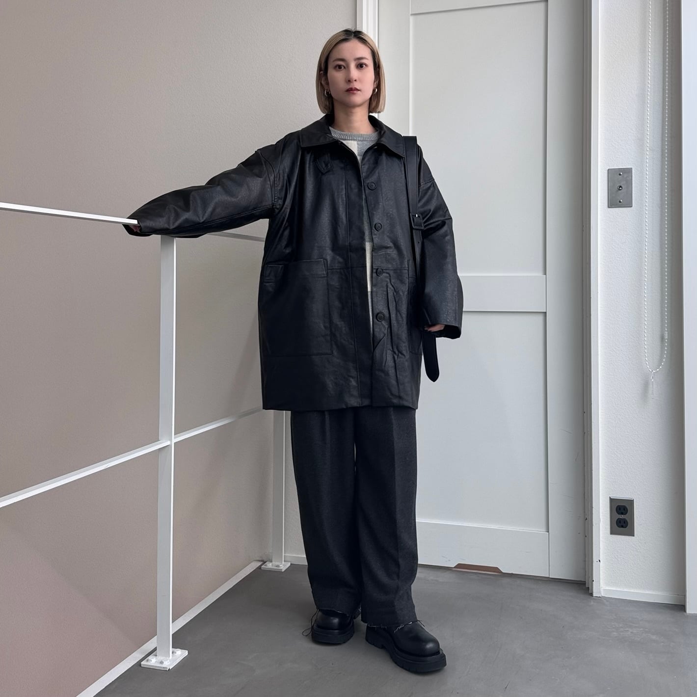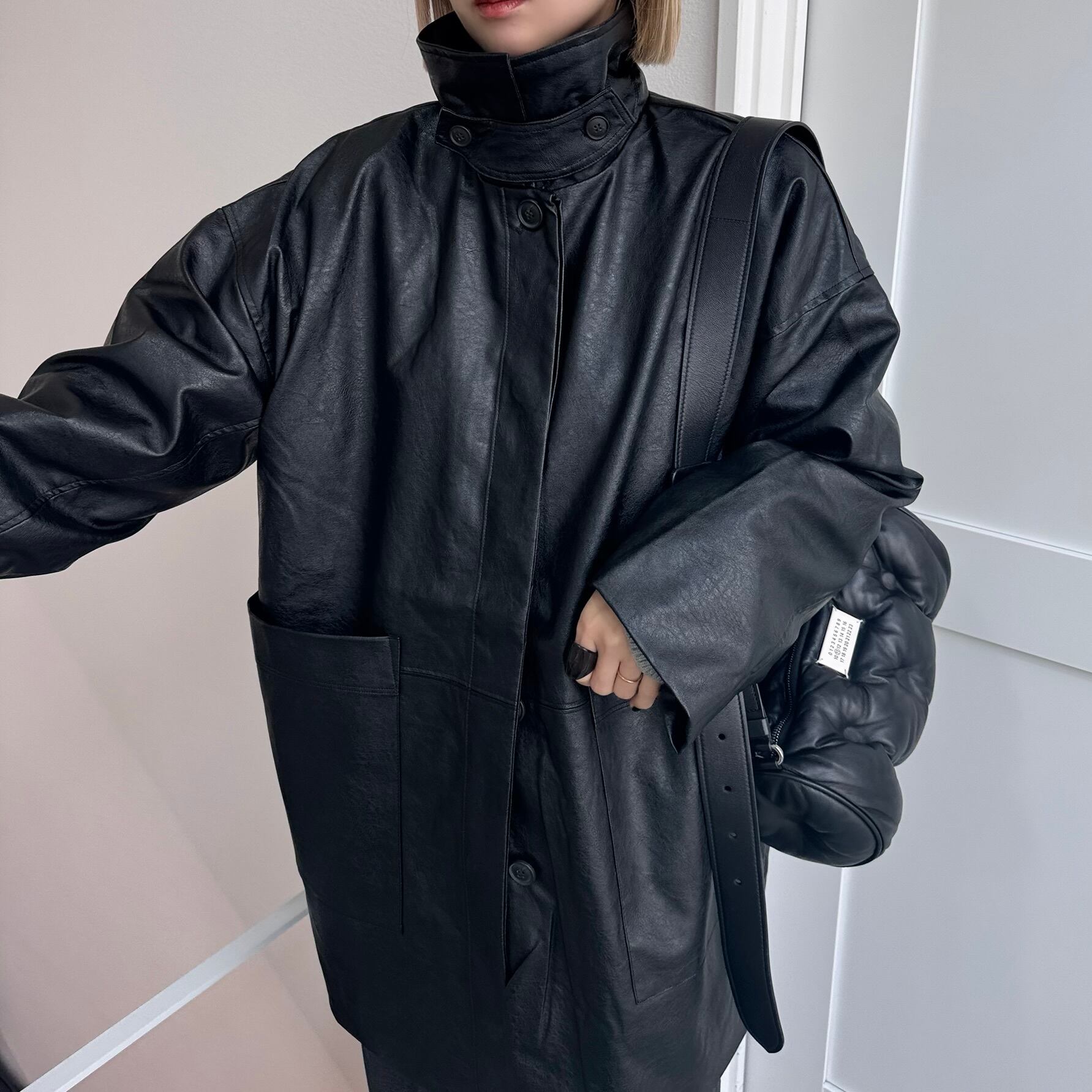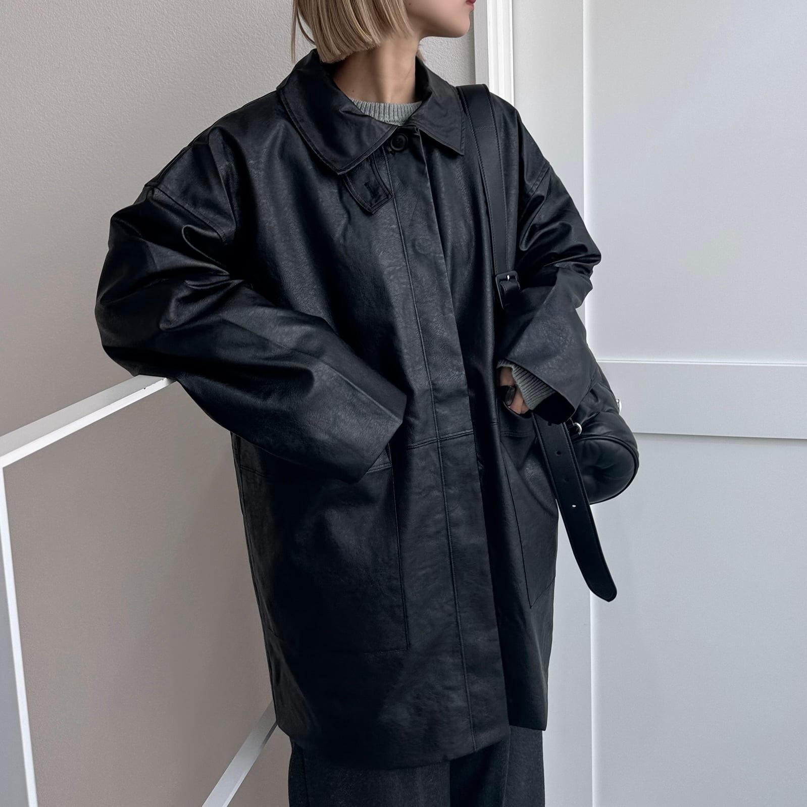オーバーサイズシルエットでヴィンテージライクな雰囲気が楽しめるフェイクレザーコート。長めにデザインされたミドル丈で、気になる腰回りもカバー◎パンツスタイルはもちろん、ワンピースやスカートに合わせてもコーディネートを引き締めてくれます。フロントの大きめのポケットもポイントで、襟はステンカラー・スタンドカラーの2way仕様。長時間着用しても気にならないライトアウターとしてデイリーに取り入れやすく、ロングシーズン着用できる万能アイテムです。