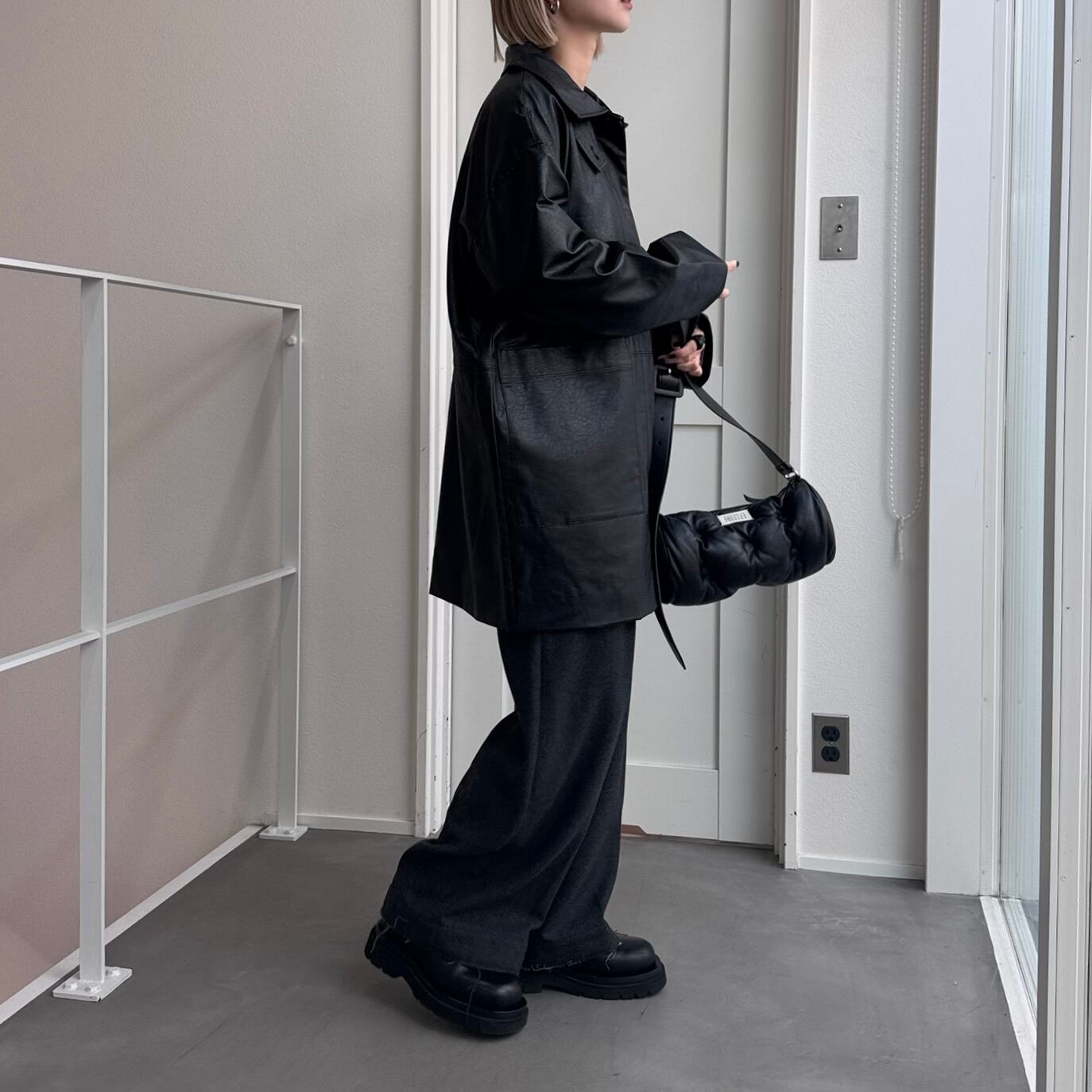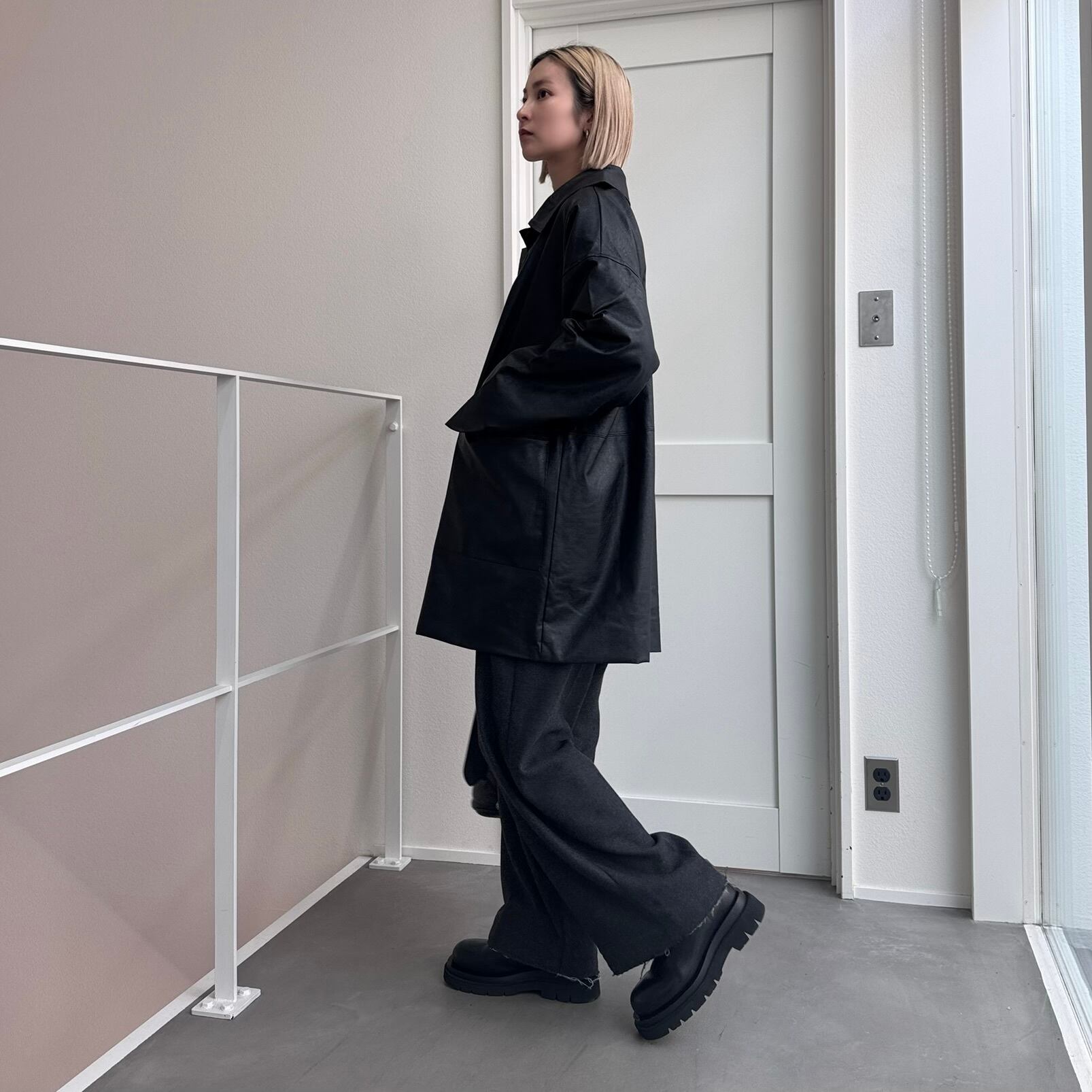 【受注販売】レザーライクオーバーJK/ブラック