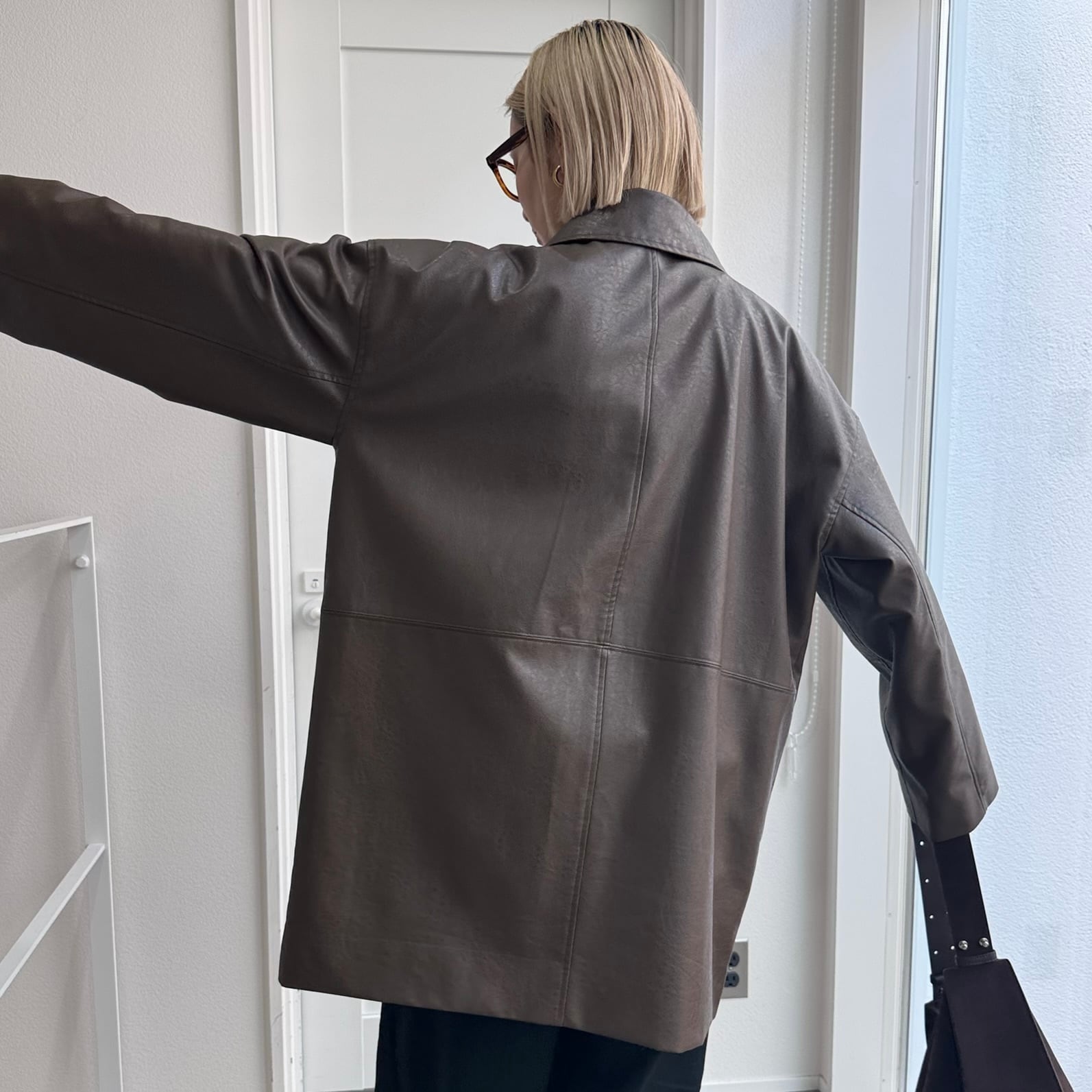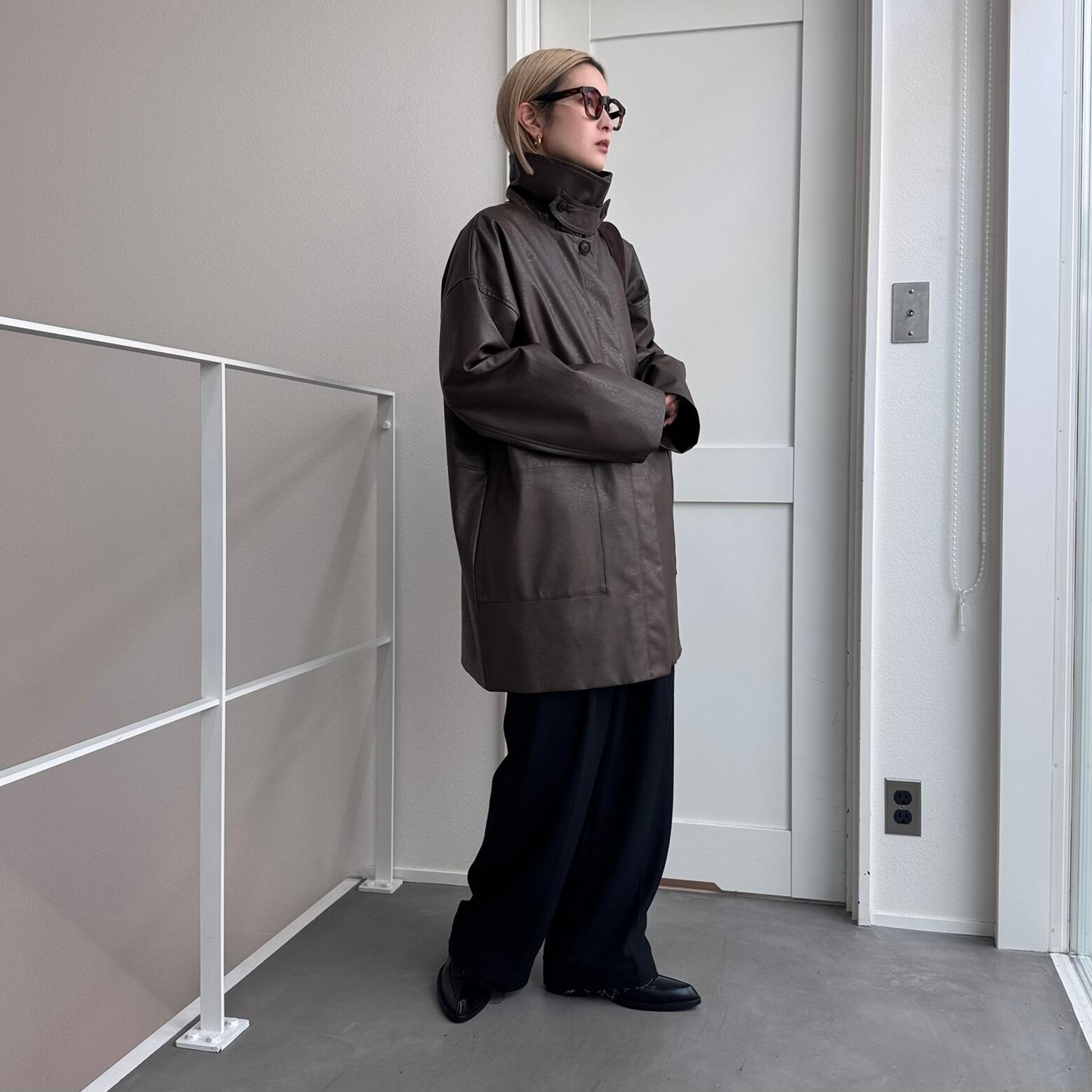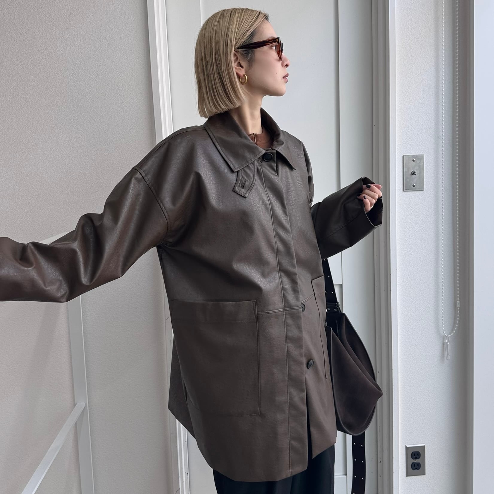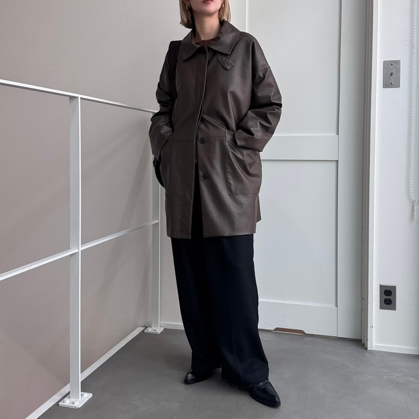 オーバーサイズシルエットでヴィンテージライクな雰囲気が楽しめるフェイクレザーコート。長めにデザインされたミドル丈で、気になる腰回りもカバー◎パンツスタイルはもちろん、ワンピースやスカートに合わせてもコーディネートを引き締めてくれます。フロントの大きめのポケットもポイントで、襟はステンカラー・スタンドカラーの2way仕様。長時間着用しても気にならないライトアウターとしてデイリーに取り入れやすく、ロングシーズン着用できる万能アイテムです。