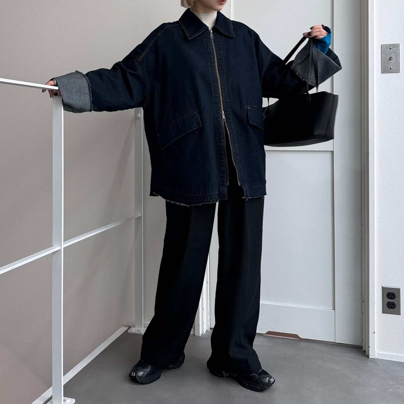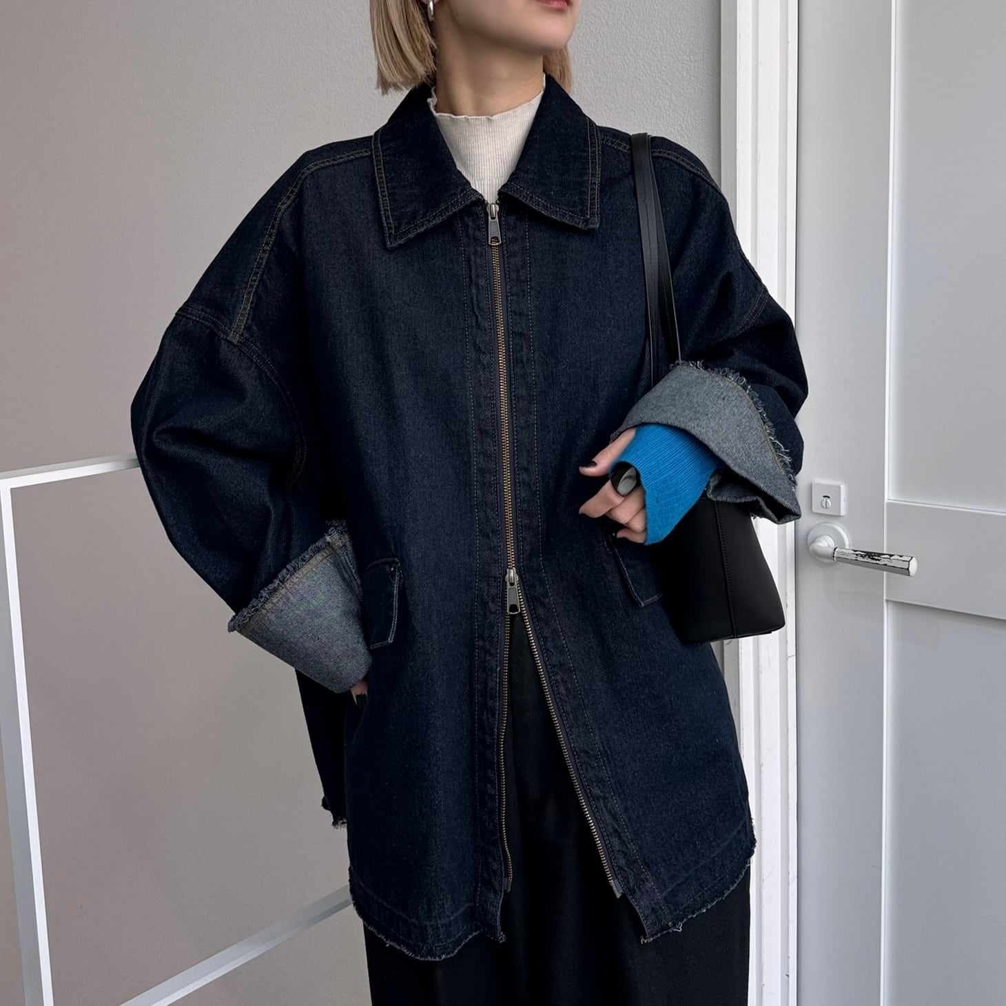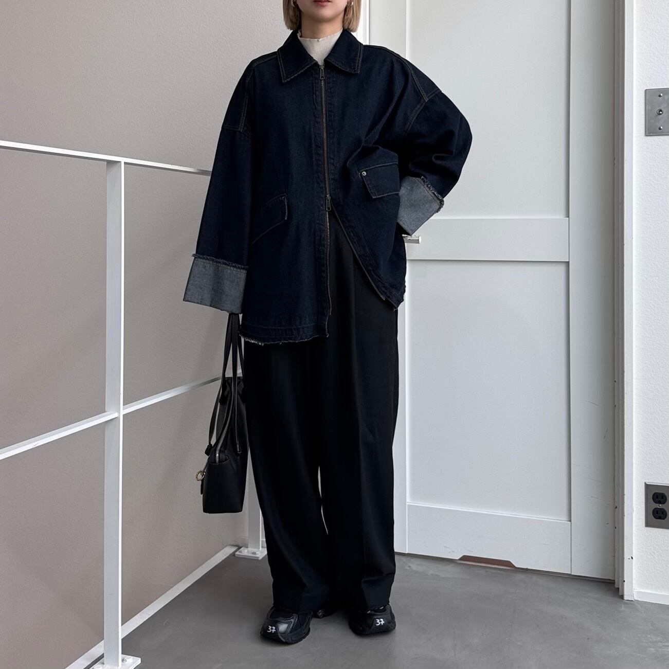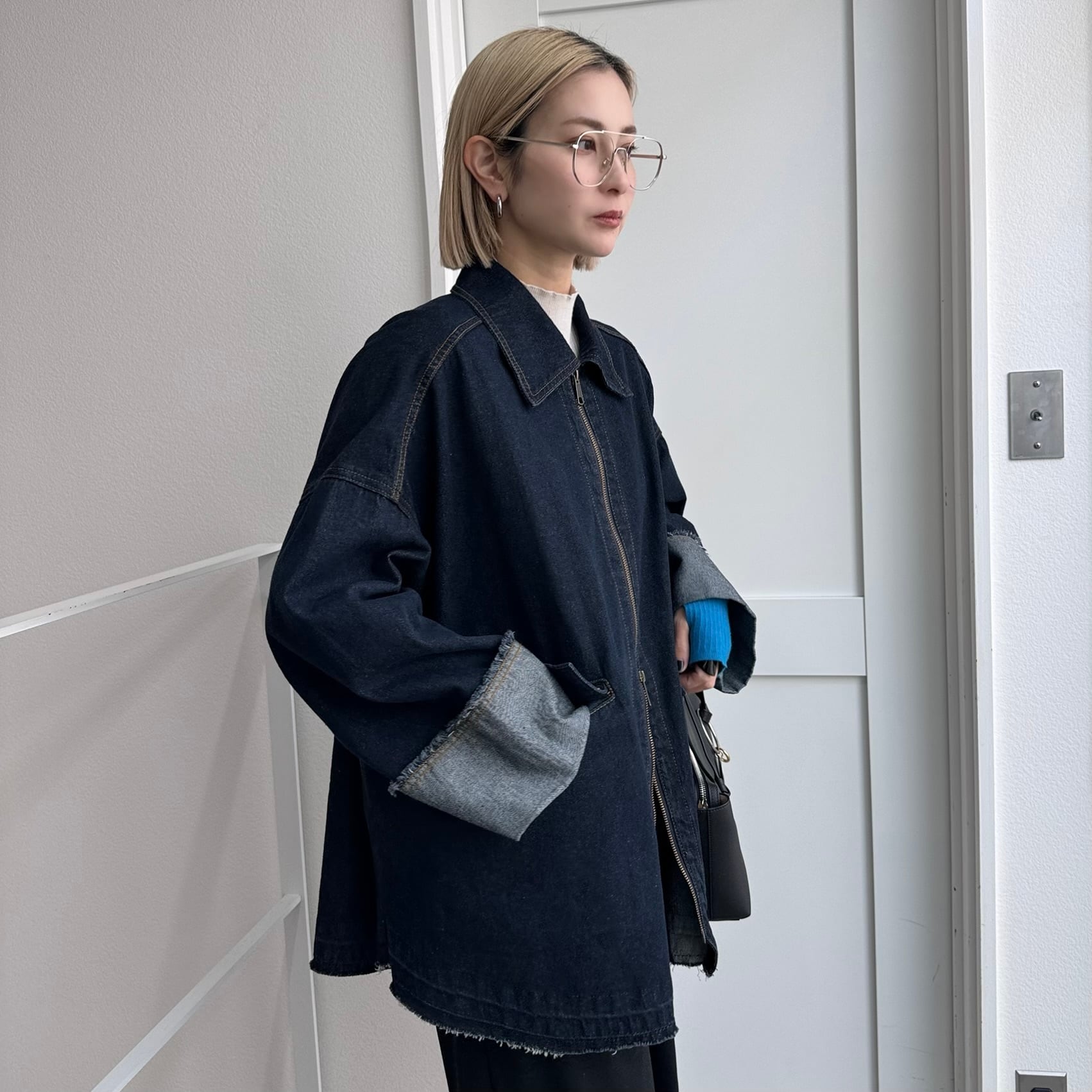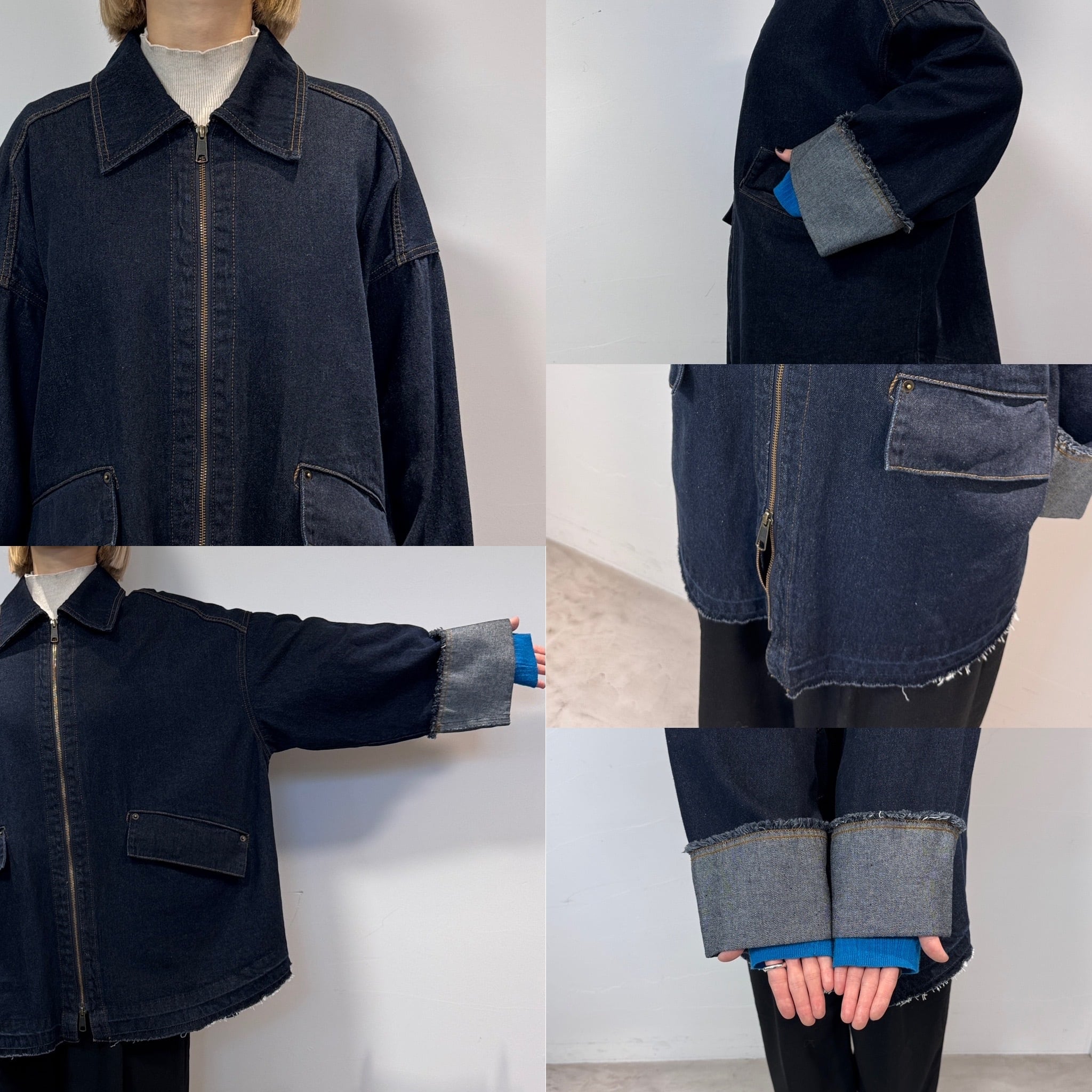 W zip フリンジツイルデニムオーバーJK/インディゴ