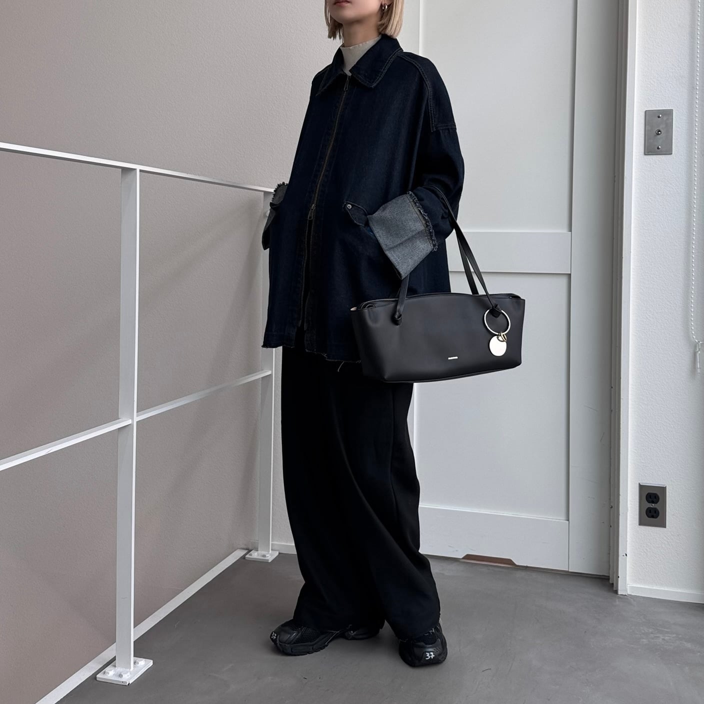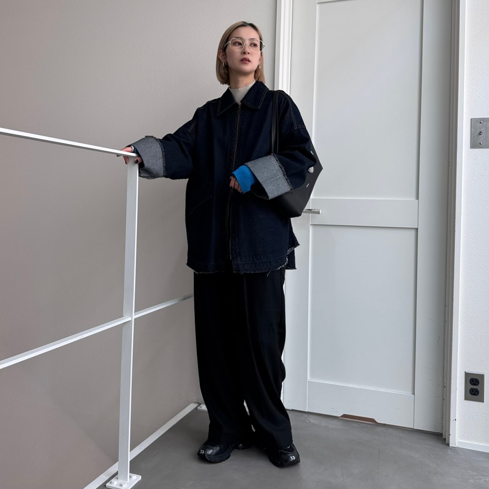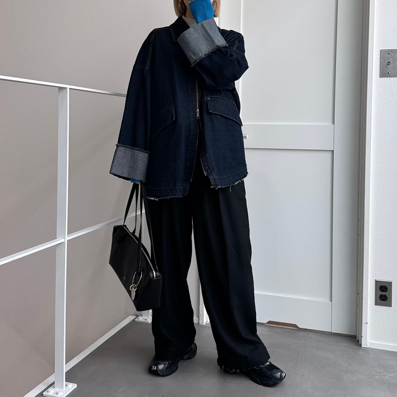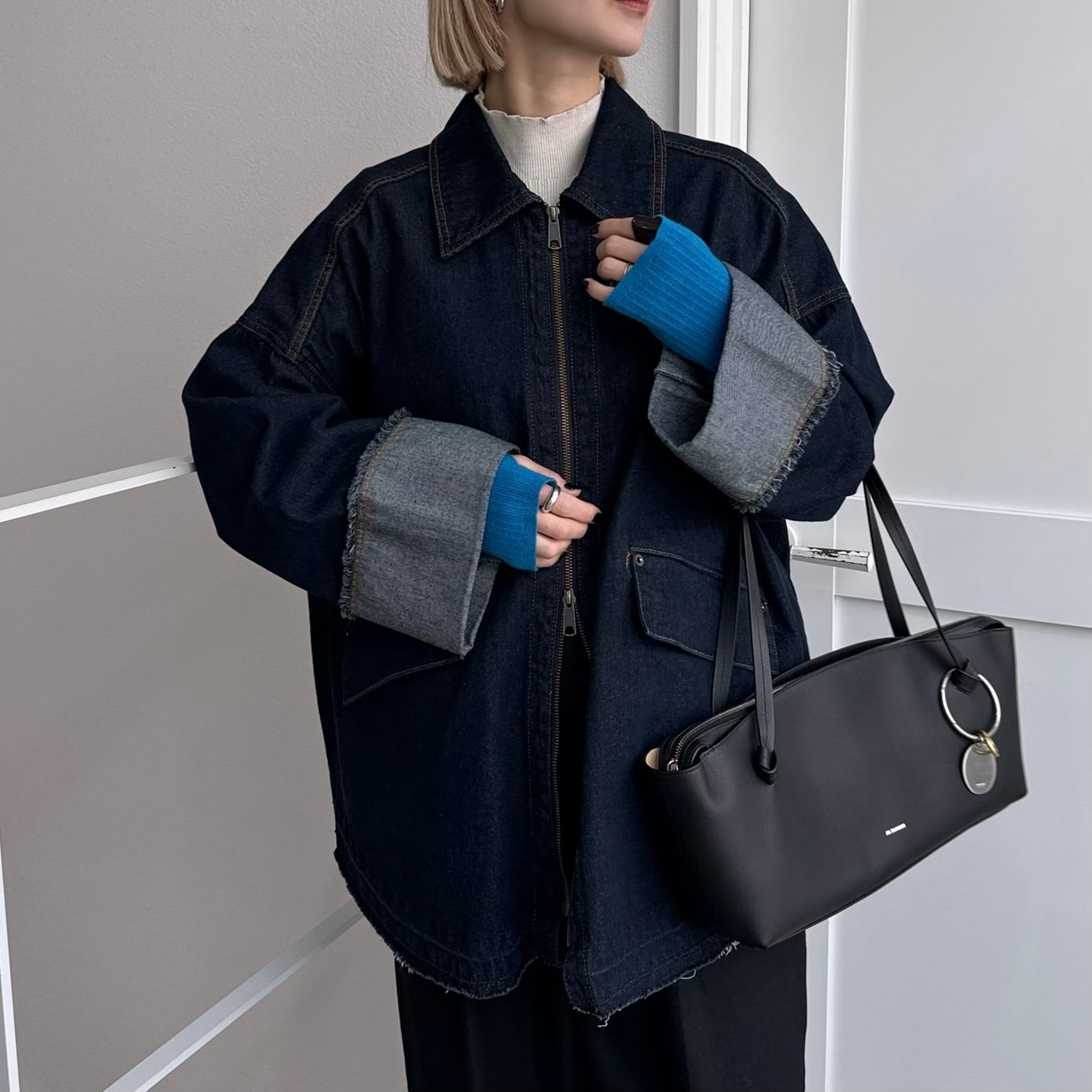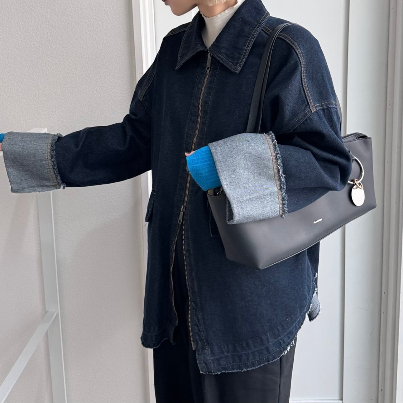 W zip フリンジツイルデニムオーバーJK/インディゴ