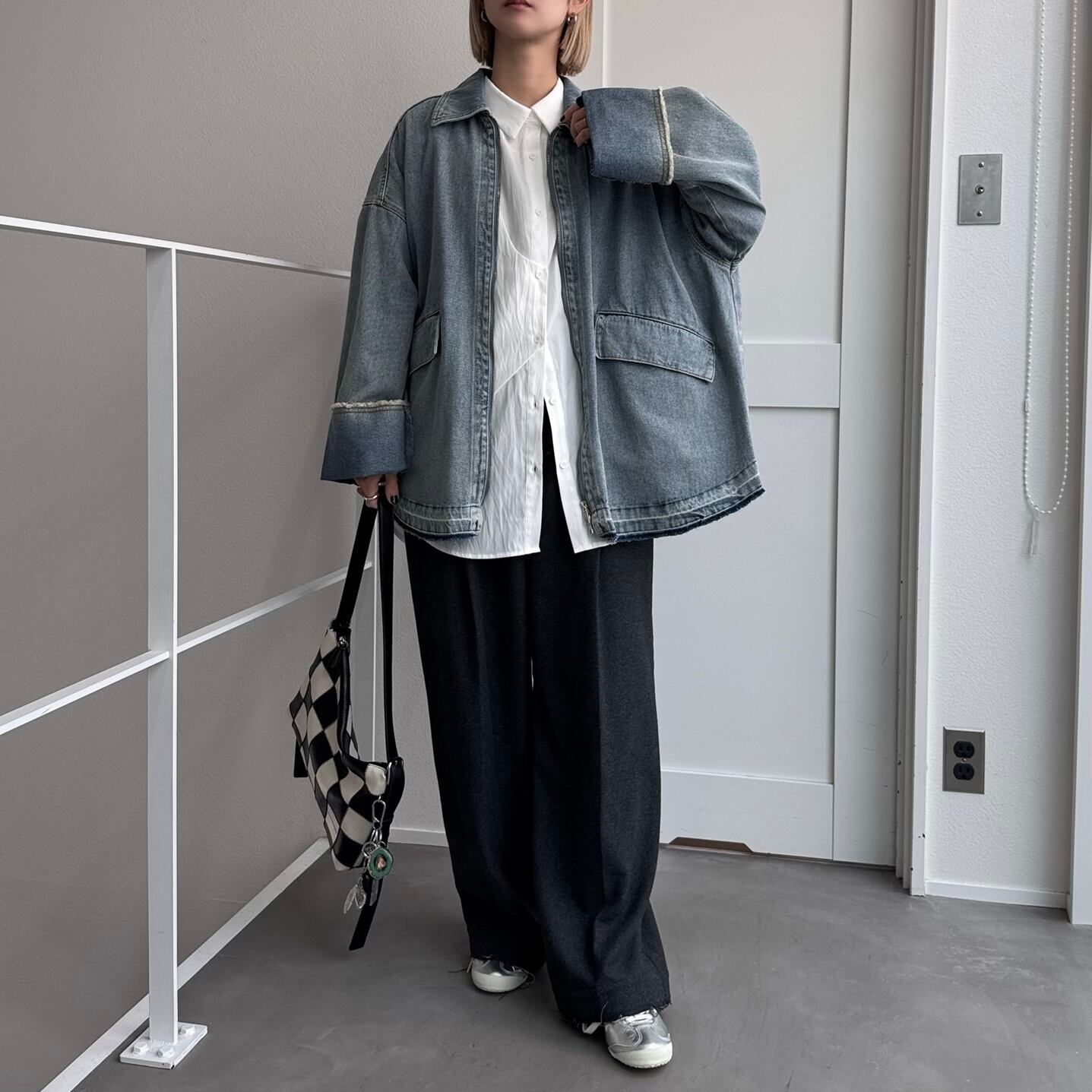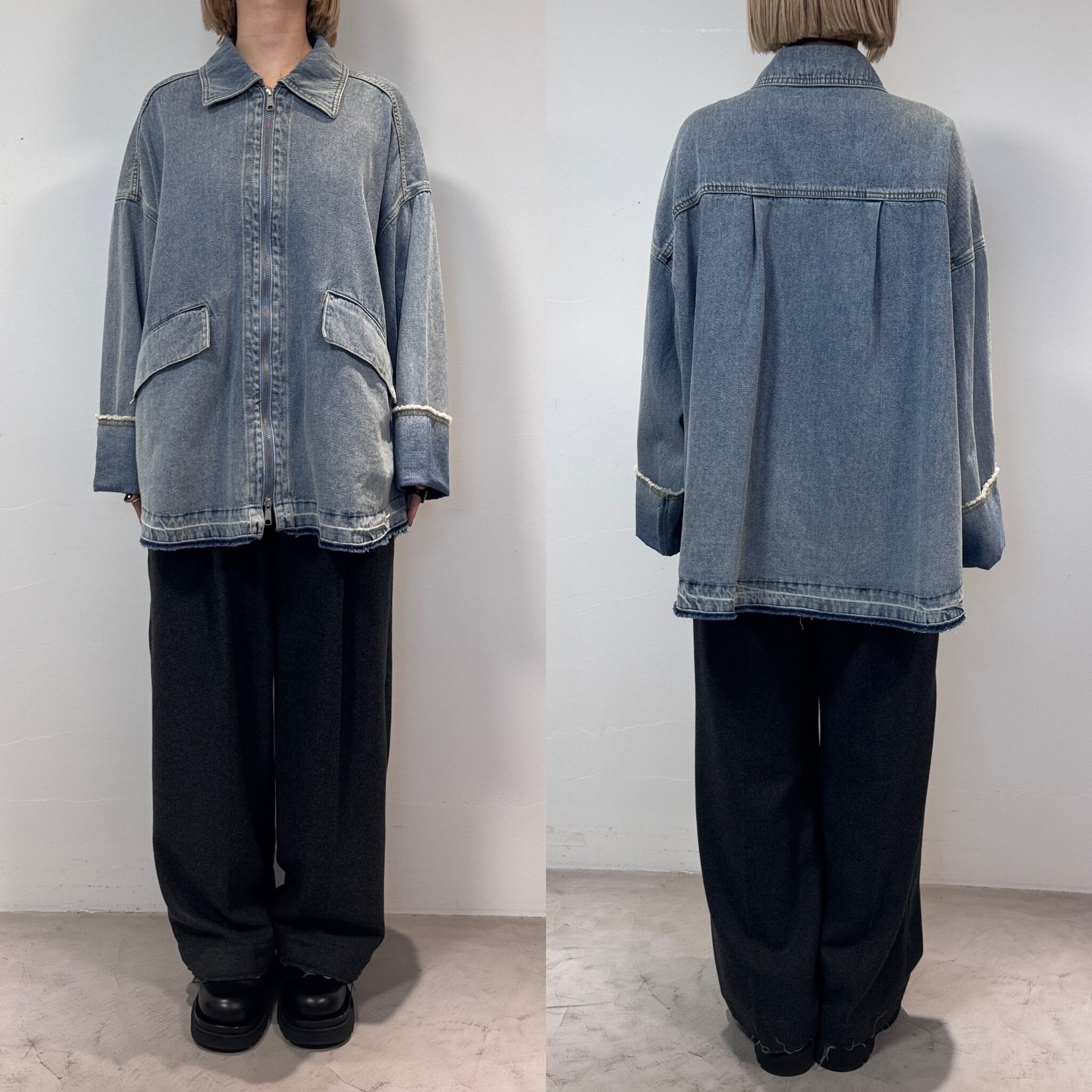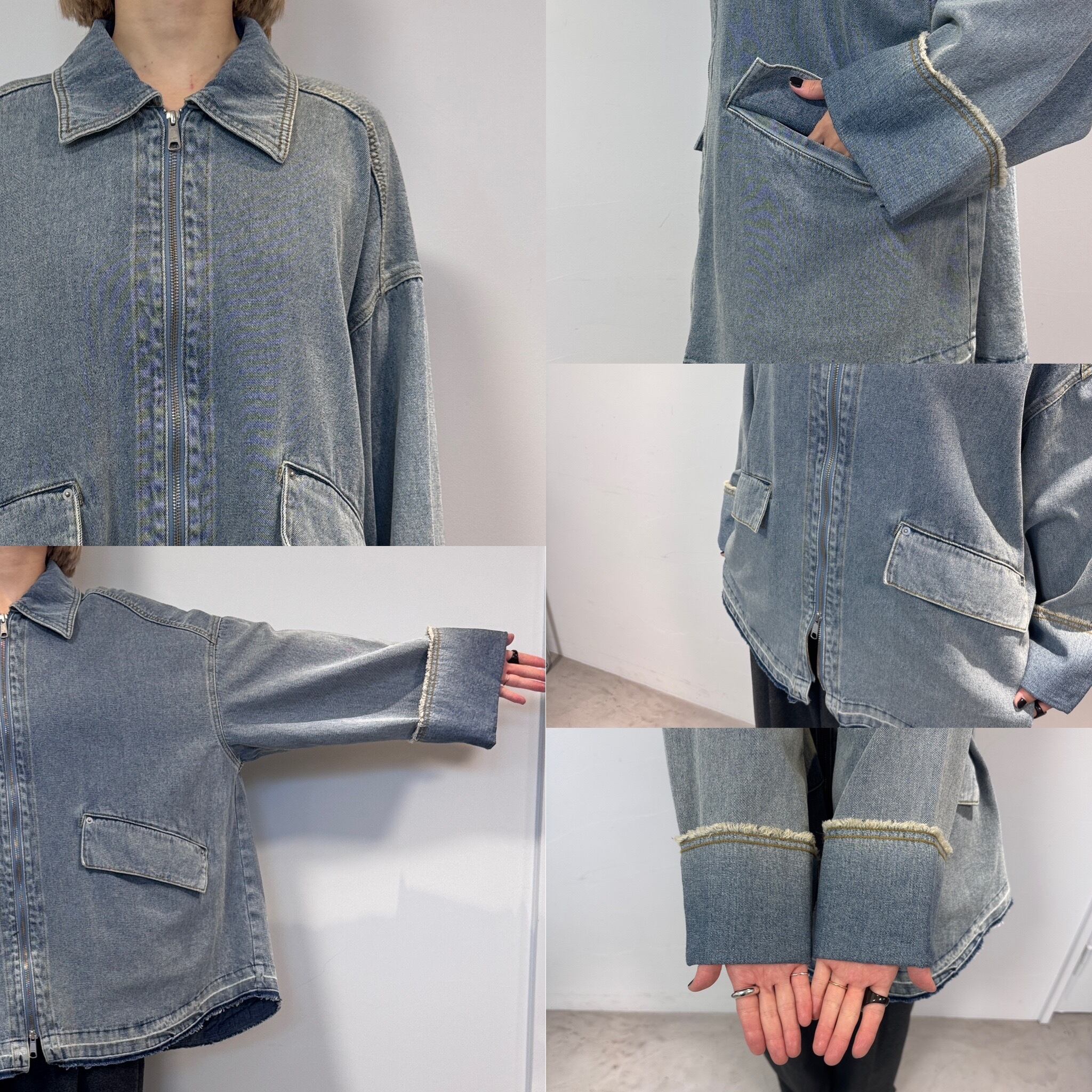 【受注予約:1月下旬入荷予定】W zip フリンジツイルデニムオーバーJK/ブルー