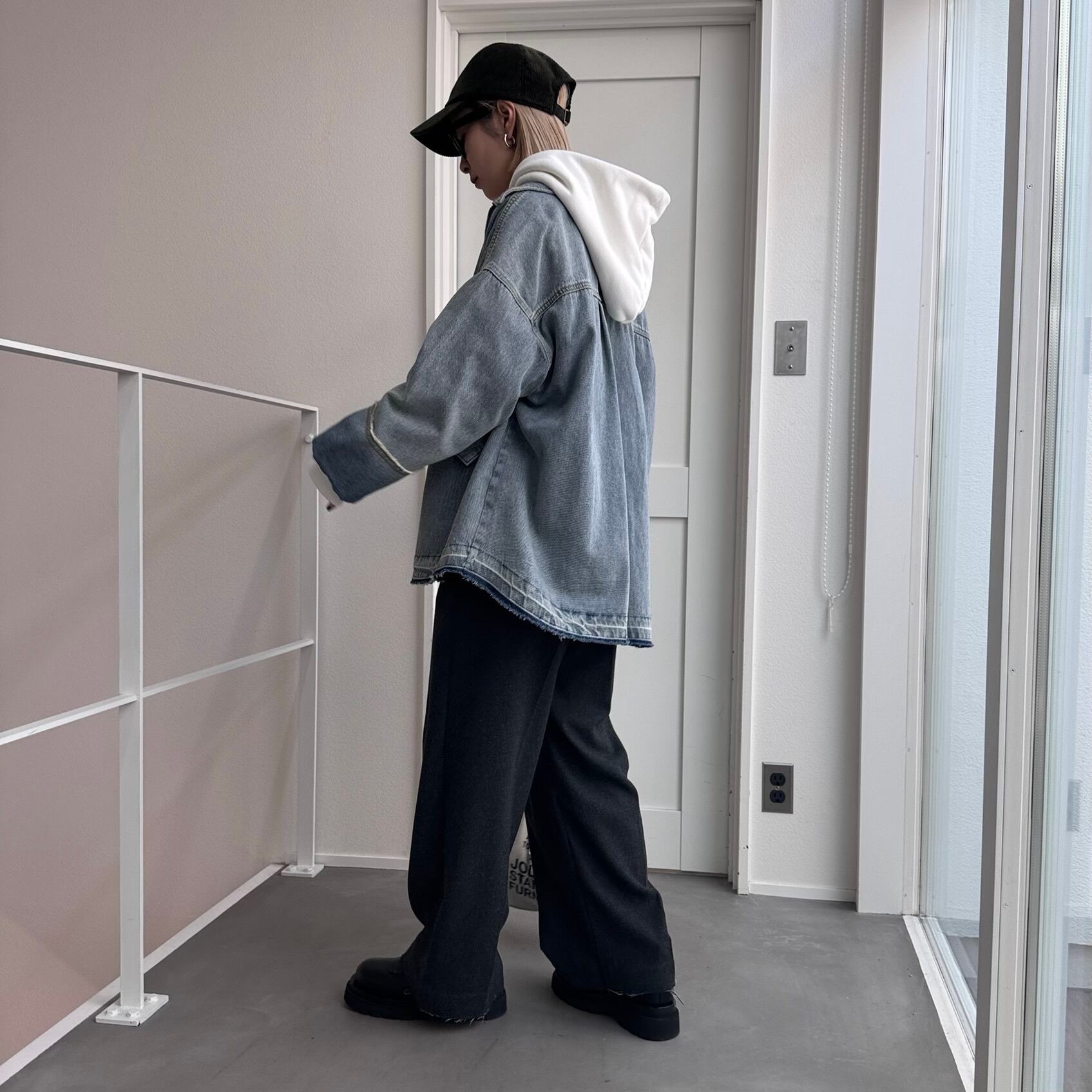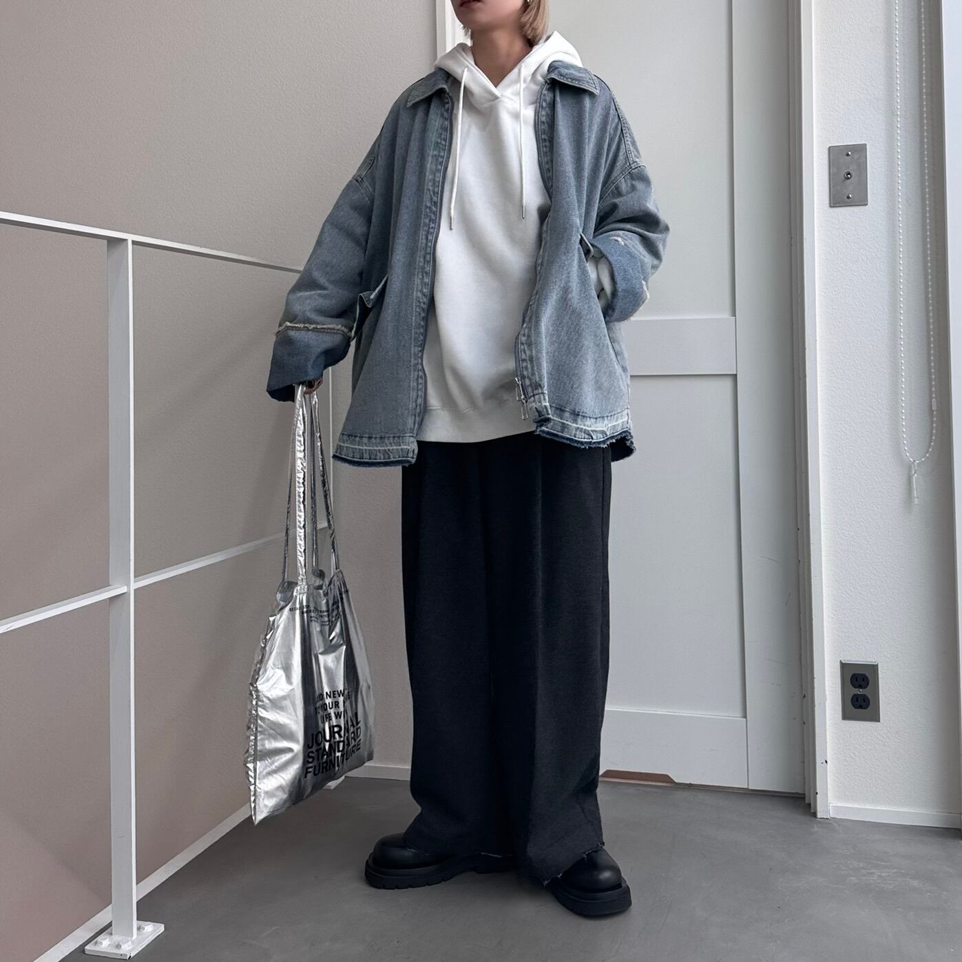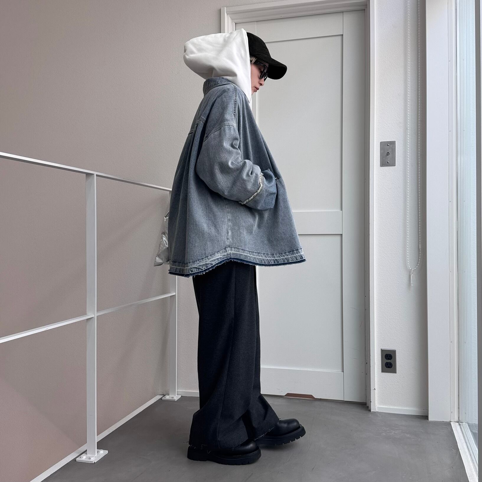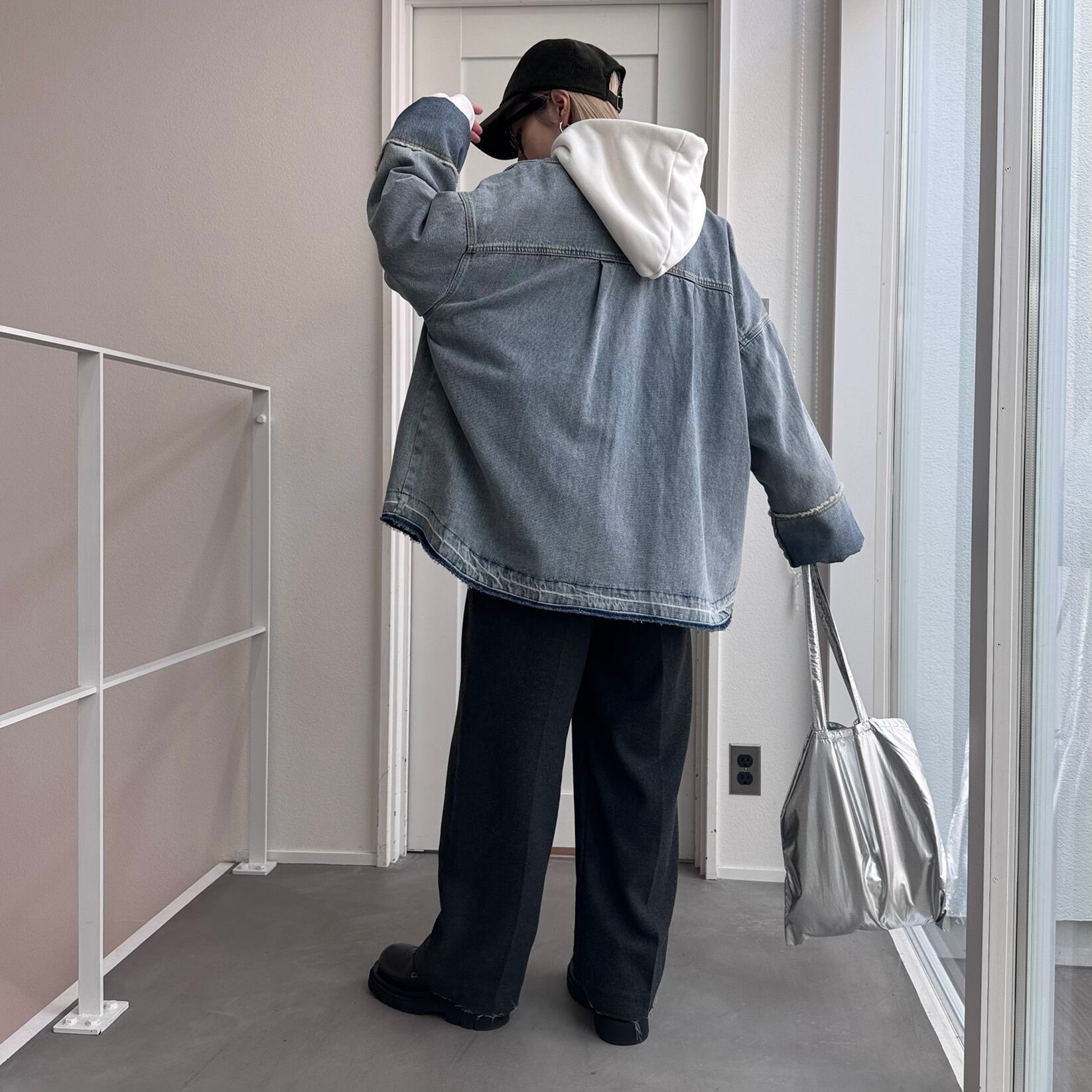 【受注予約:1月下旬入荷予定】W zip フリンジツイルデニムオーバーJK/ブルー