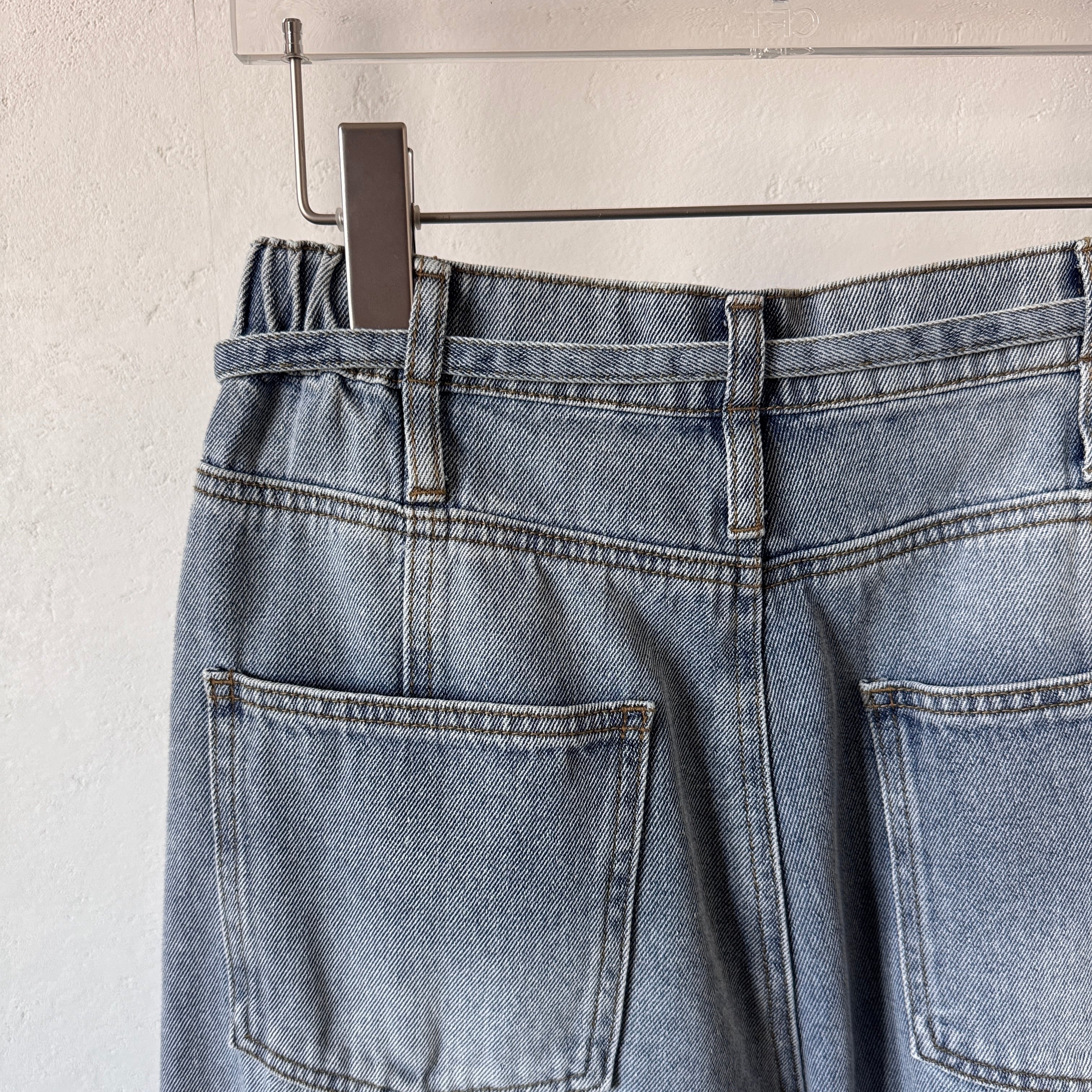 【受注予約:1月下旬入荷予定】ベルト付ステッチデザインカーブデニムPT/ブルー