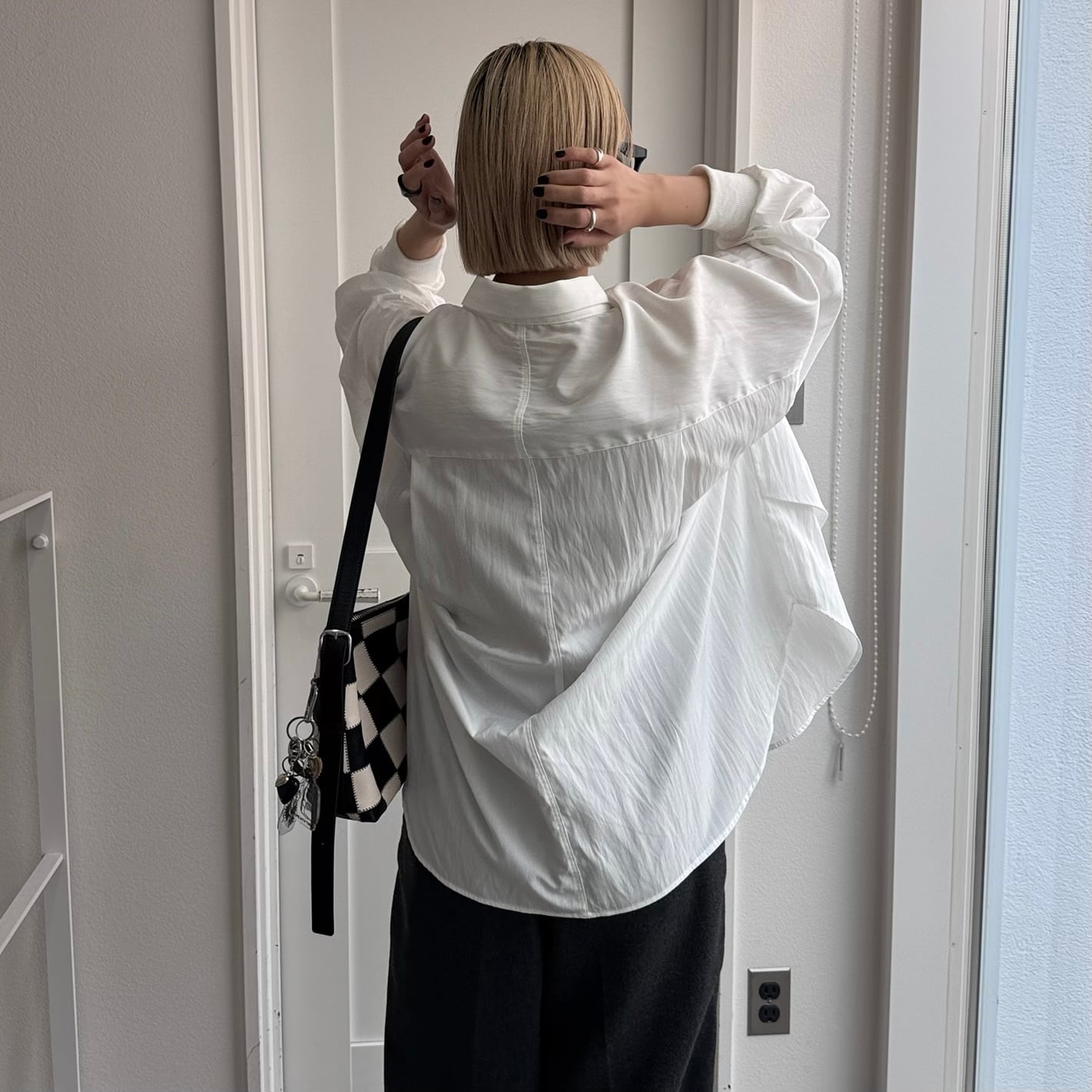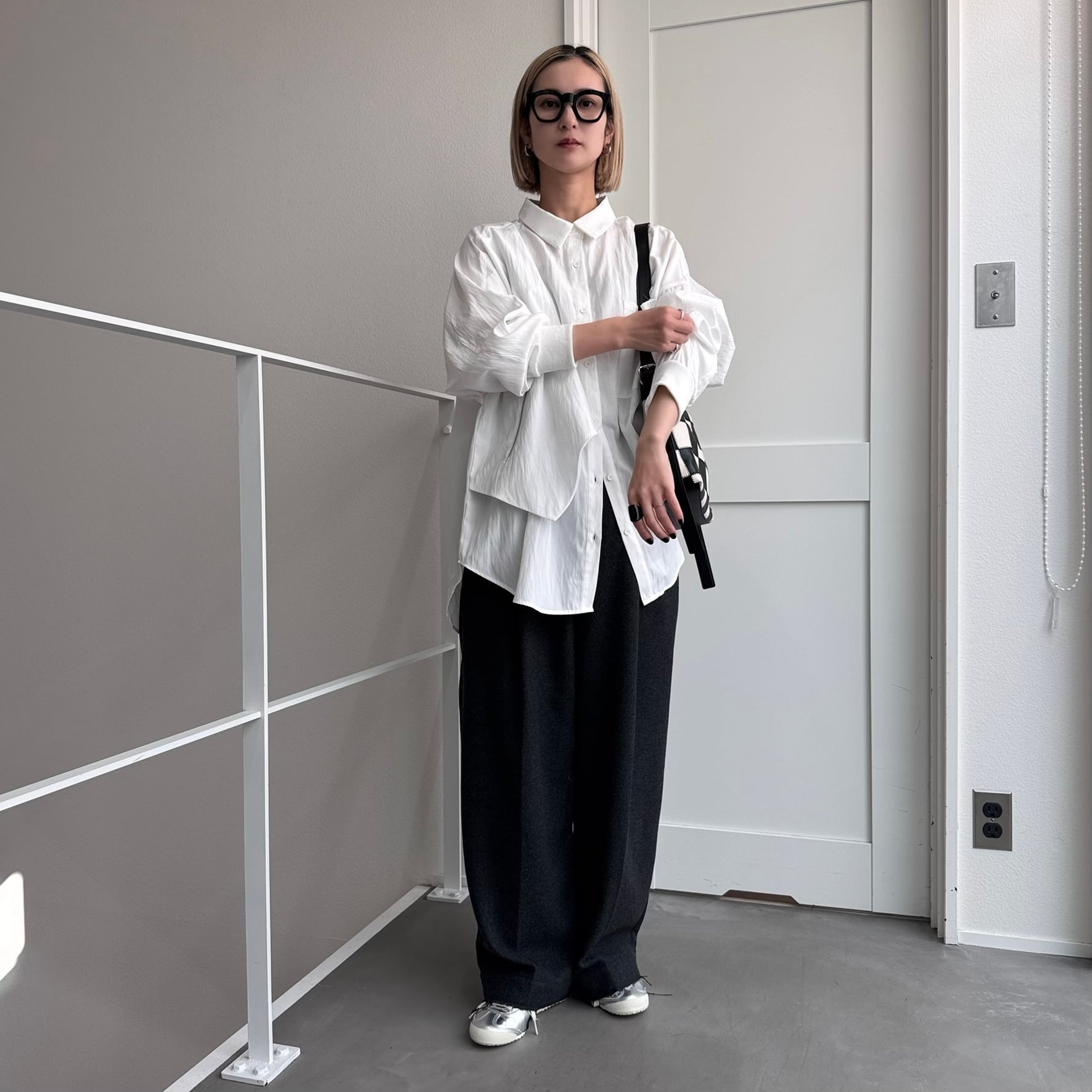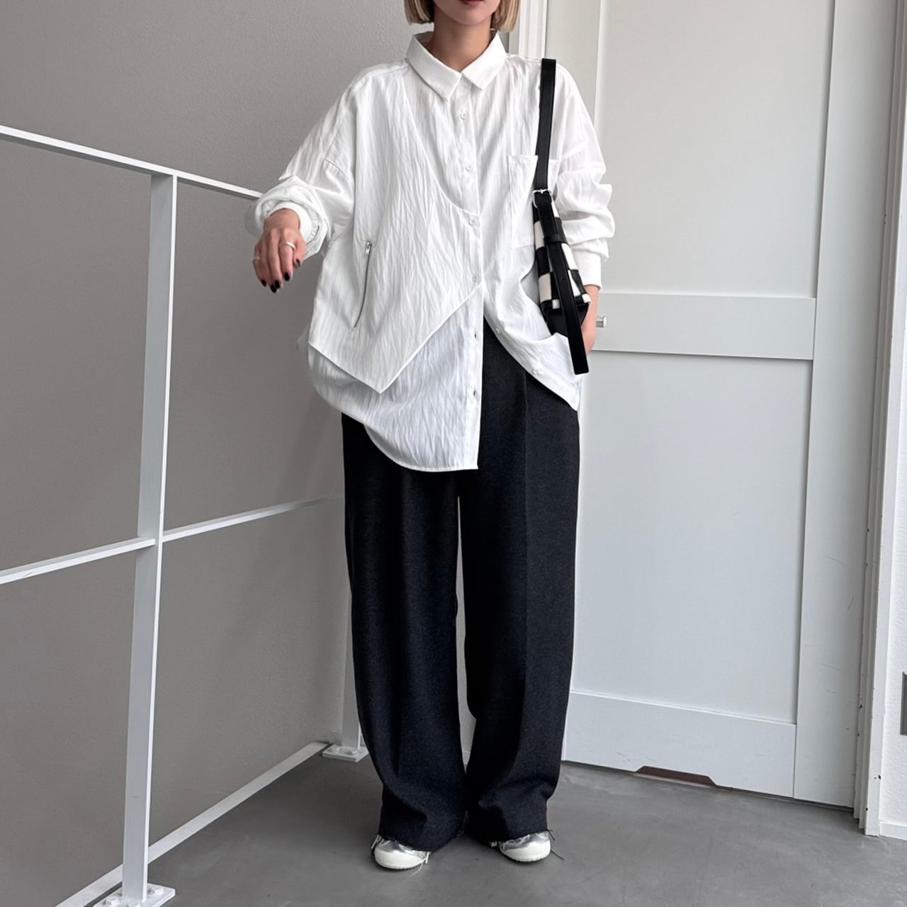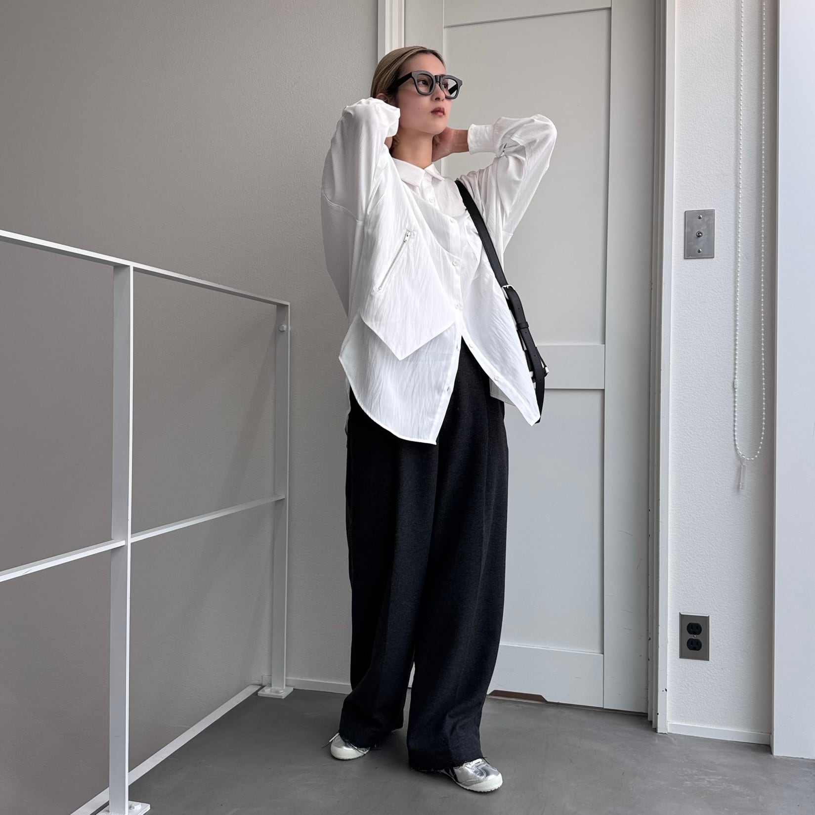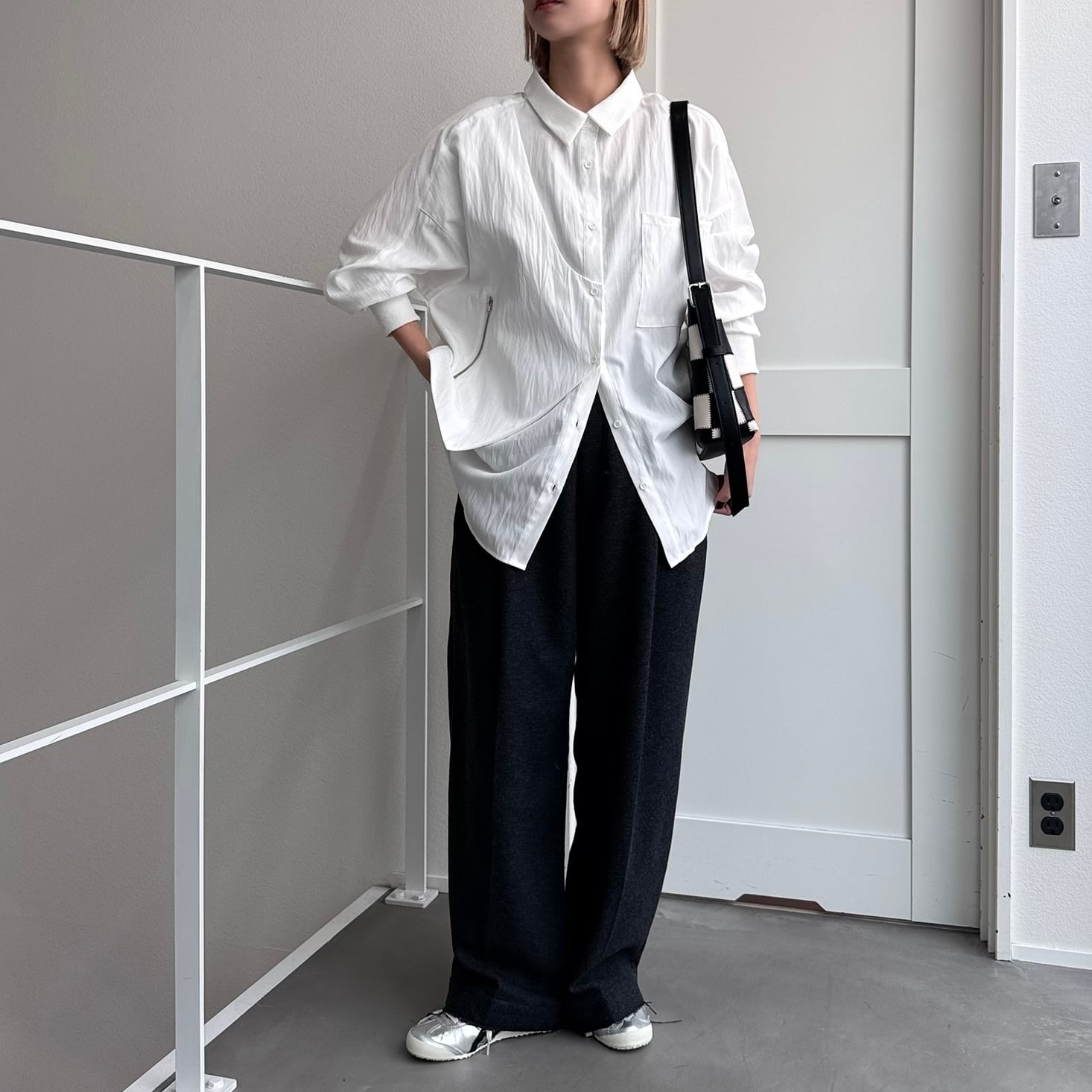 ジップ付きのベストのようなパネルがドッキングされたレイヤード風オーバーシャツ。ほんのり光沢感としわ加工が施されたようなテクスチャ。さらに袖リブ仕様で動きやすさをプラス。オーバーサイズでゆったりとしたシルエットでありながら、カジュアルモードな雰囲気を演出。ボトムは選ばないので、どんなコーディネートにも合わせやすいです。