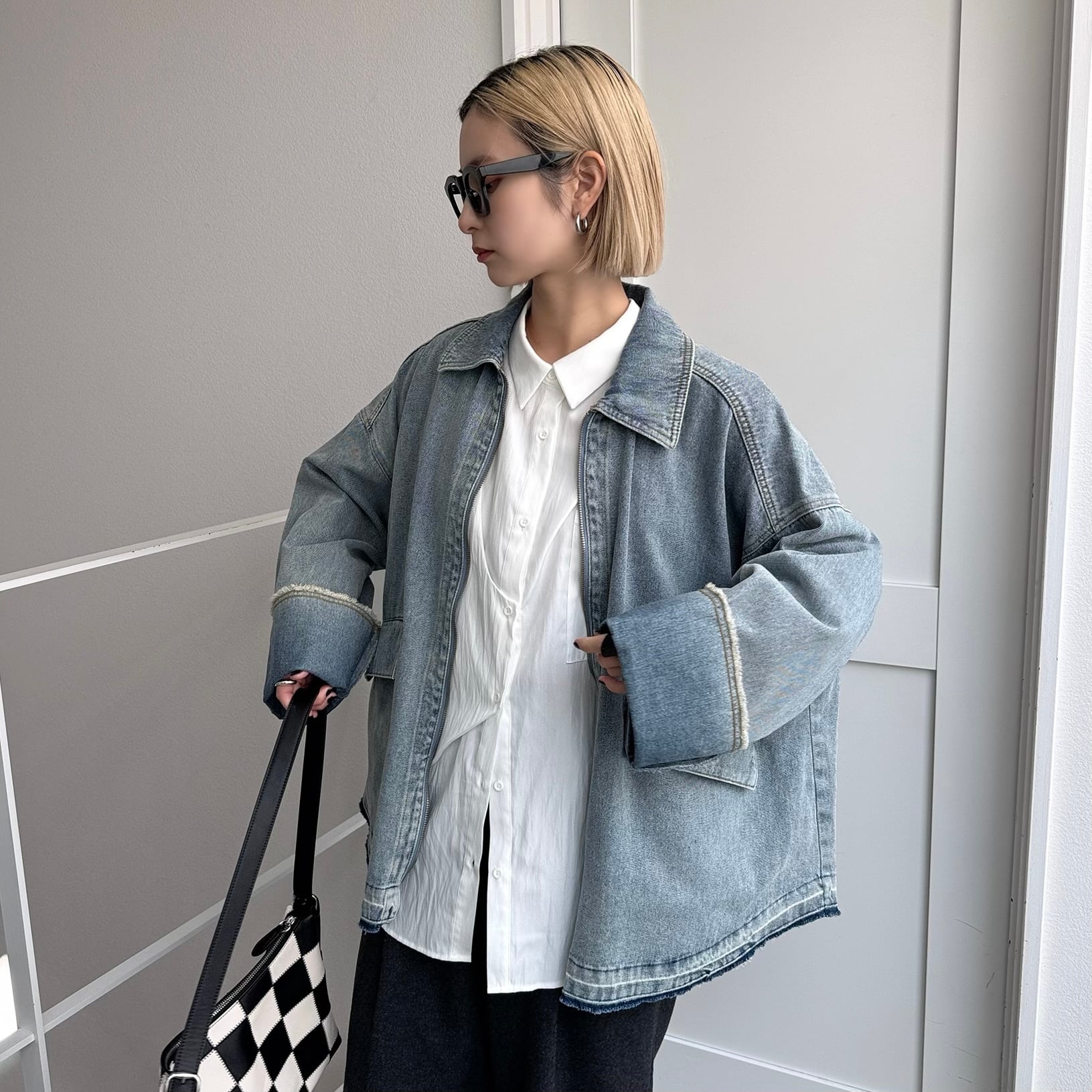 JK:W zip フリンジツイルデニムオーバーJK/ブルー