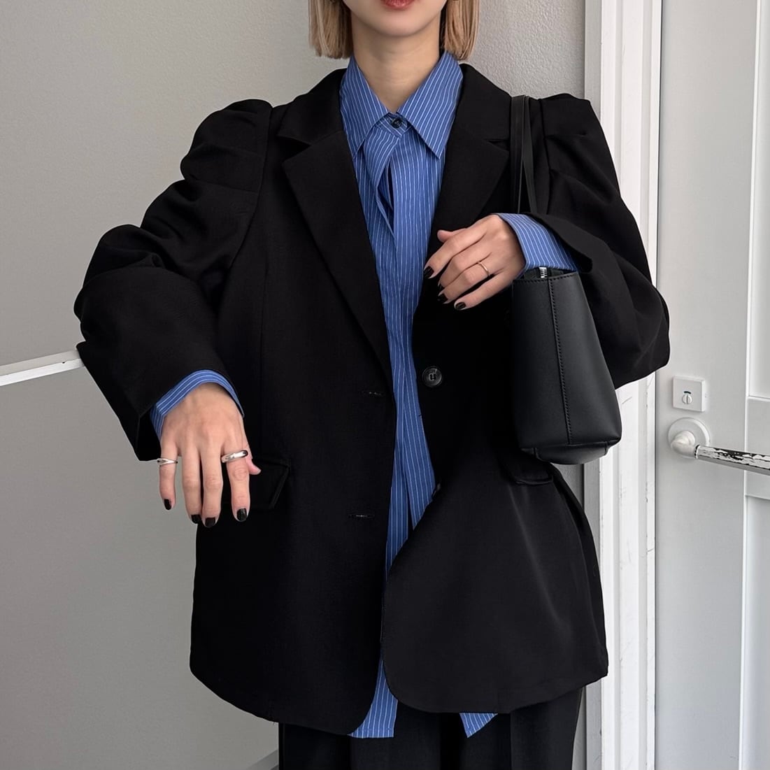 【鹿児島先行販売】パフスリーブシングルテーラードJK/ブラック