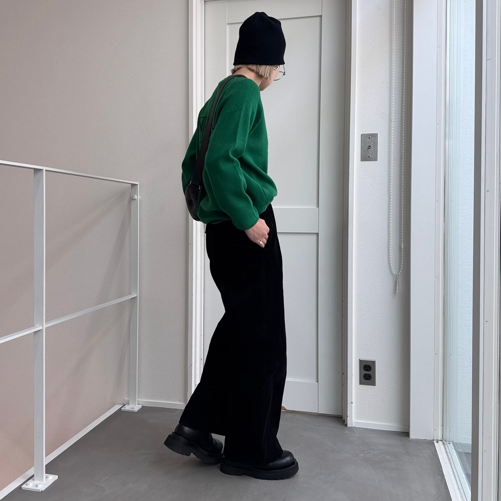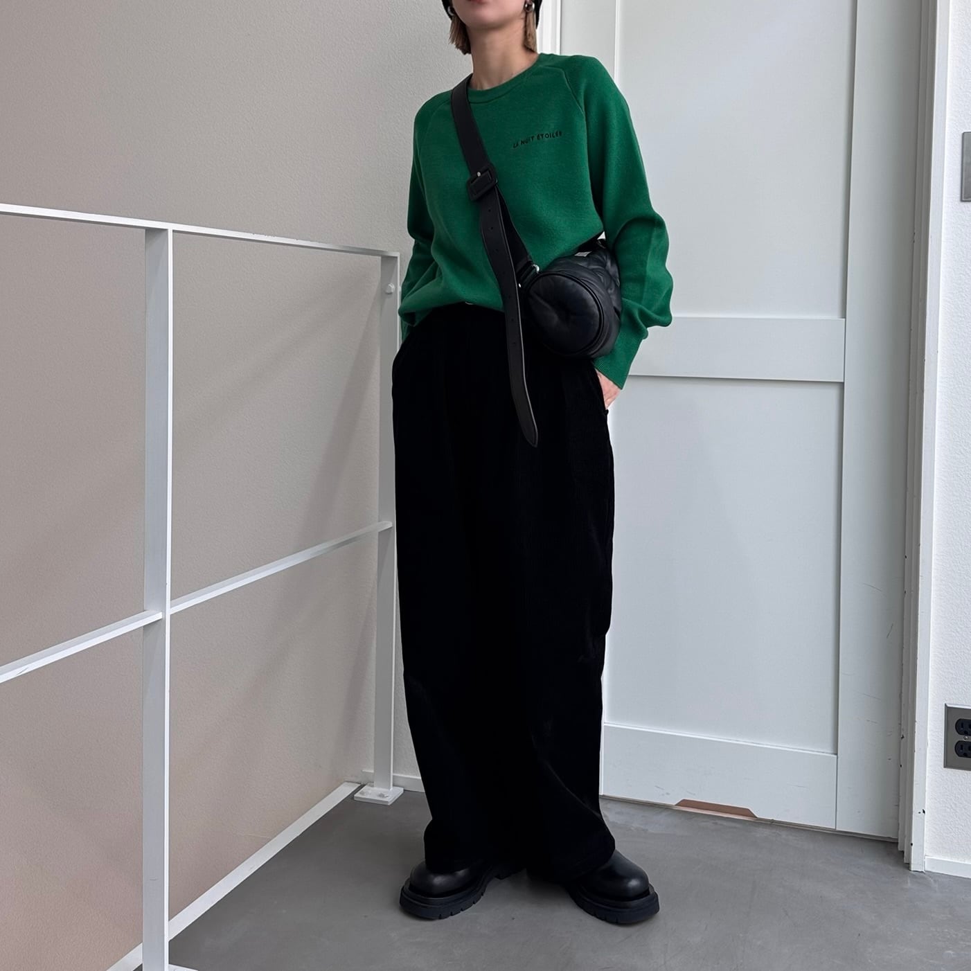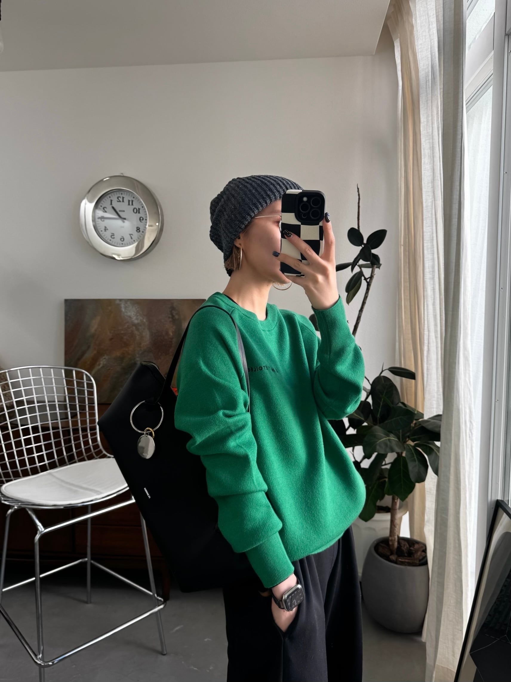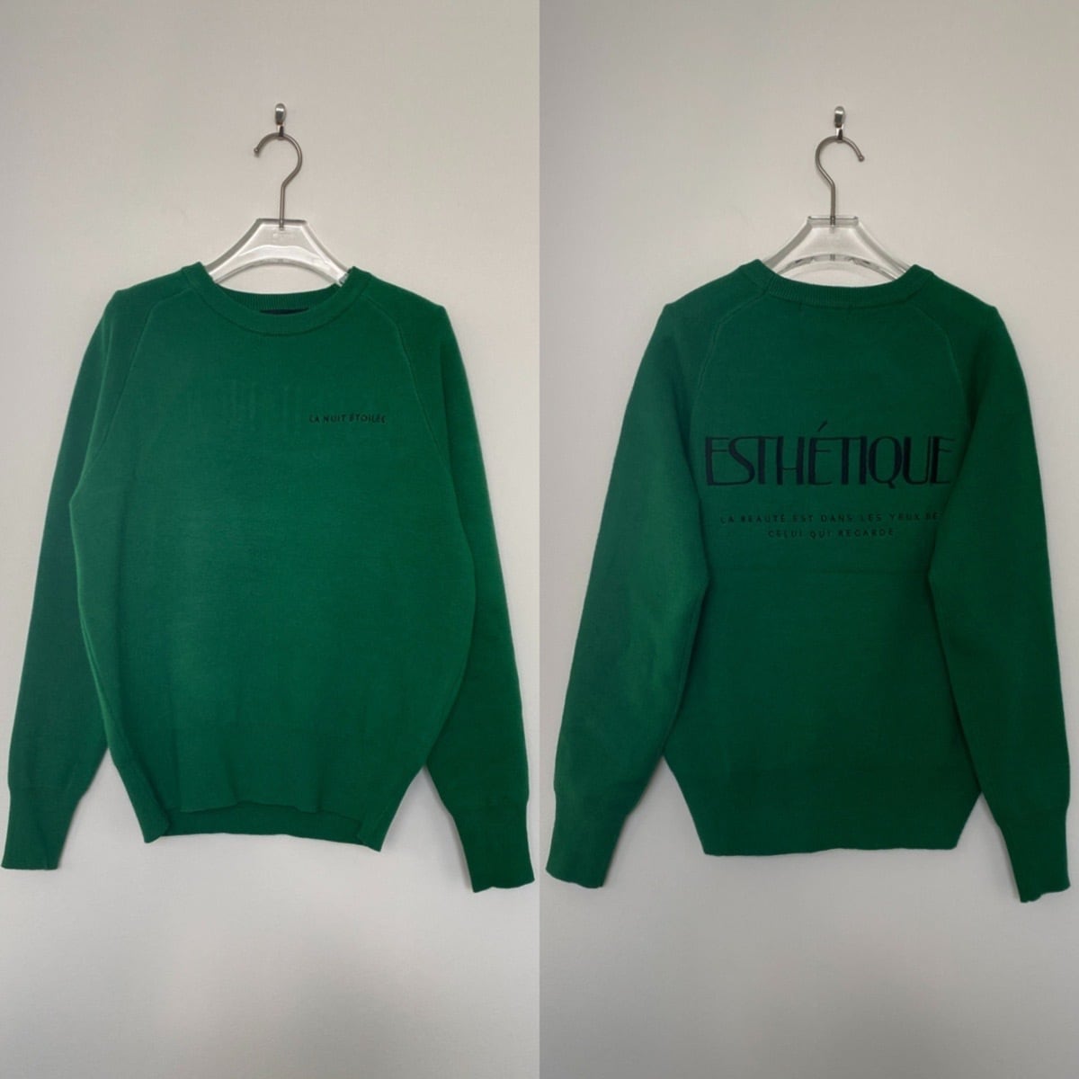 刺繍ロゴスウェットライクKnit/グリーン