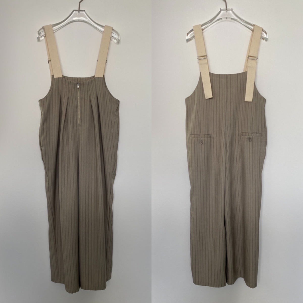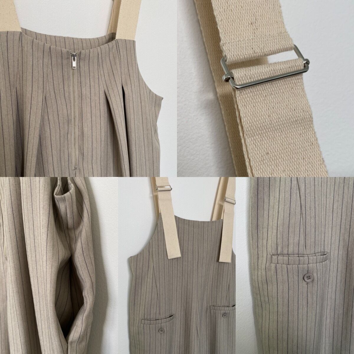 ピンストライプサロペットPT/グレージュ