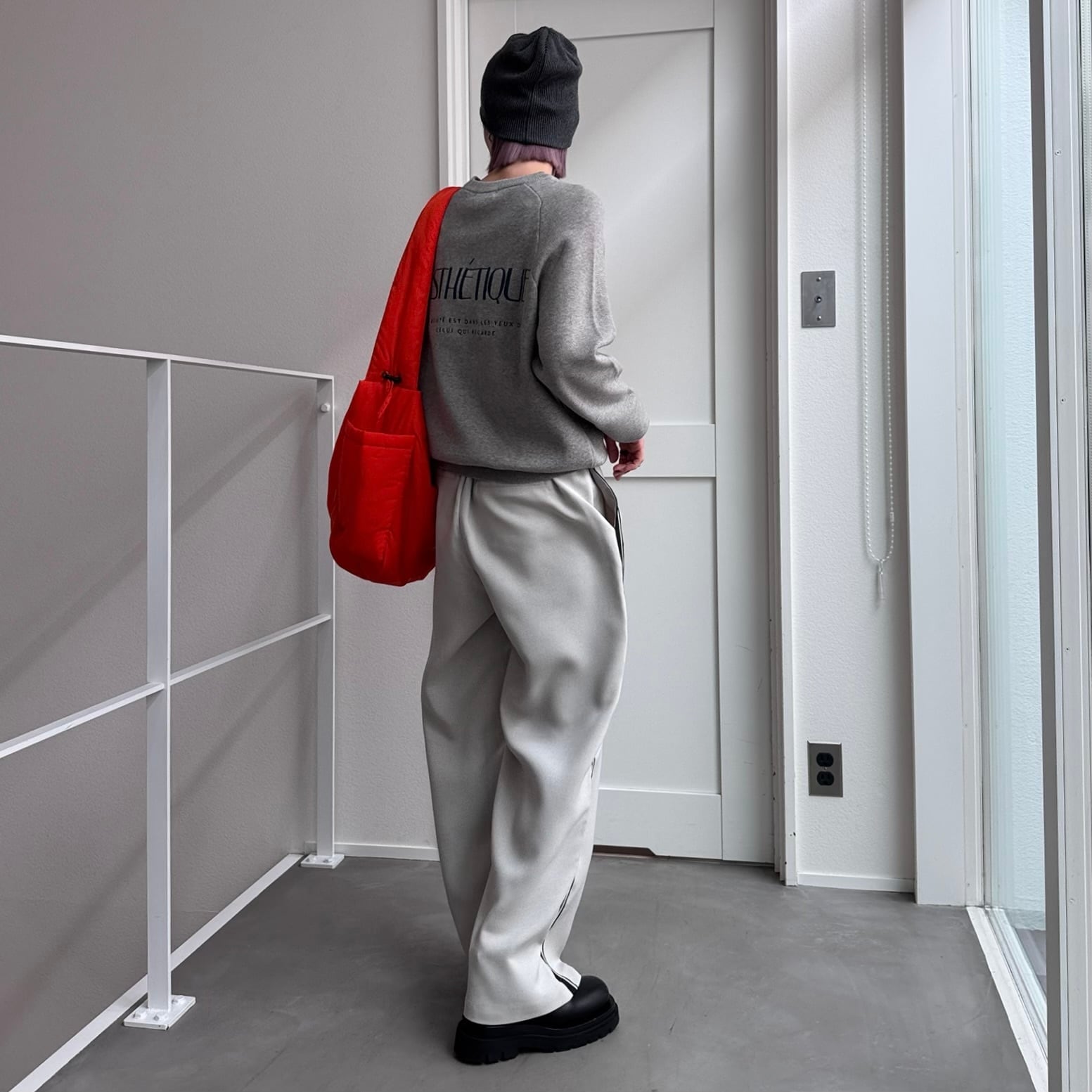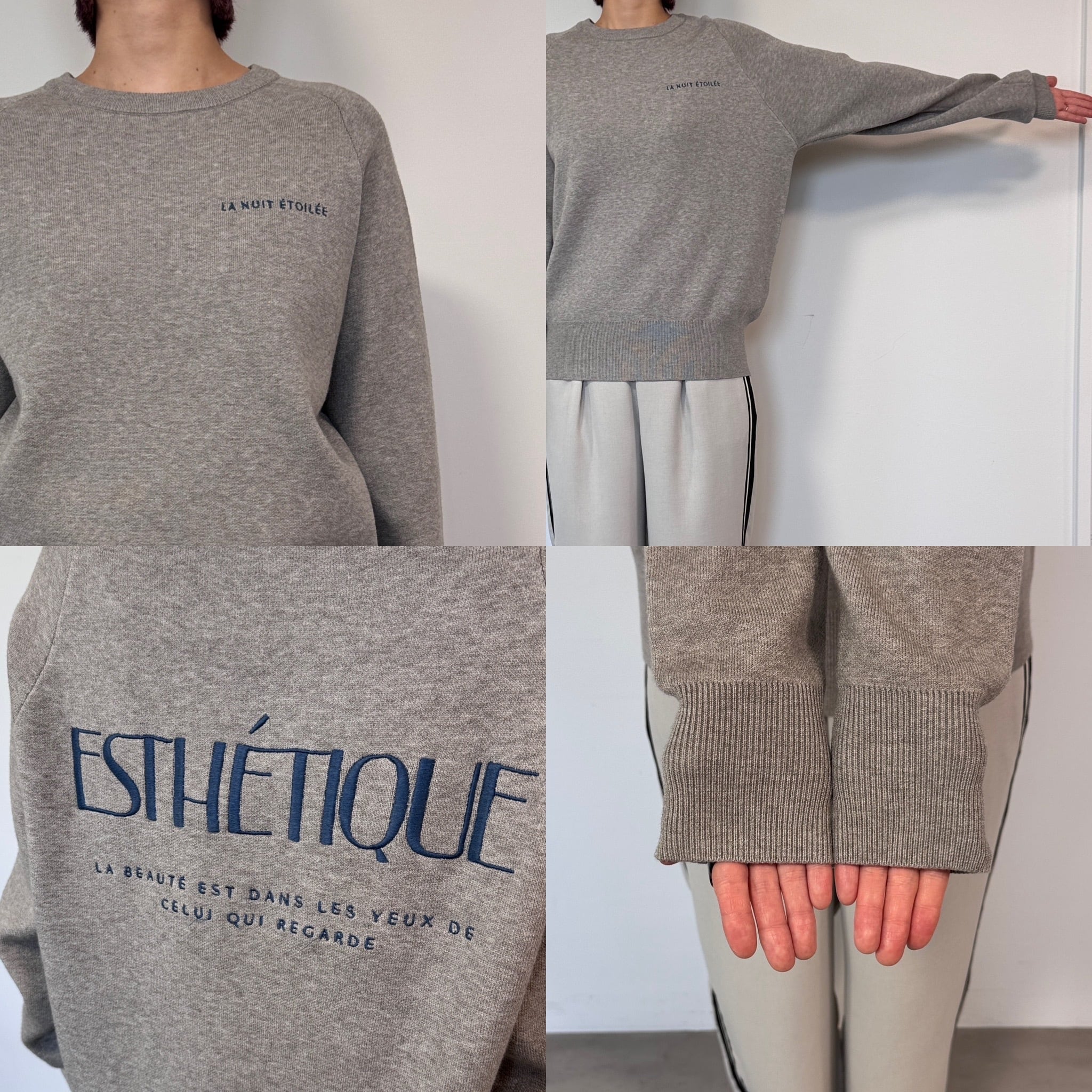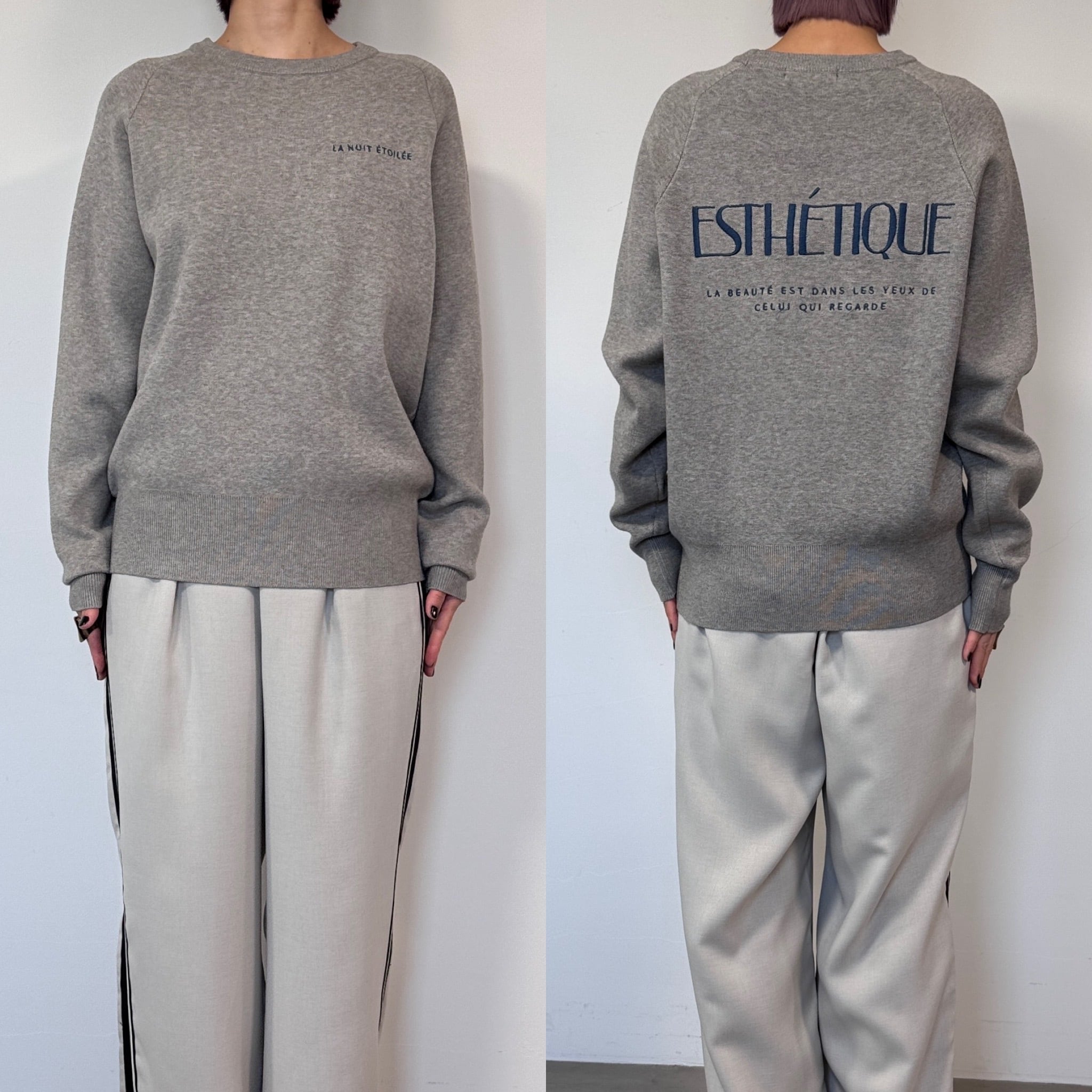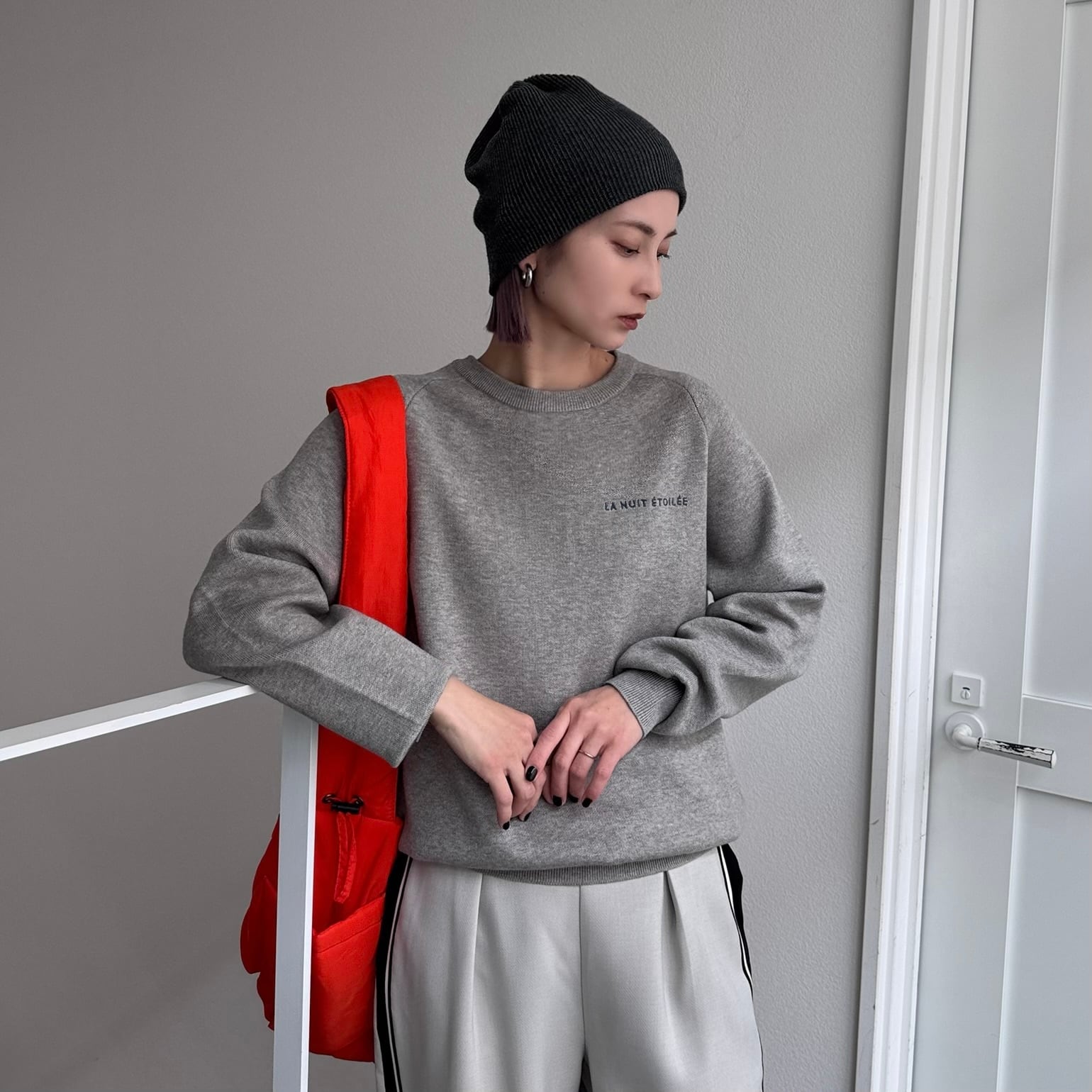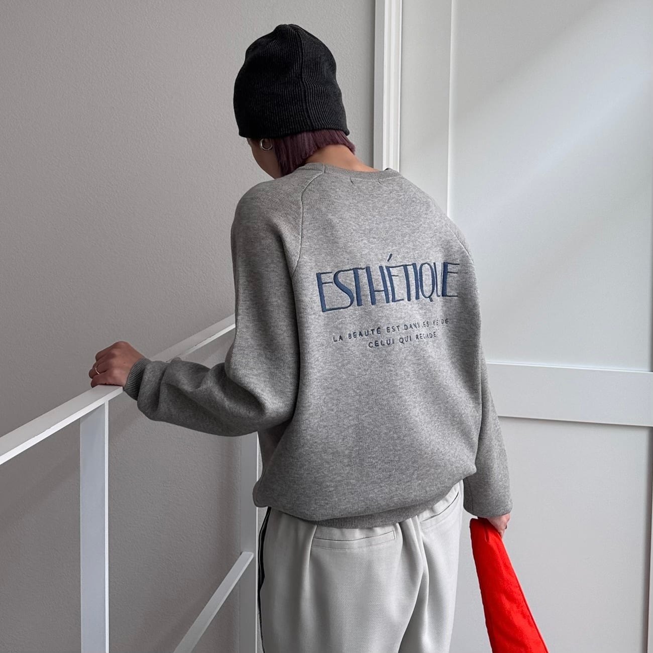 胸元とバックの刺繍ロゴがポイントのスウェットライクなニット。スウェットの滑らかな肌触りとニットの暖かさを合わせた着心地のいいニットです。刺繍ロゴのフォントも大人っぽく、シンプルなデザインながらディティールに凝ったアイテム。コンパクトな丈感ながらもゆとりのあるシルエットで体型・骨格を問わず着用いただけます。