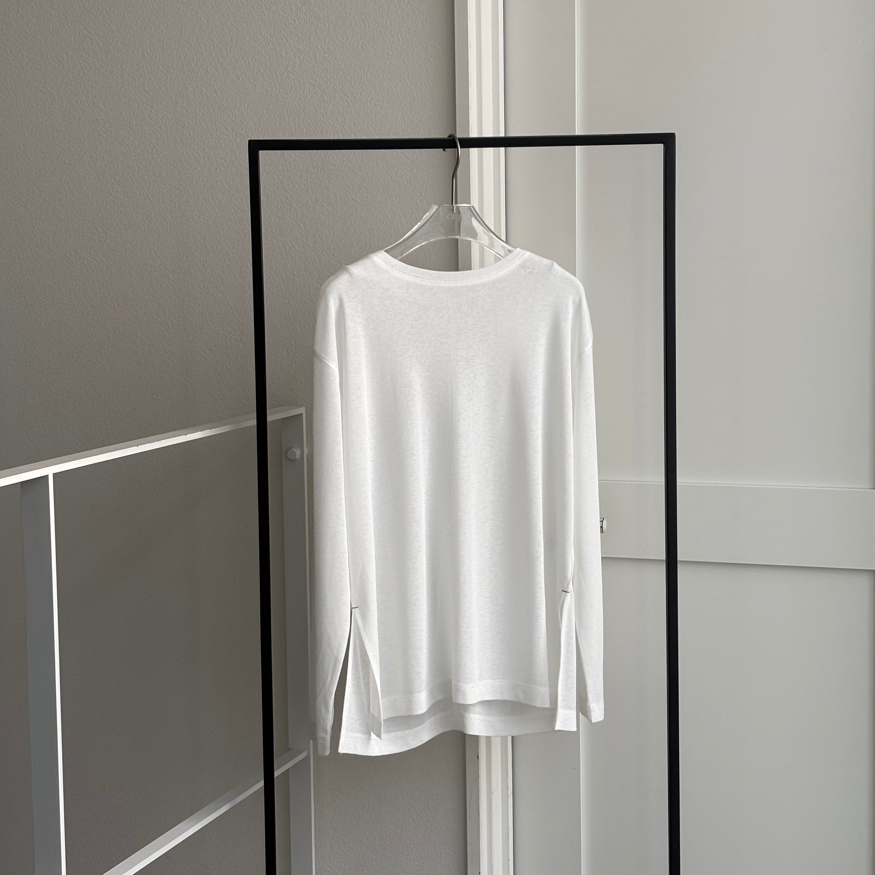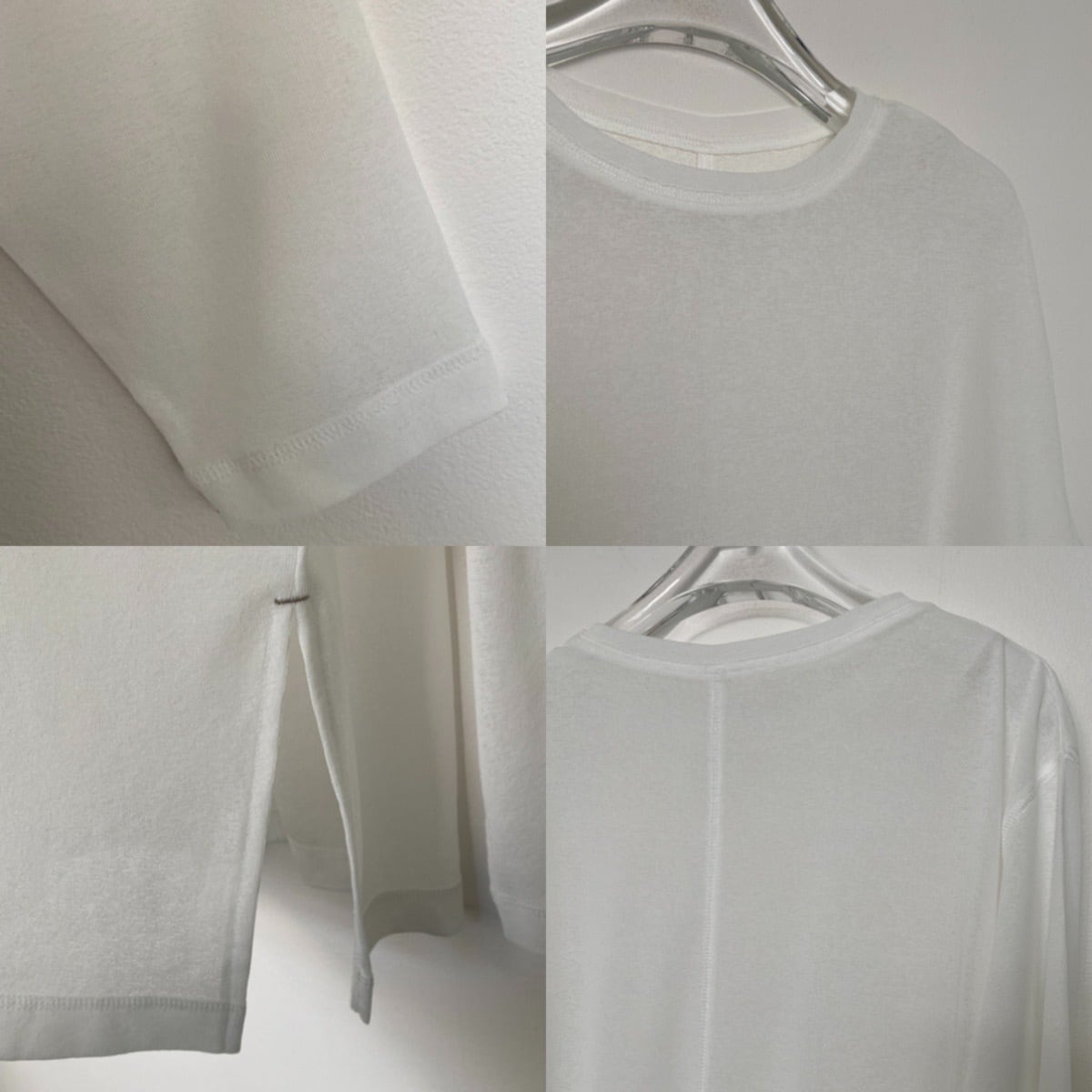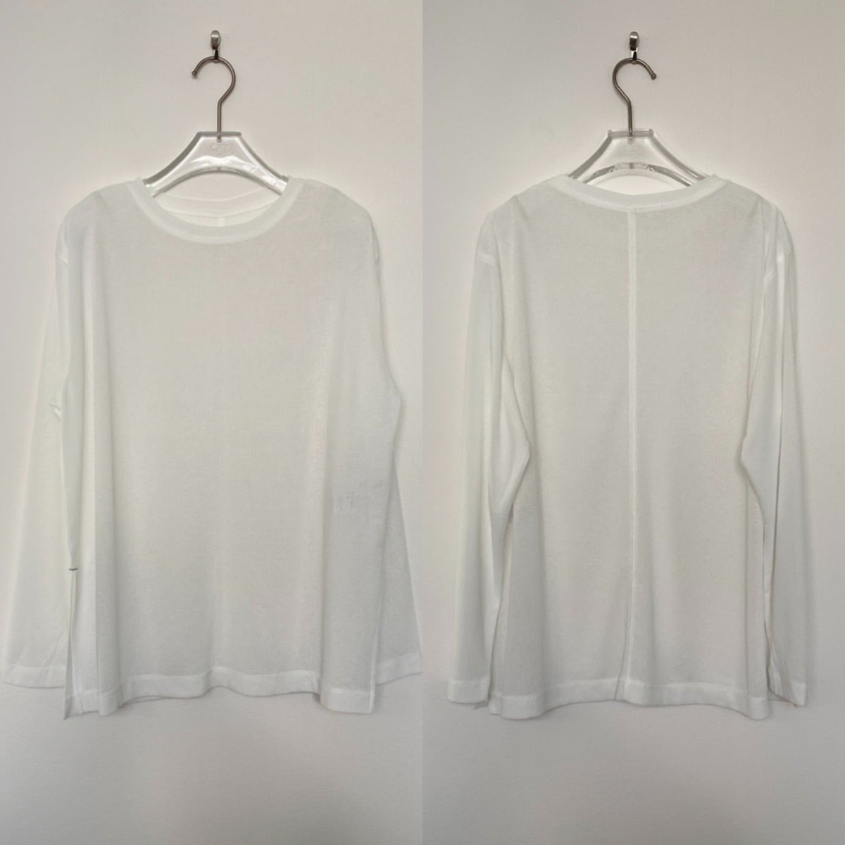 やわらかい肌触りのシアーカットソー。ゆとりのあるサイズ感でシンプルデザインでありながら深めのスリットが抜け感を感じさせ、リラクシーに着用いただけます。ロゴTにレイヤードしたり、スウェットの袖口から見せても◎タックインもしやすい素材なのでビスチェとの相性も抜群。トレンド感もあり、ロングシーズン着用できるアイテムです。