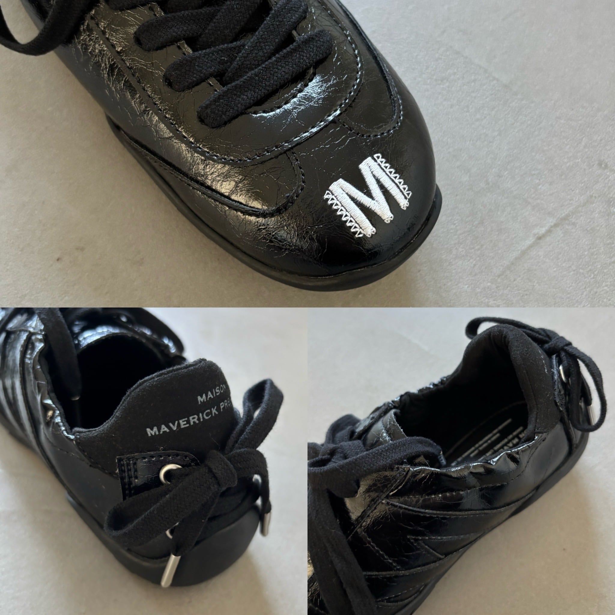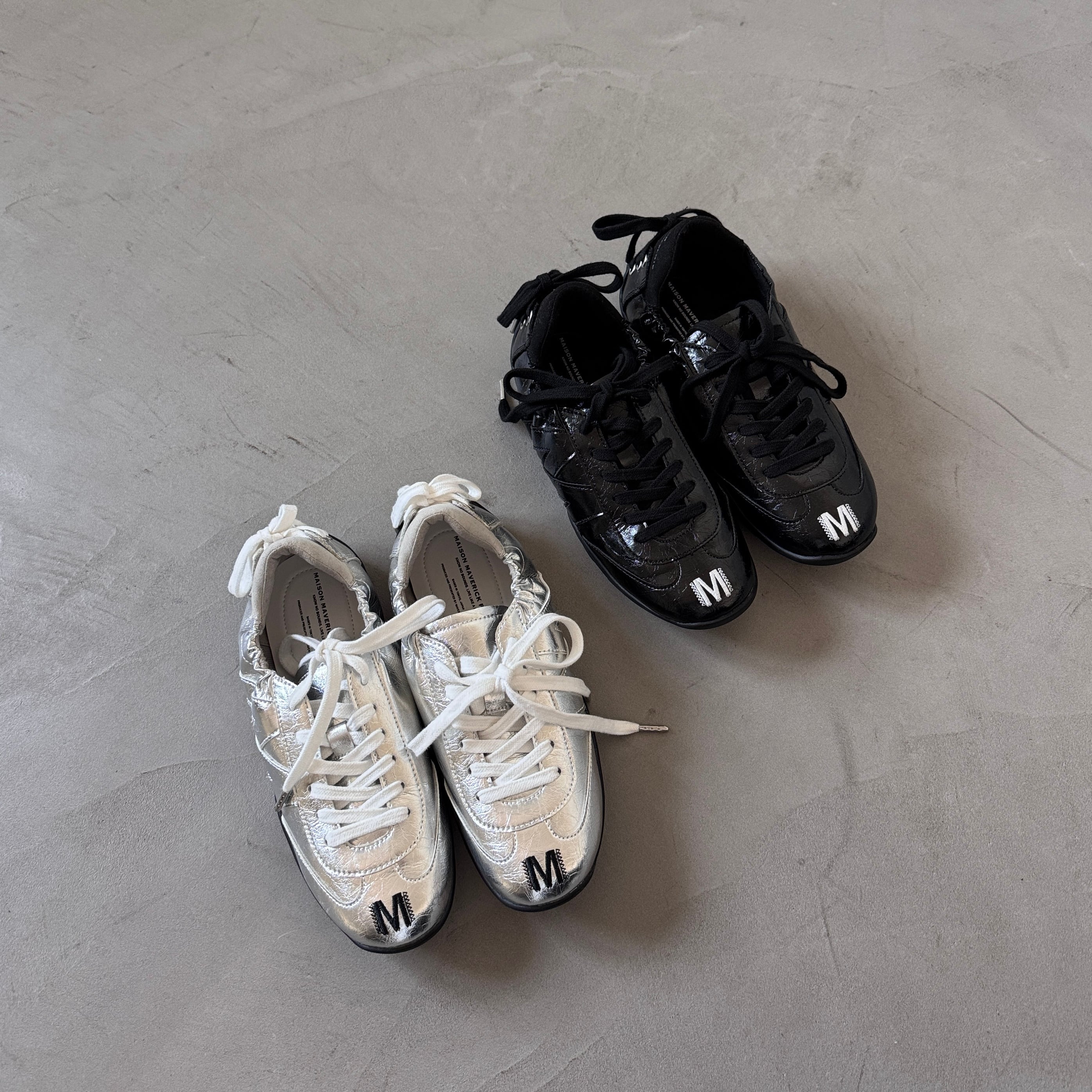 トレンド感あるバレエシューズシルエットのスニーカー。アッパーには加工を施した人口皮革を使用しほど良いシワ感と光沢感が魅力。モードとカジュアルがバランスよく融合した上品な印象に仕上がっています。軽やかで扱いやすくソールにはグリップ力のあるゴム素材を使用し薄めの見た目ながら安定感のある履き心地を実現。