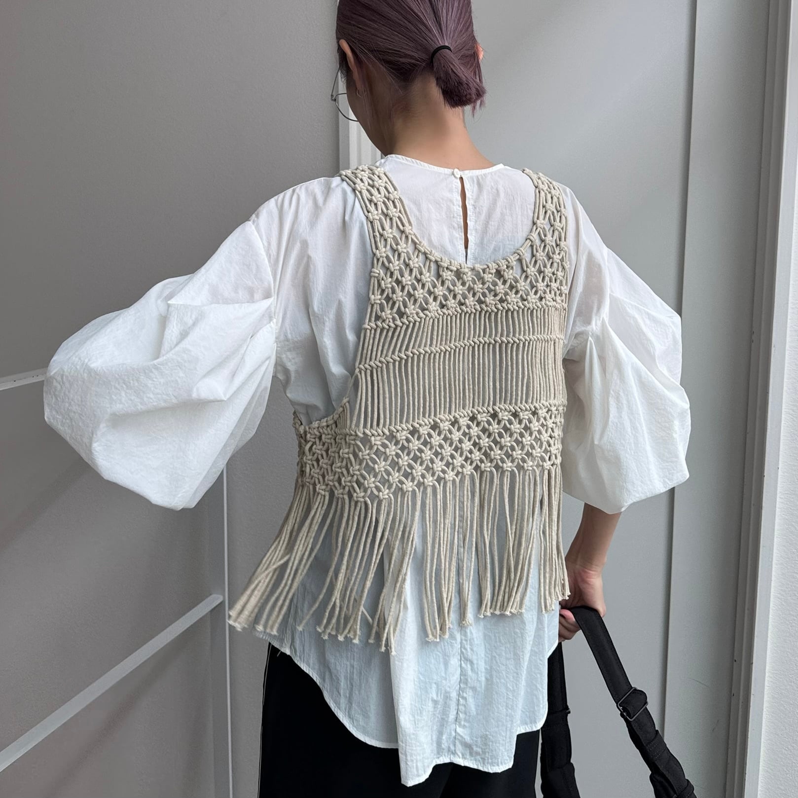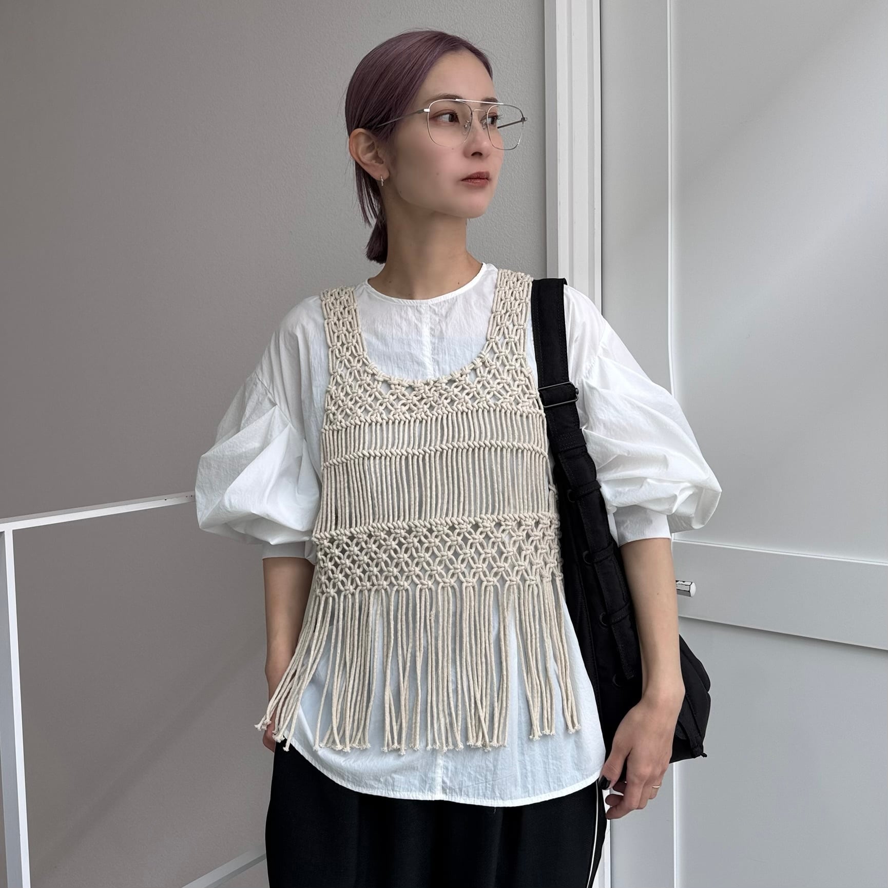【受注予約:4月上旬入荷予定】クロシェフリンジvest/アイボリー
