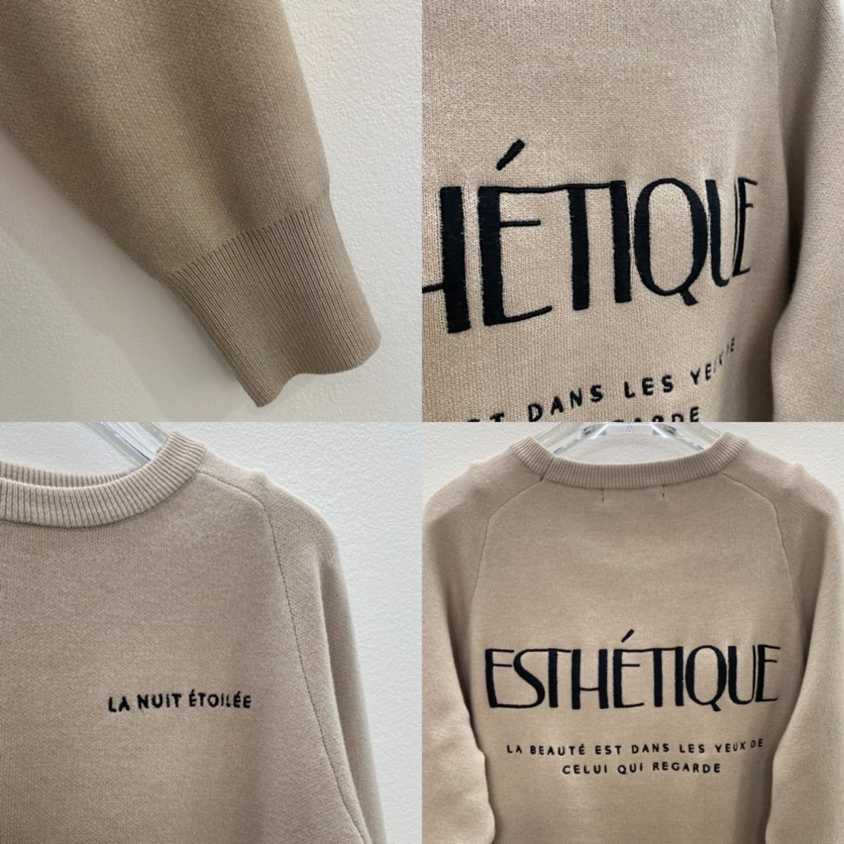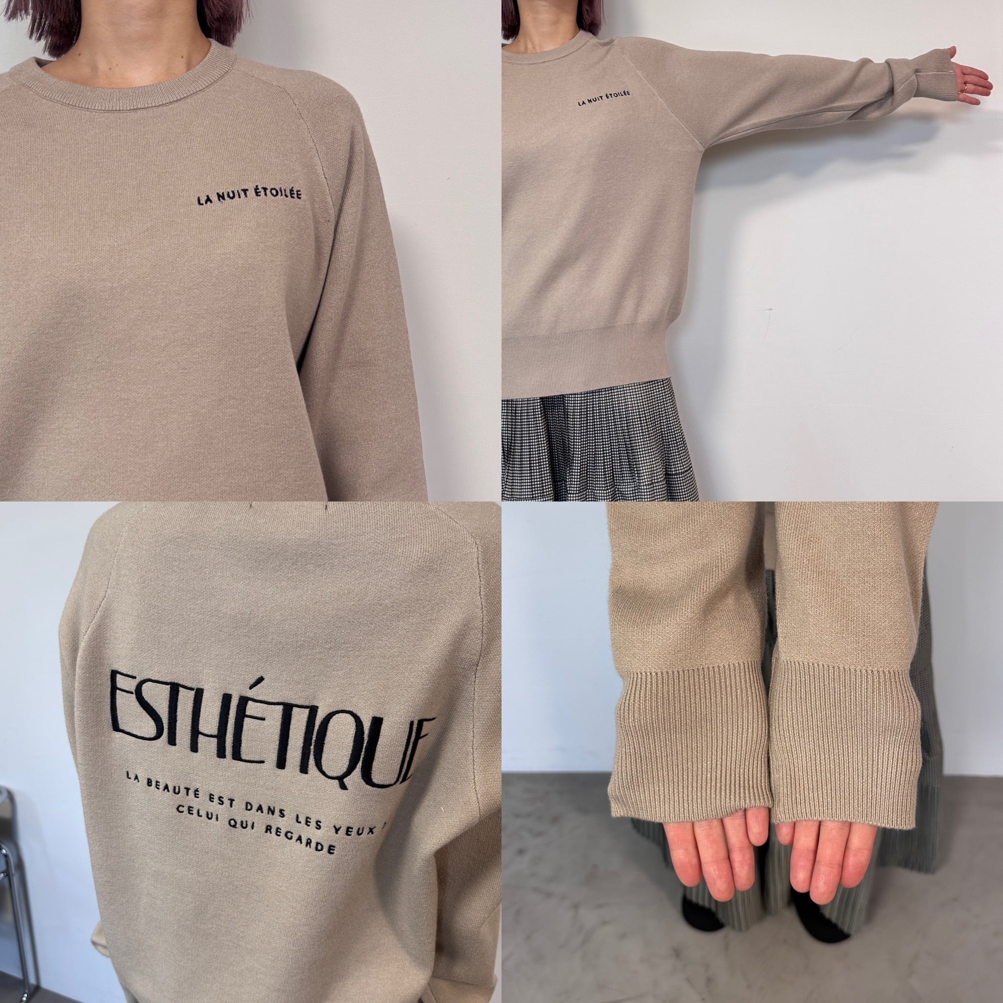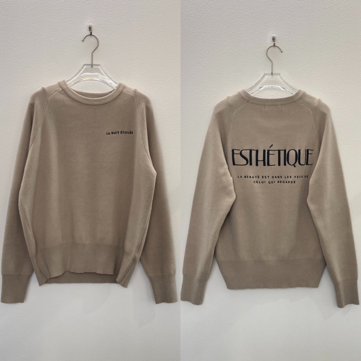 刺繍ロゴスウェットライクKnit/ベージュ