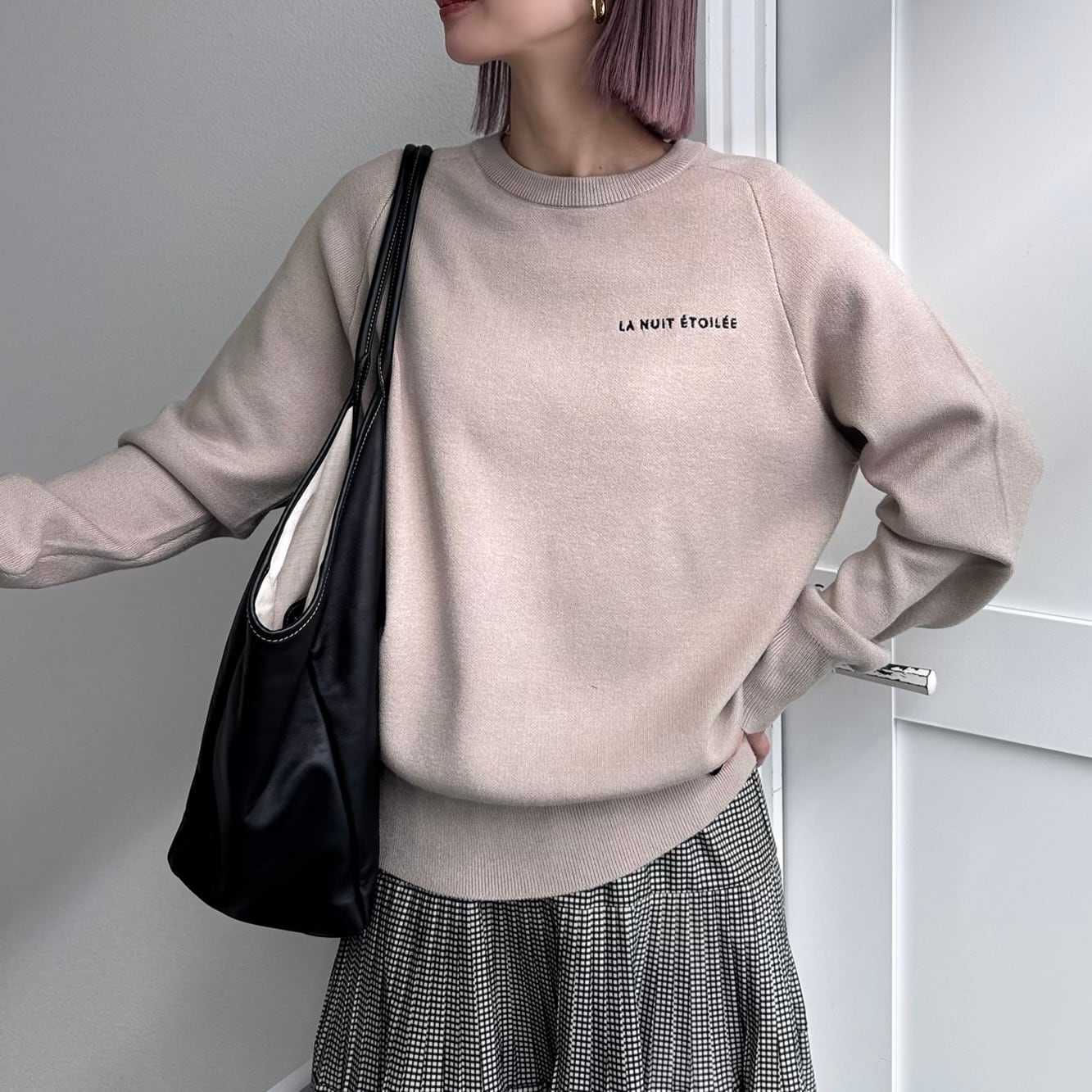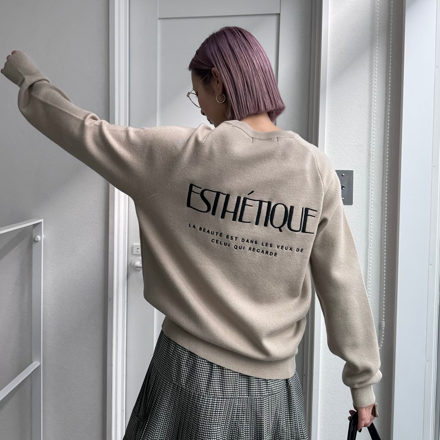 胸元とバックの刺繍ロゴがポイントのスウェットライクなニット。スウェットの滑らかな肌触りとニットの暖かさを合わせた着心地のいいニットです。刺繍ロゴのフォントも大人っぽく、シンプルなデザインながらディティールに凝ったアイテム。コンパクトな丈感ながらもゆとりのあるシルエットで体型・骨格を問わず着用いただけます。
