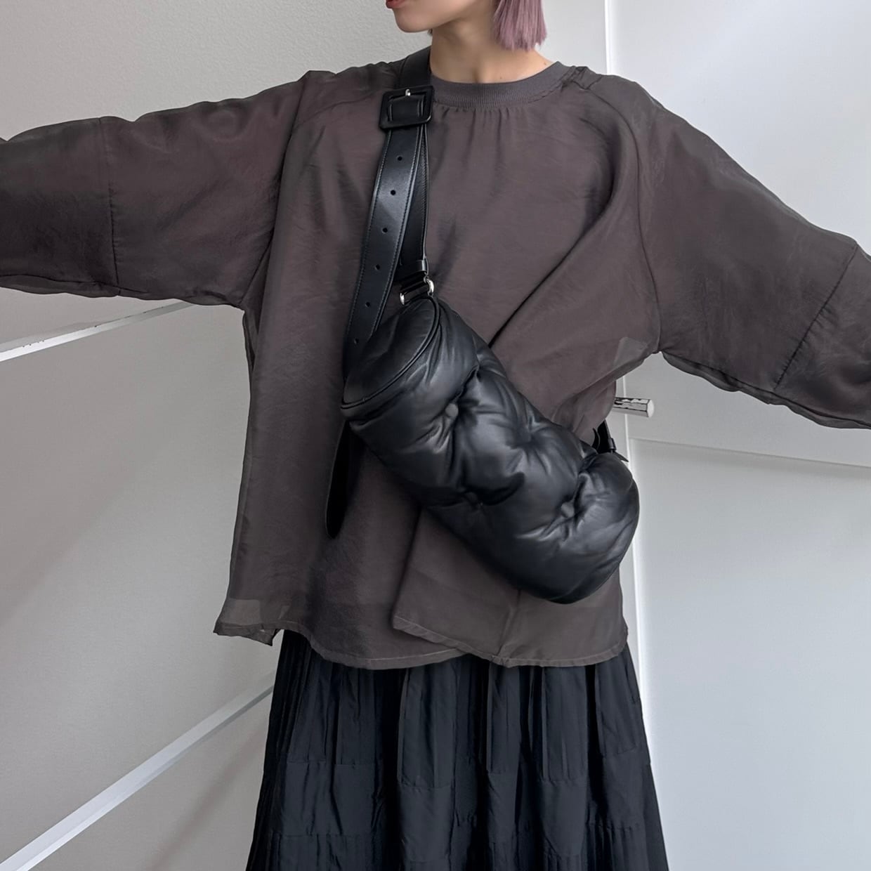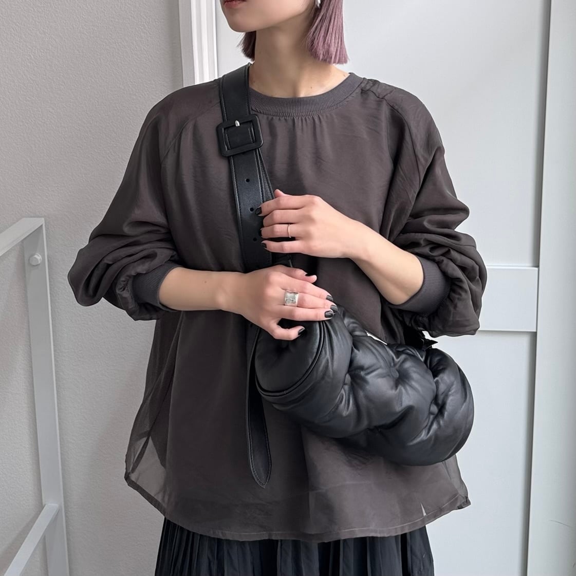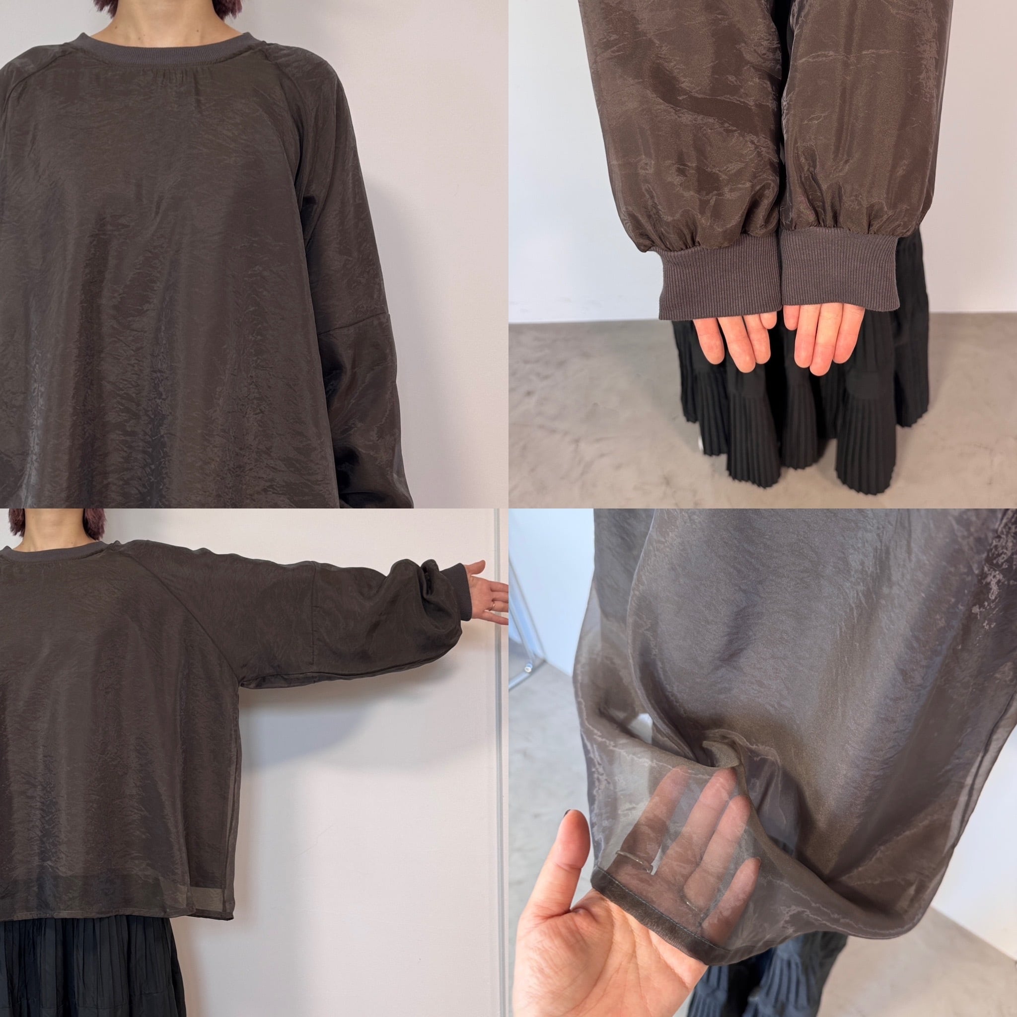 レイヤーオーガンジースウェットPO/チャコール
