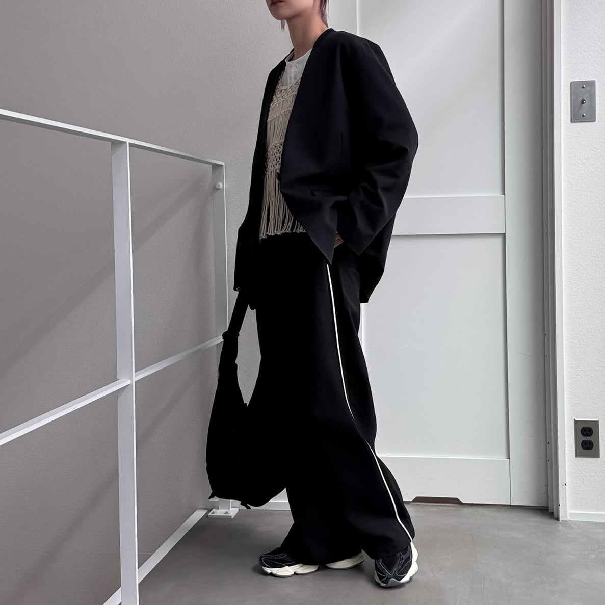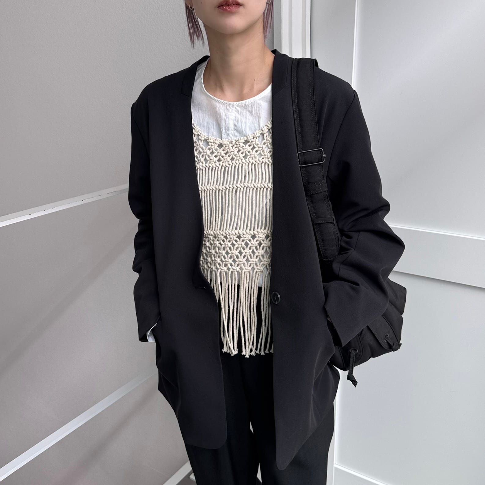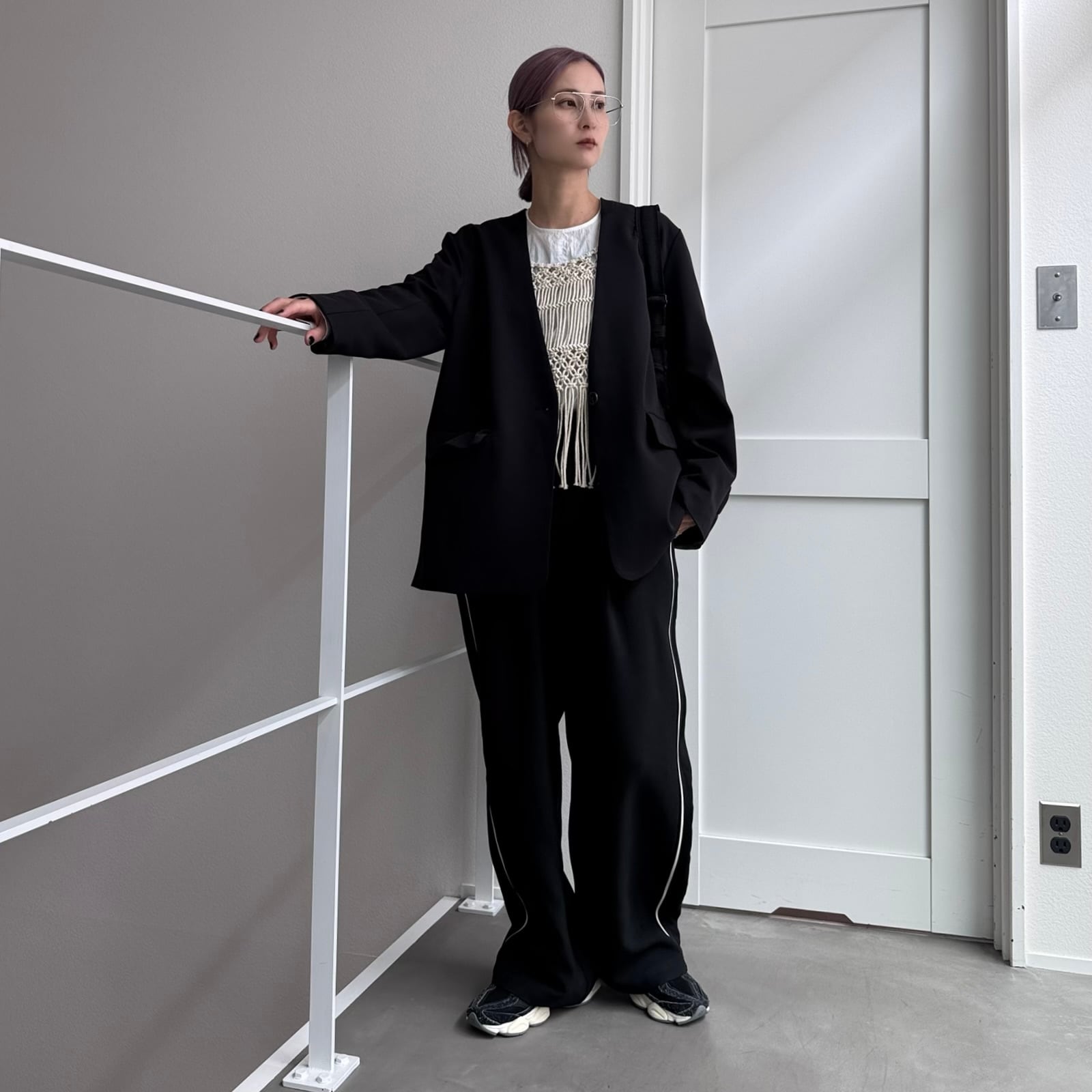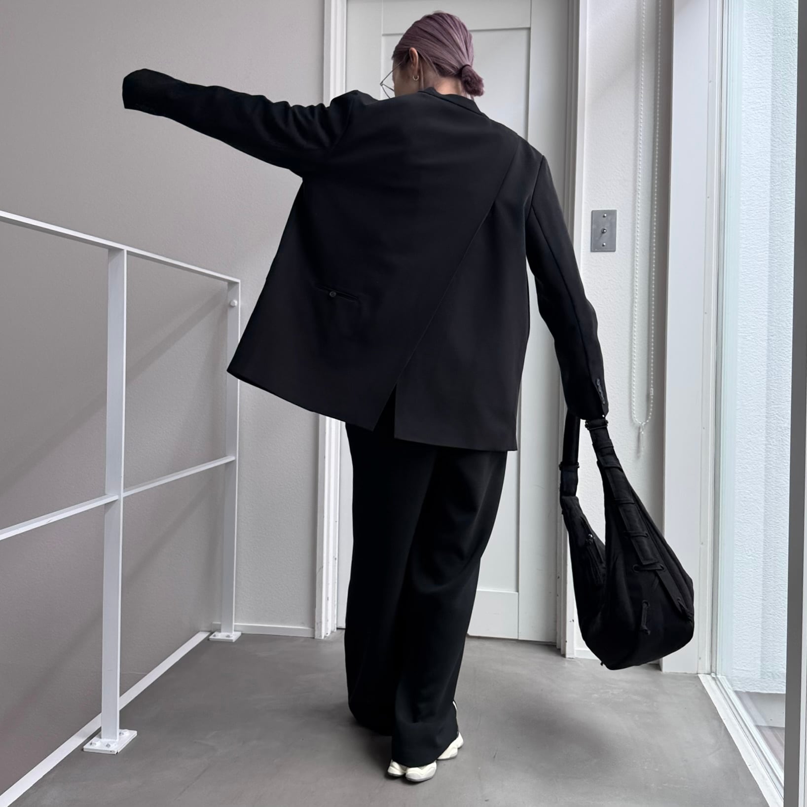 バッグデザインがモード感を演出してくれるノーカラージャケット。生地が重なるようなバックスリットとポケットがプラスされたひと癖あるデザインでありながら、リラクシーなゆったりシルエットです。シンプルなインナーに羽織るだけで目を惹く洗練されたデザインです。写真映えにも◎