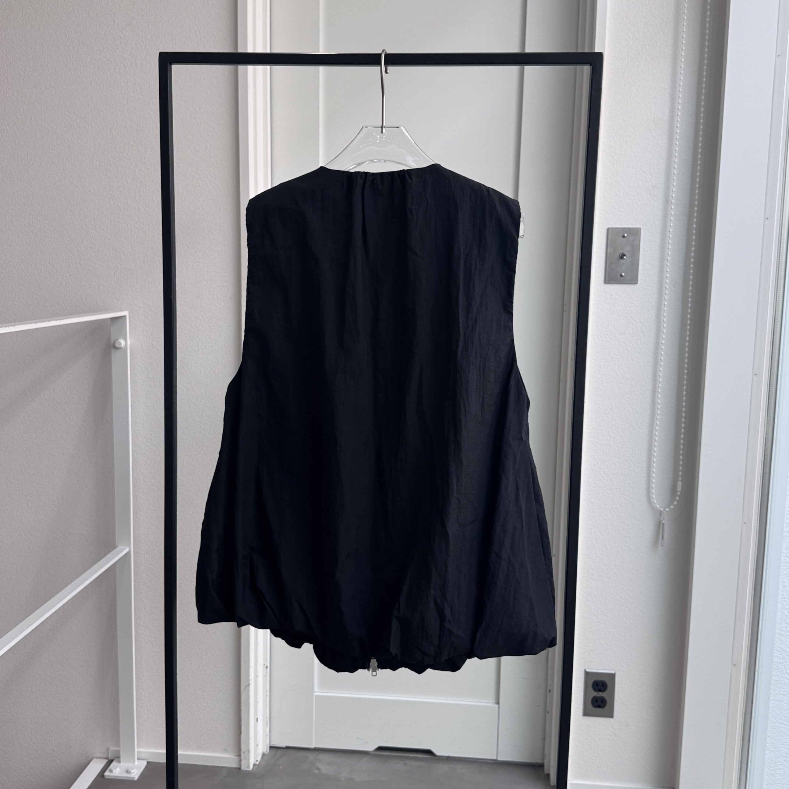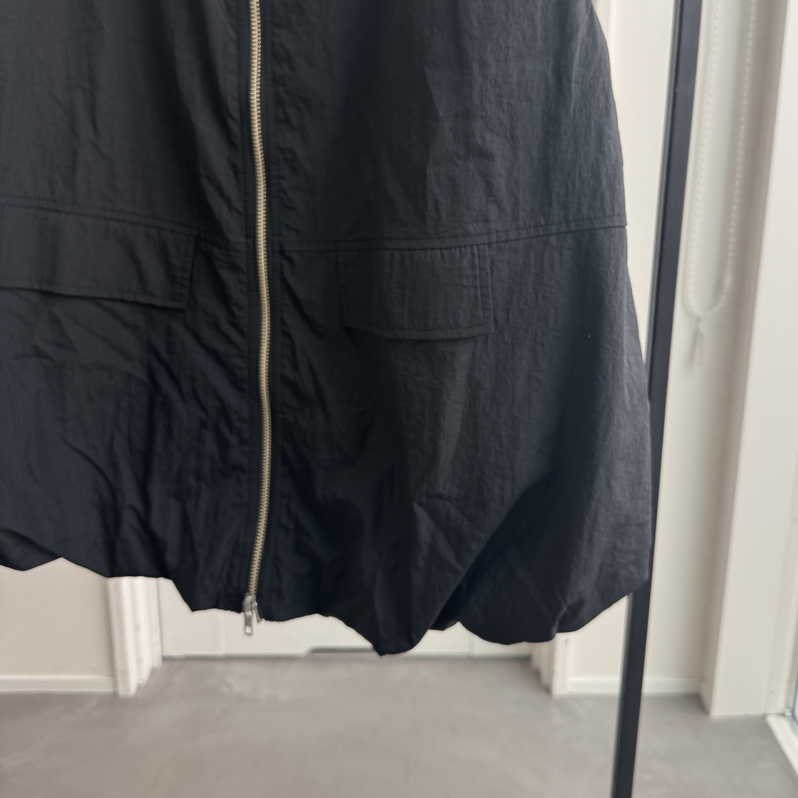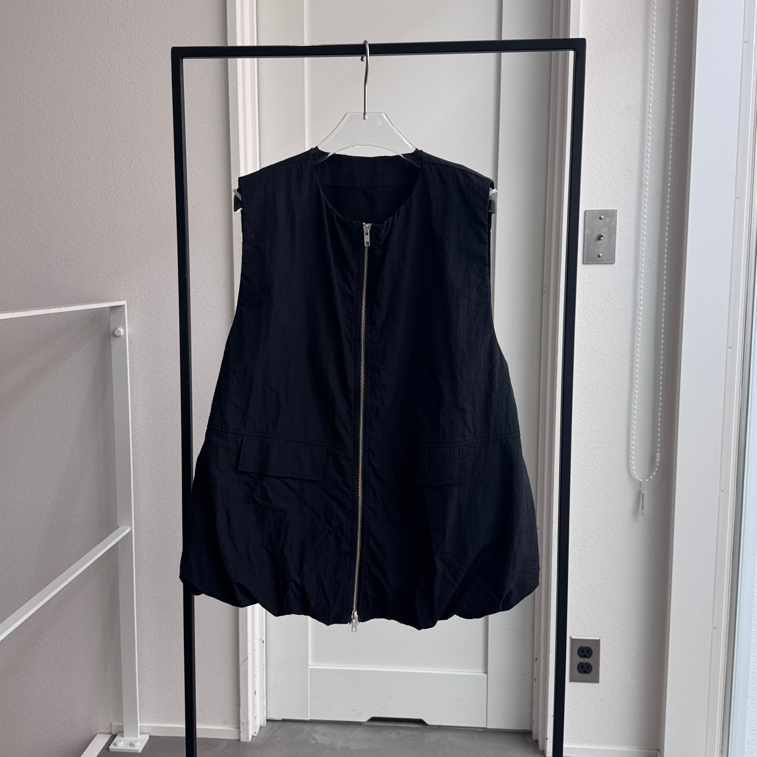 バルーンシルエットが女性らしさをアピールしながらも、ナイロン素材を使用することでモードな印象にもハマる1点。アームホールを広めに取っているので、スウェットや袖がバルーン仕様になったトップス等もインナーに着用できます。さらにWジップ仕様。ロンTee・ノースリーブ等でもレイヤードできロングシーズン活躍するアイテム。ポケット付きで機能性も◎
