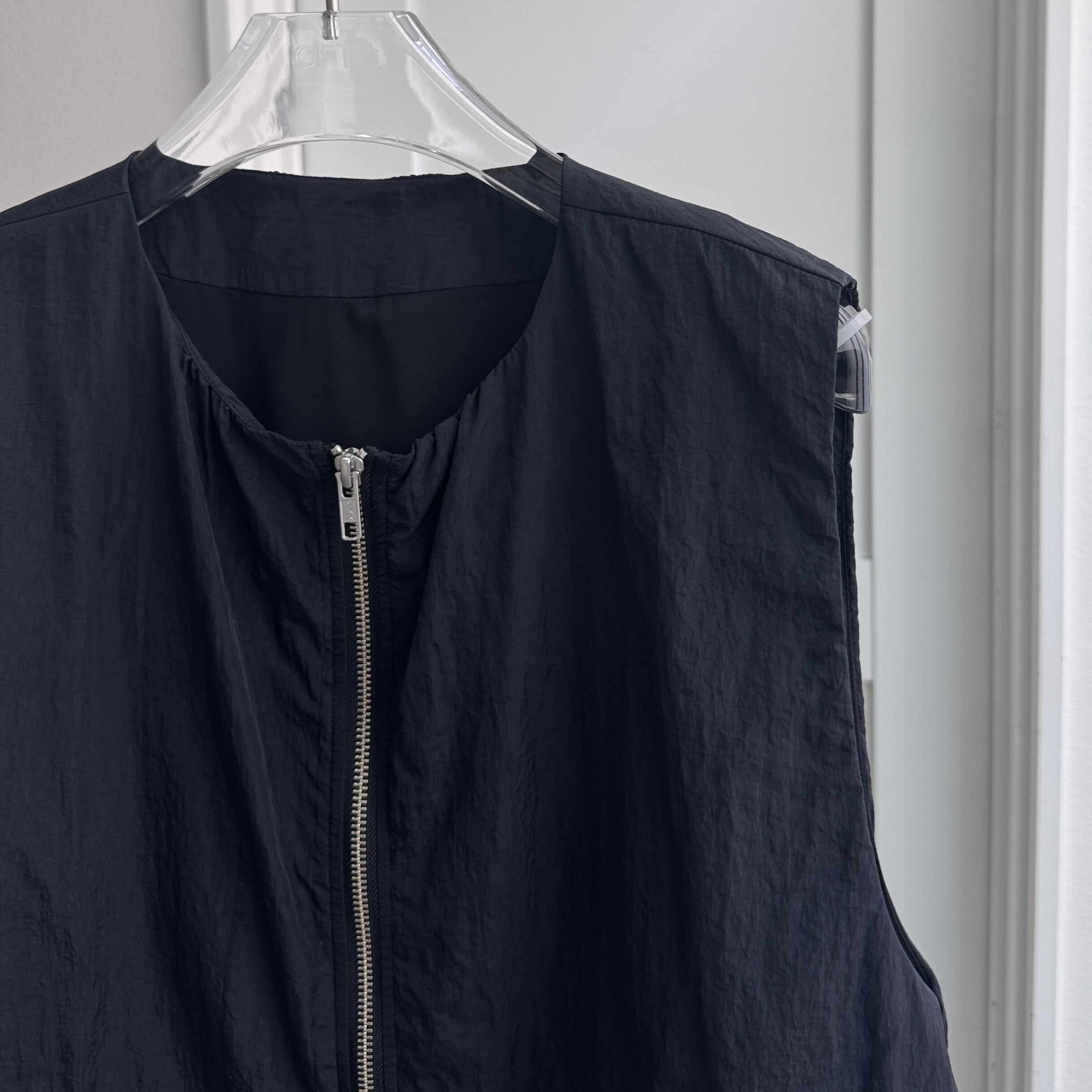 【受注予約:3月下旬入荷予定】ナイロンフロントWジッパーvest/ブラック