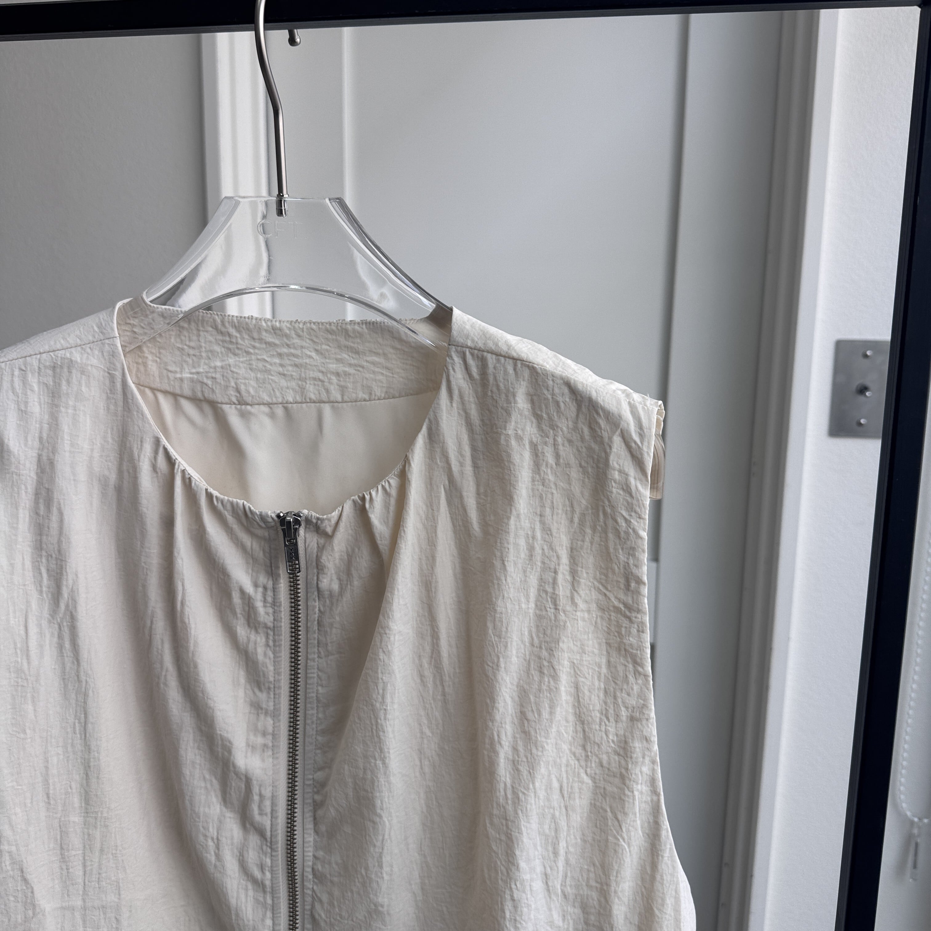 【受注予約:3月下旬入荷予定】ナイロンフロントWジッパーvest/エクリュ