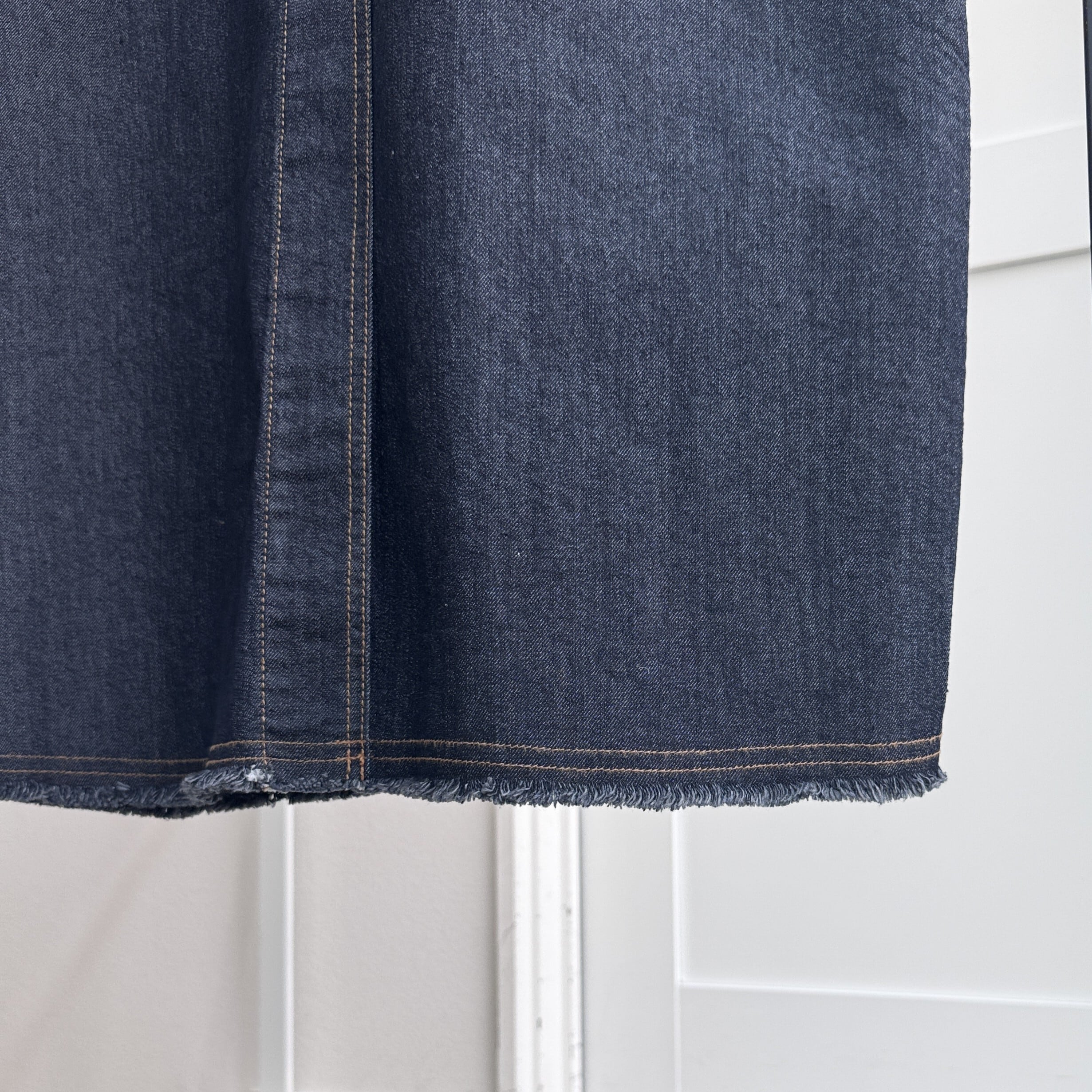 裾は断ち切り仕様になっており、ユーズド感が味のある雰囲気です。ストレッチ性の10ozで、通年使いやすい厚みです。シンプルにTシャツ合わせはもちろん、ジャケット合わせてモードに着用もちろん、シアーやレースなど甘めのアイテムとも合わせていただけます。