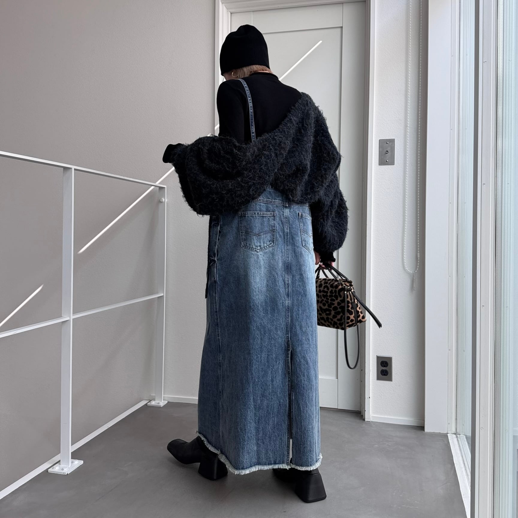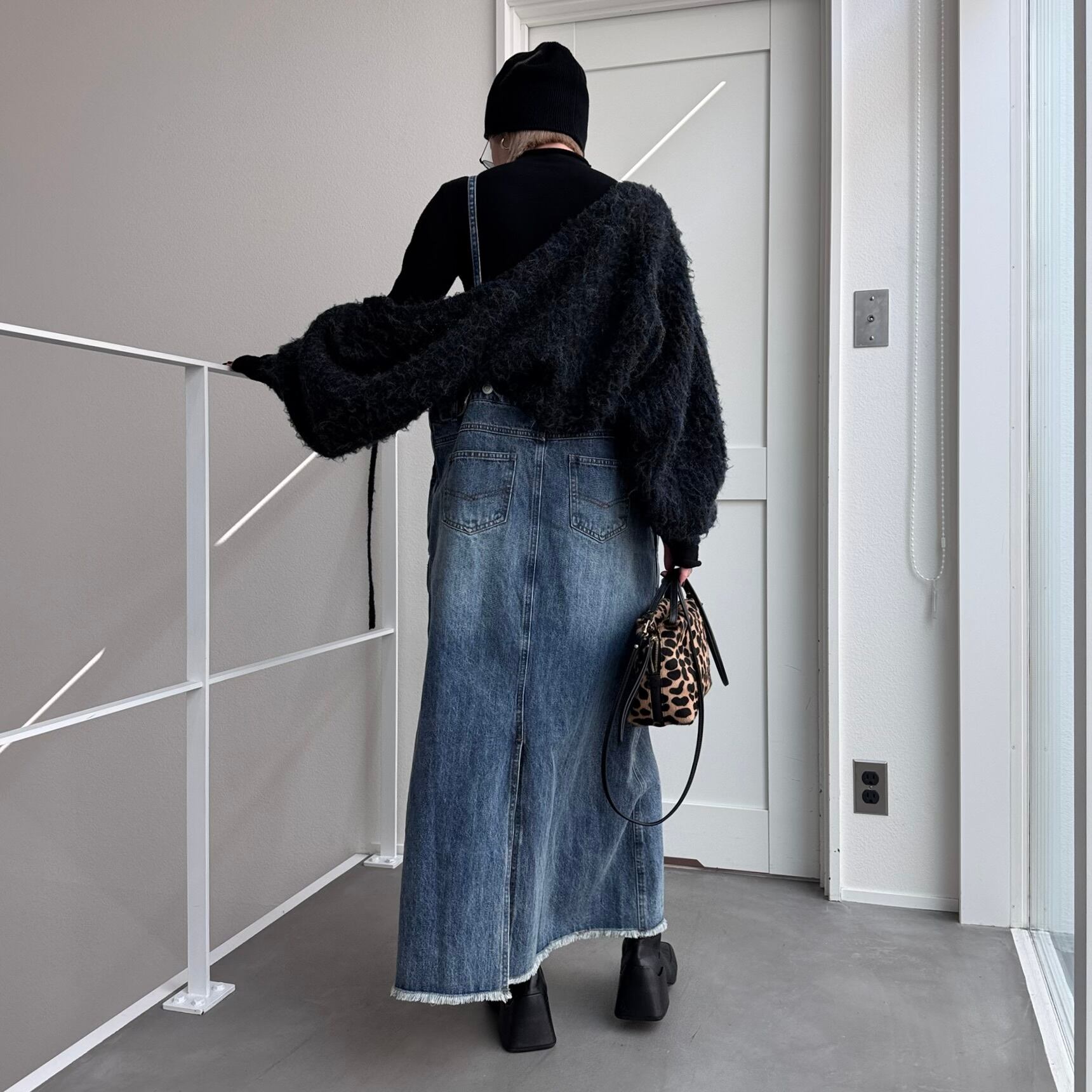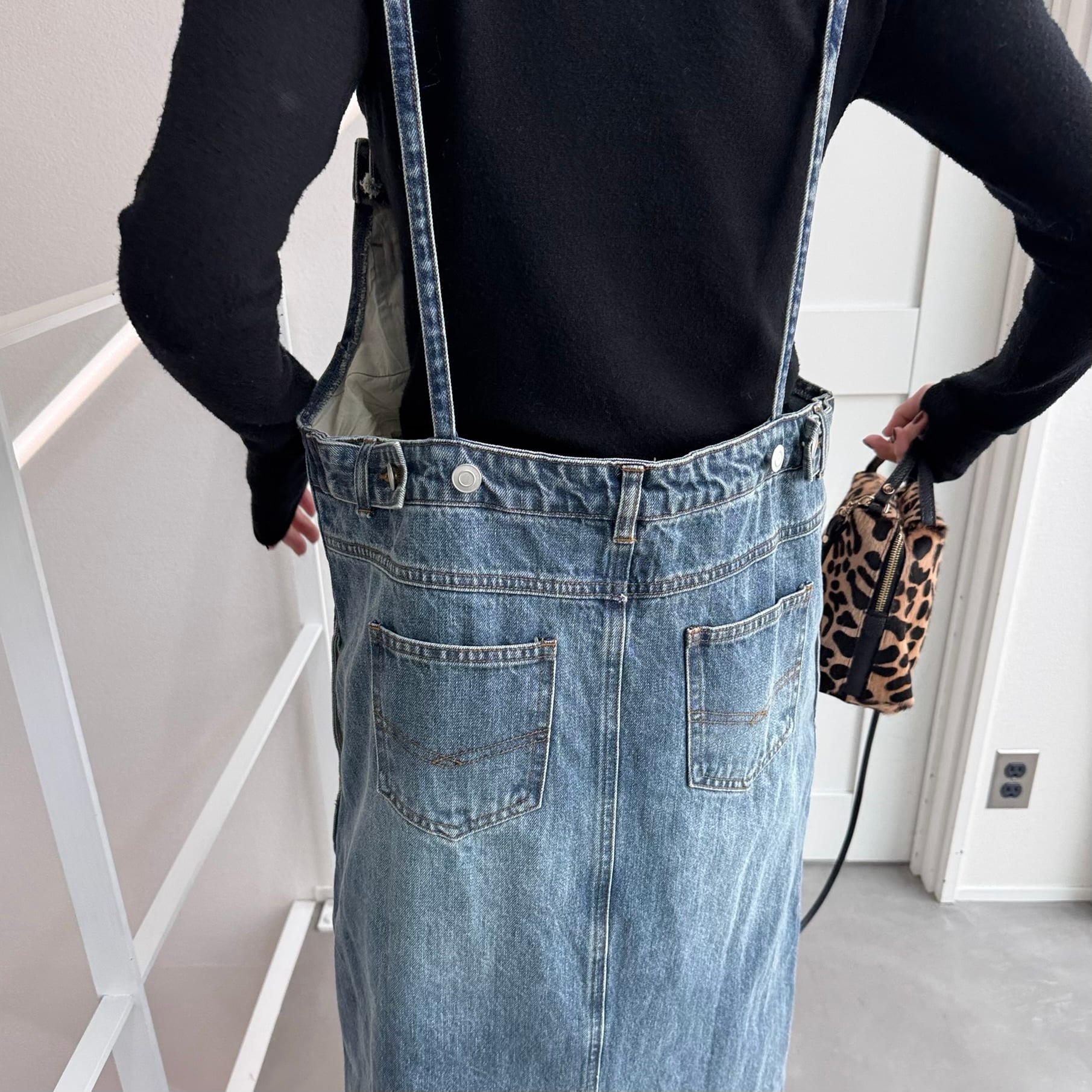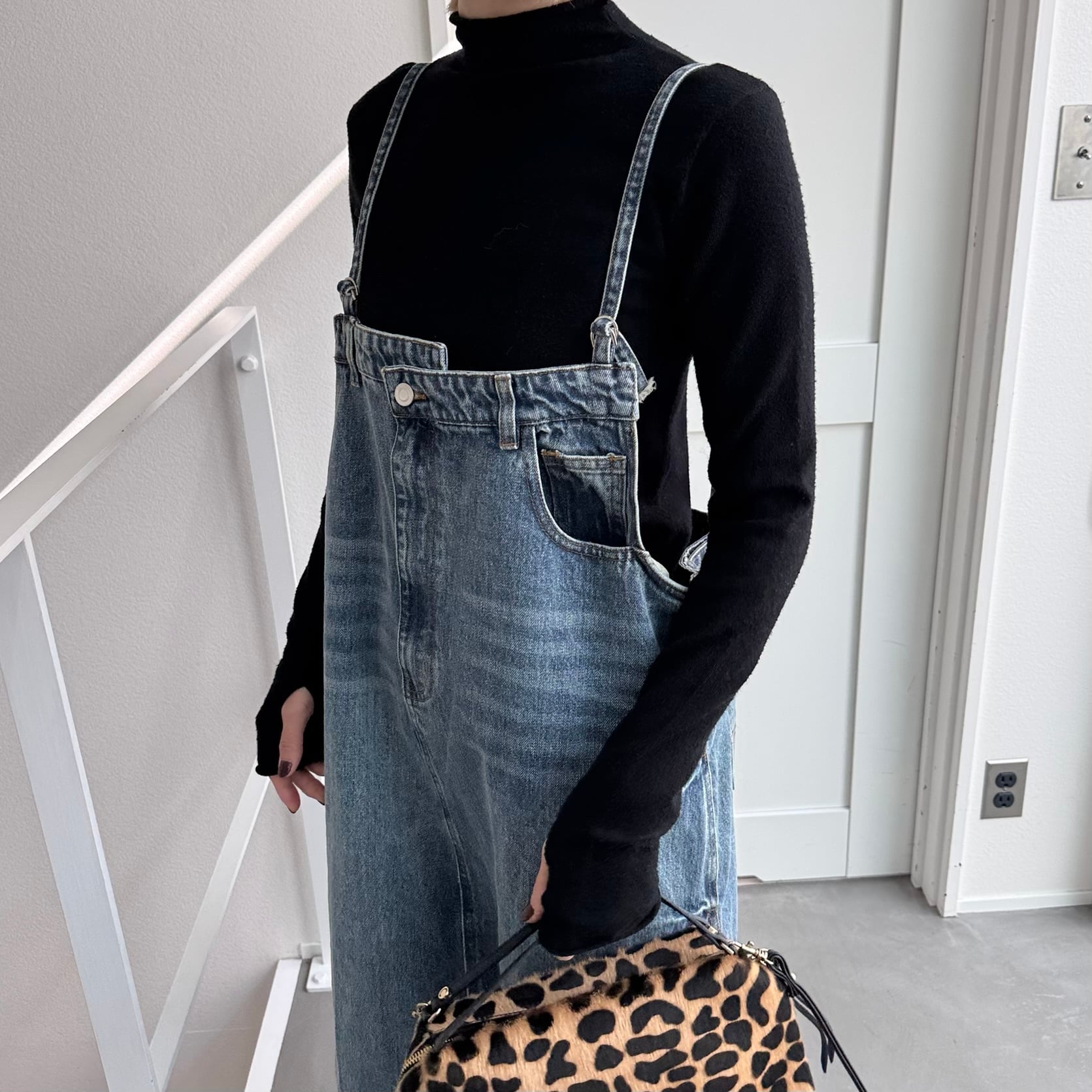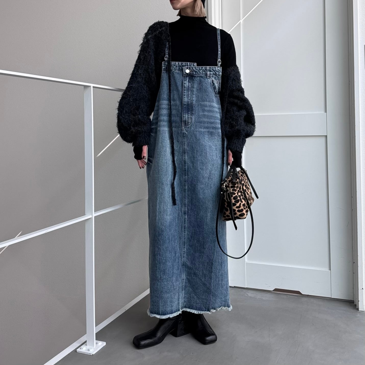胸元がデニムパンツのウエストのようなデザインでアクセントのあるジャンパースカート。お手持ちのインナーに合わせてさっと着るだけで今どきのデニムコーデが完成。後ろ裾にスリットが入っていて動きやすさは抜群。シルエットはタブで調節できるのでゆったりめにも少しタイトめにも着用できます。裾がフリンジデザインになっていてデニムならではのデザインを楽しめます。肩紐調節可です。