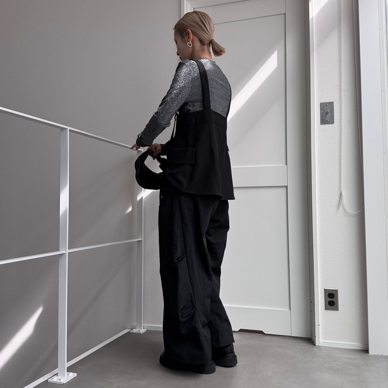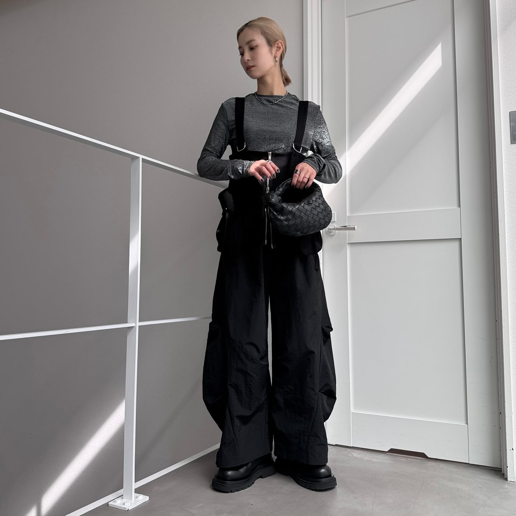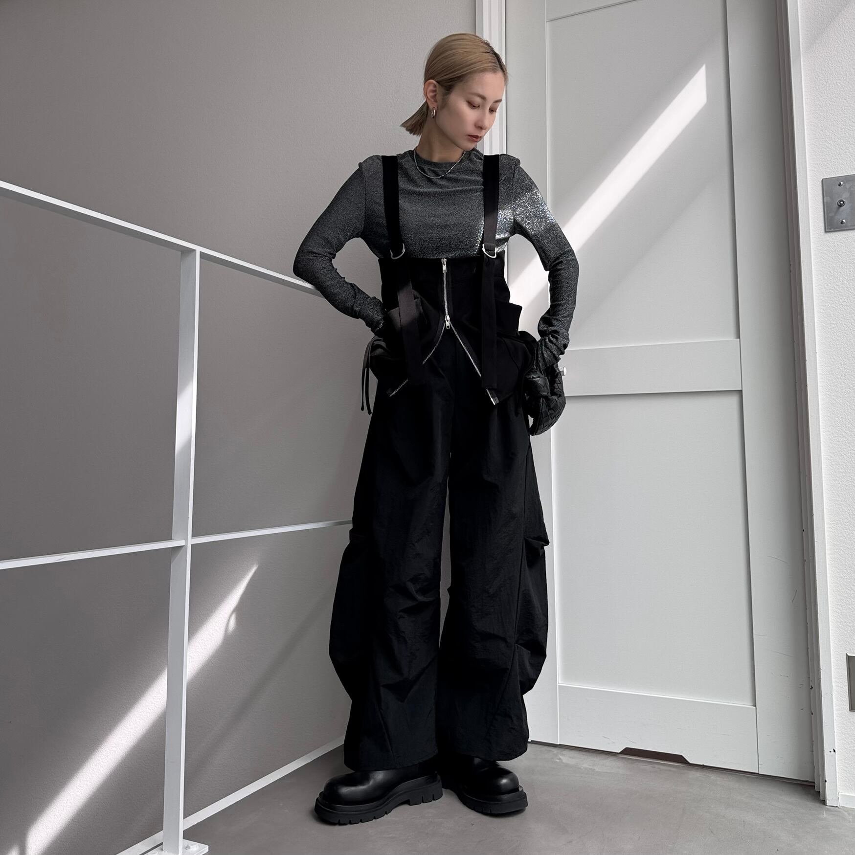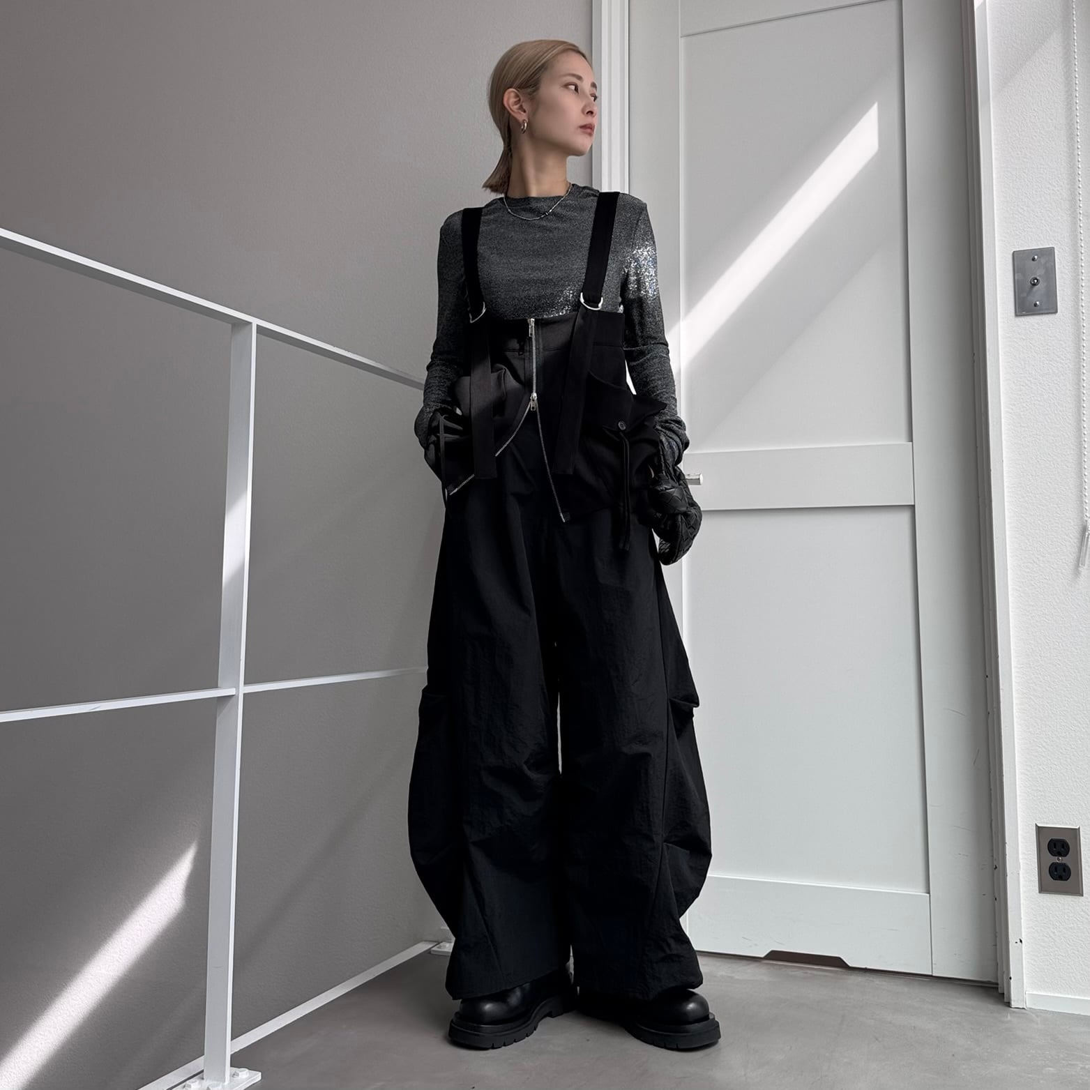春夏に適したさらっとしたナイロンタフタ素材バレルシルエットパンツ。両サイドのタックで、立体感のあるコクーンのようなシルエットをつくり、柔らかな印象に。ゆったりワイド幅で下半身をしっかりカバー。存在感のあるシルエットとシンプルなデザインは様々なアイテムと相性が良く、幅広いスタイリングに対応可能です。ベーシックなトップスはもちろんの事、ワイドシルエットを活かしたモードテイストのアイテムとの相性も良い1着です。