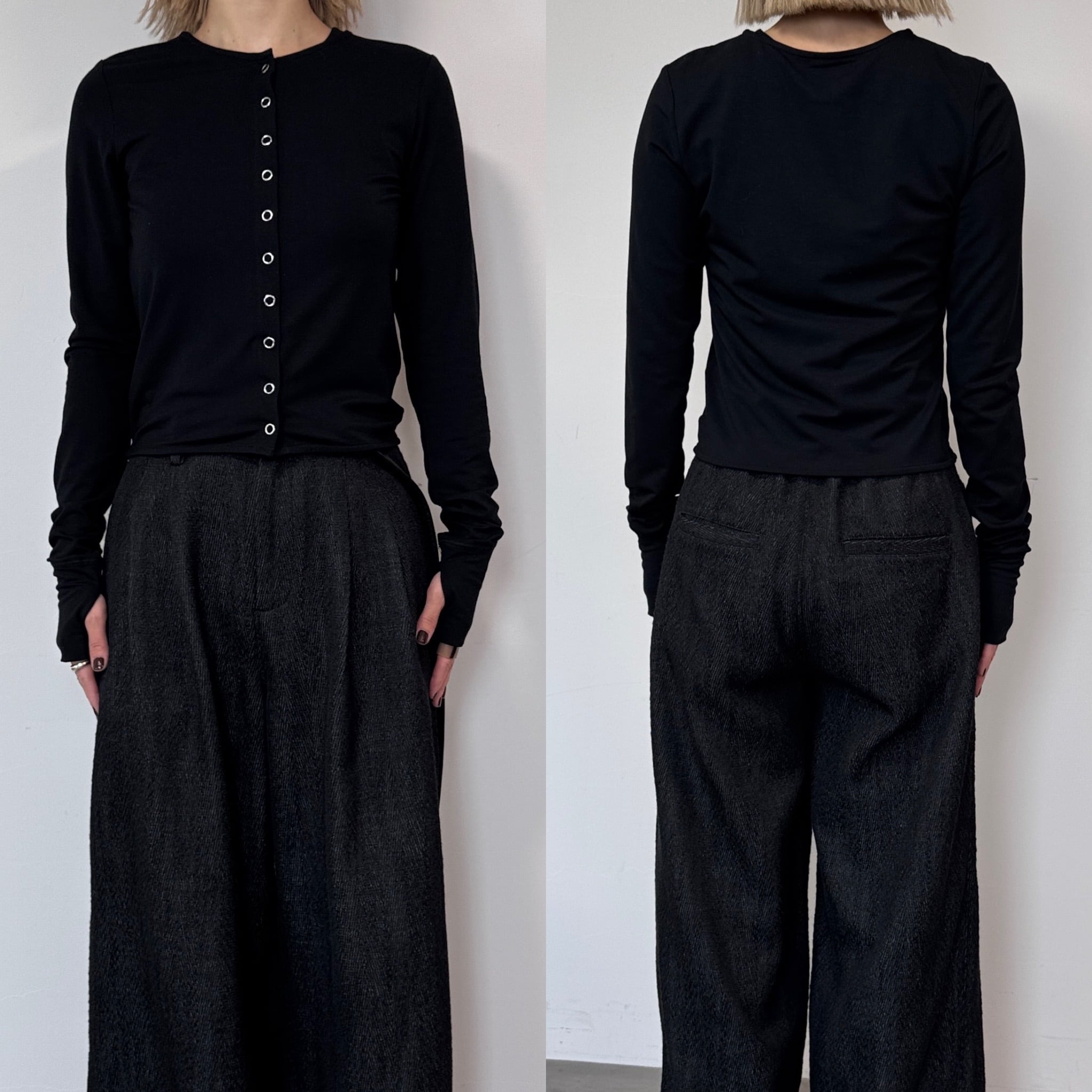 指穴クルーネックスナップボタンCD/ブラック