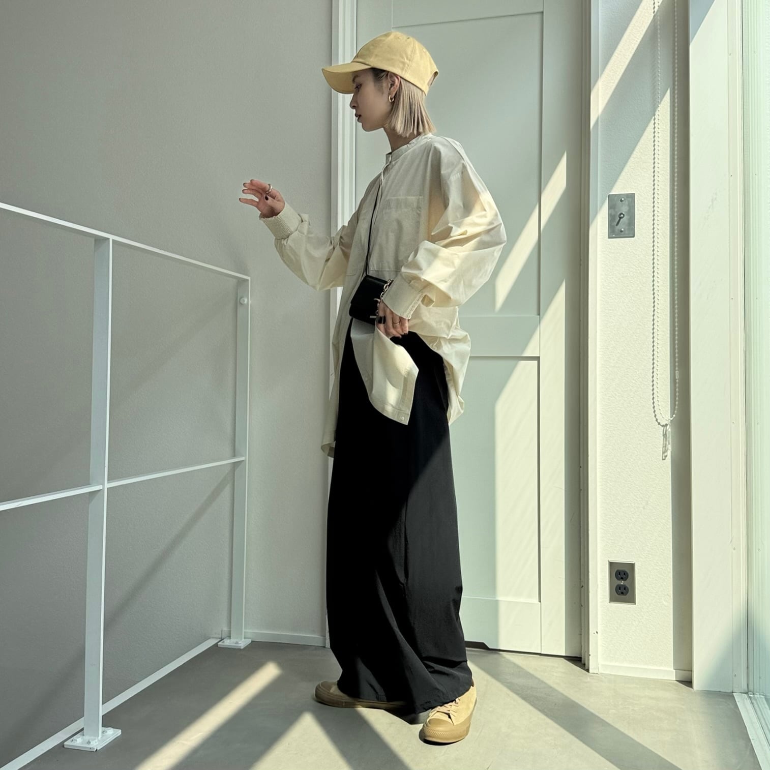 2WAYシルエット変化が楽しめる多機能シリーズBIGシャツ。ノーカラースタイルにそのままでもちろん、水辺の時は前端をクロスして、裾のドットボタンを後ろでとめることでカシュクール仕様に変形できます。身幅はゆとり多めで、ヒップが隠れる余裕のあるサイズ感で体型カバーも安心の一着。フロントポケット付き、袖口にはシャーリングゴム入りで、着脱がしやすい機能性◎