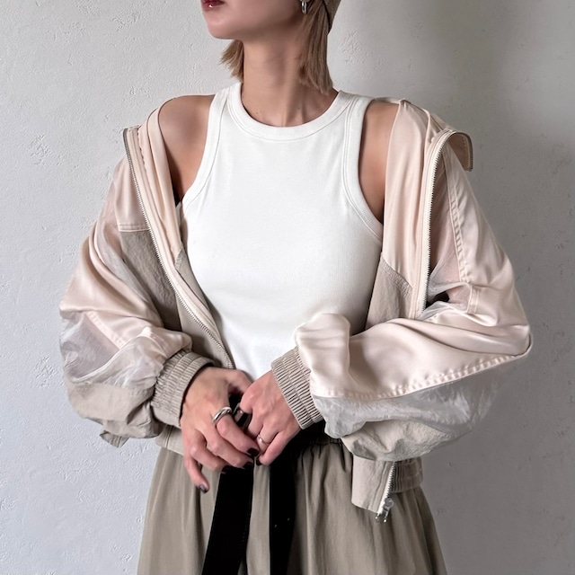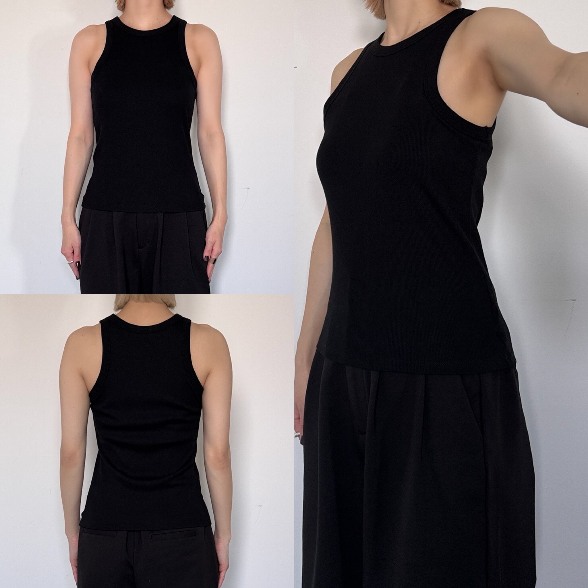 ヘルシーな肌見せが叶う今季必須のアメリカンスリーブタンクトップ。ブラ紐を気にせず着用できるカップ付き仕様で、機能性とデザイン性を両立させた究極のベーシックアイテム。デコルテと肩のラインを美しく演出。首元が詰まったデザインが、カジュアルながらも都会的で洗練された印象を与えます。カップ取り外し可。