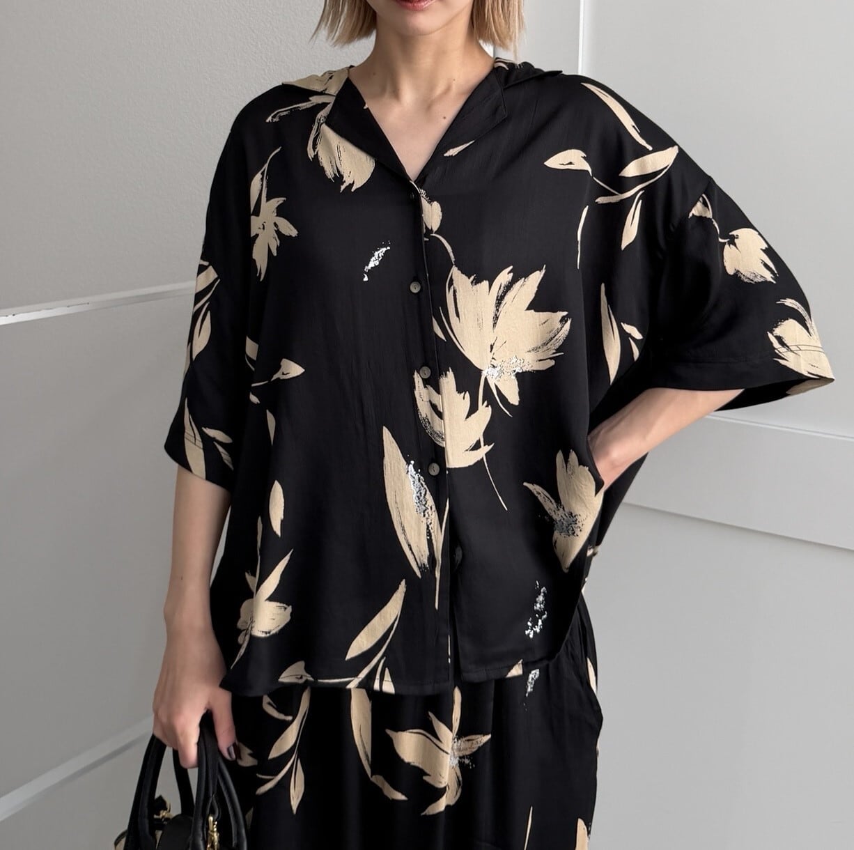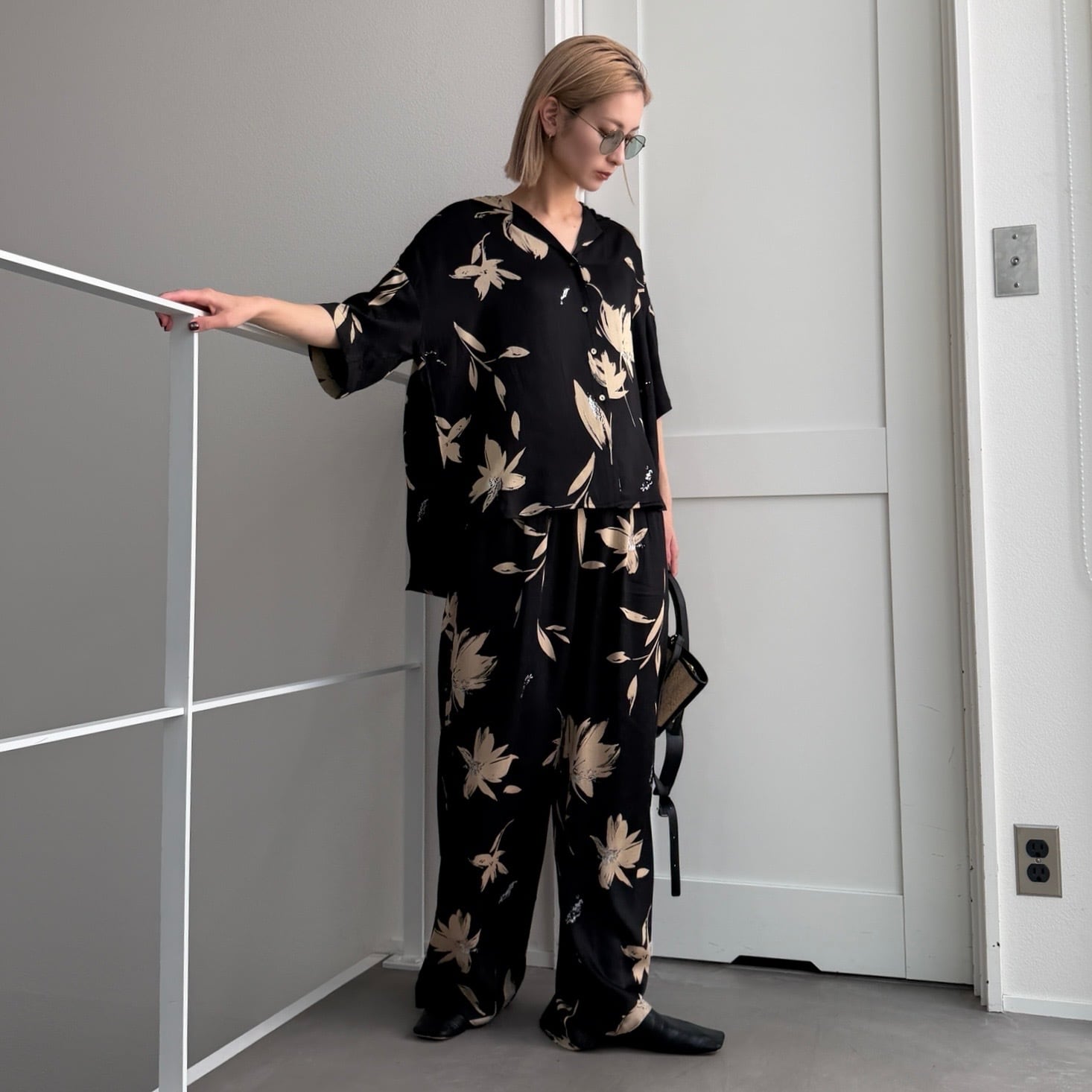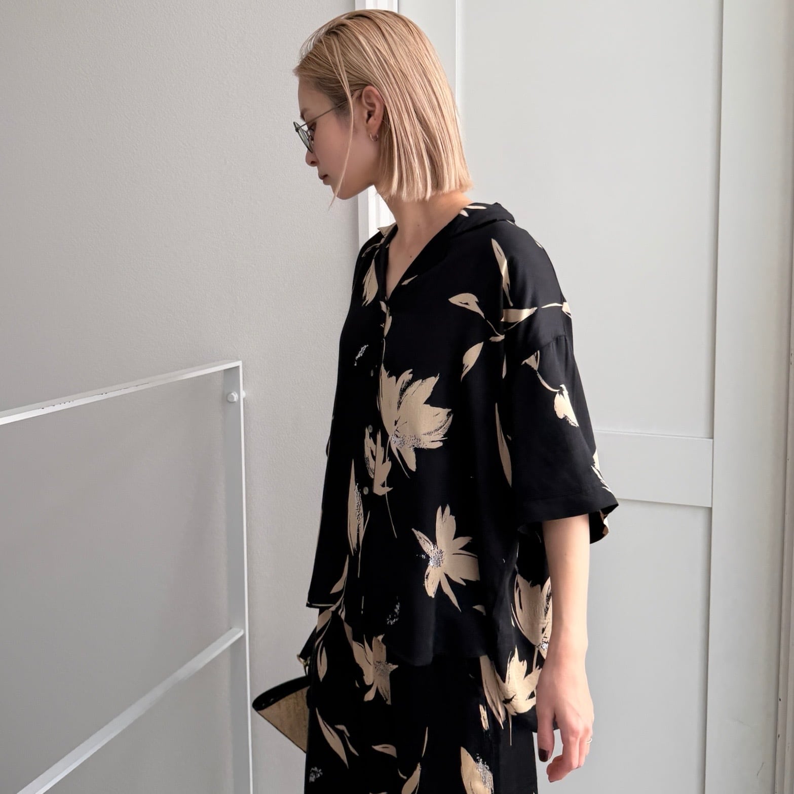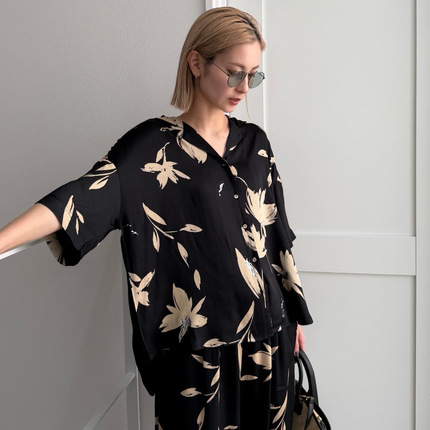 【受注予約:5月下旬入荷予定】柄マットサテンオープンカラーSH/ブラック