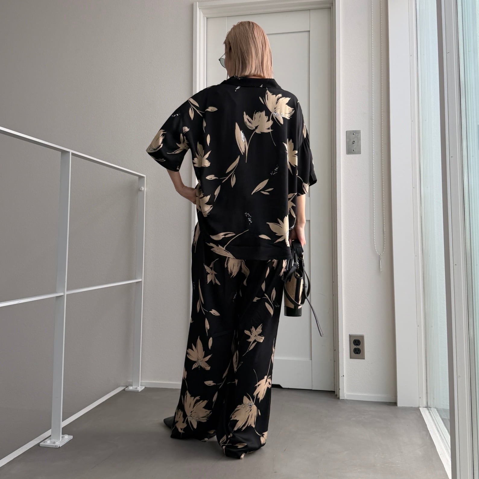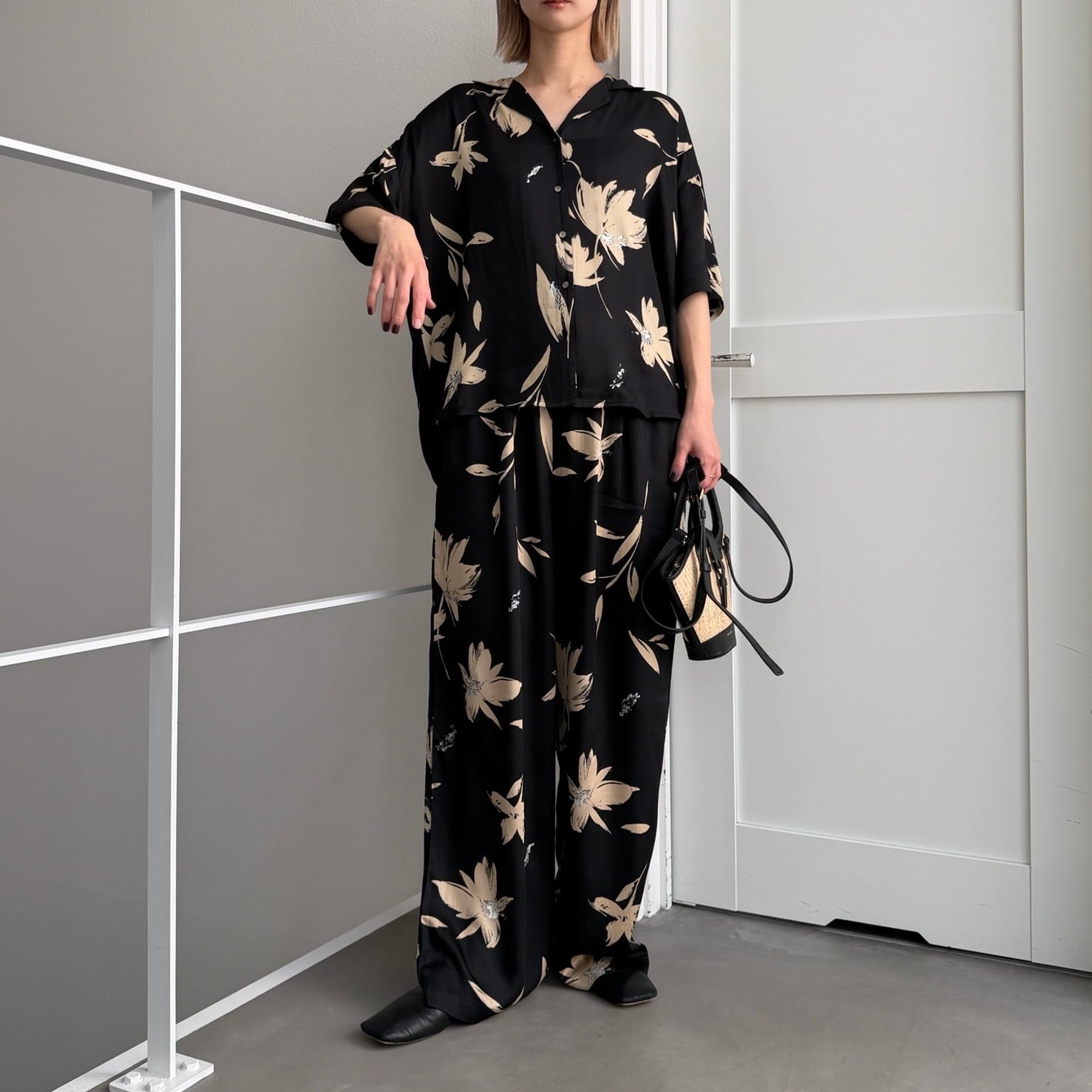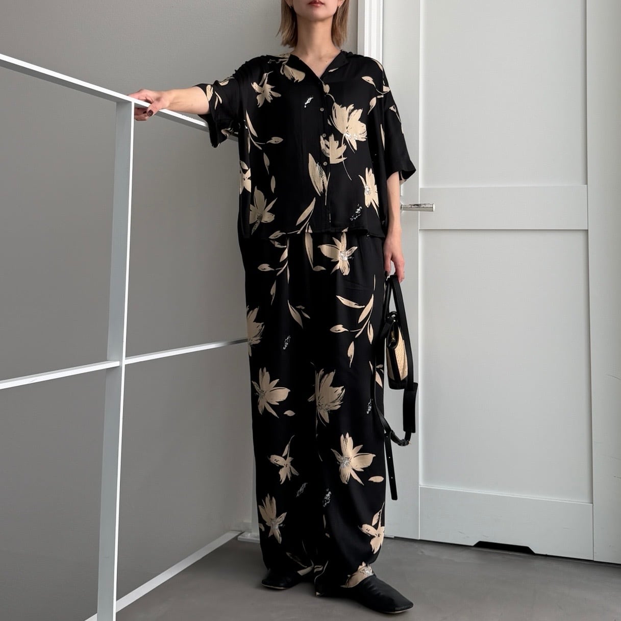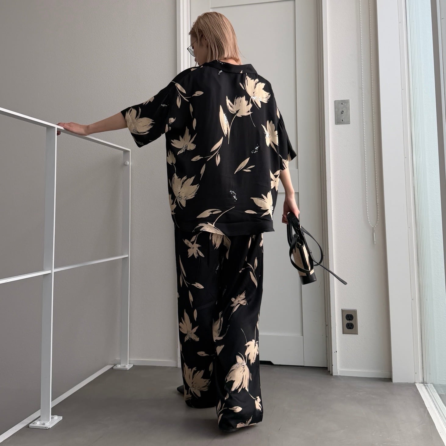 【受注予約:5月下旬入荷予定】柄マットサテンオープンカラーSH/ブラック