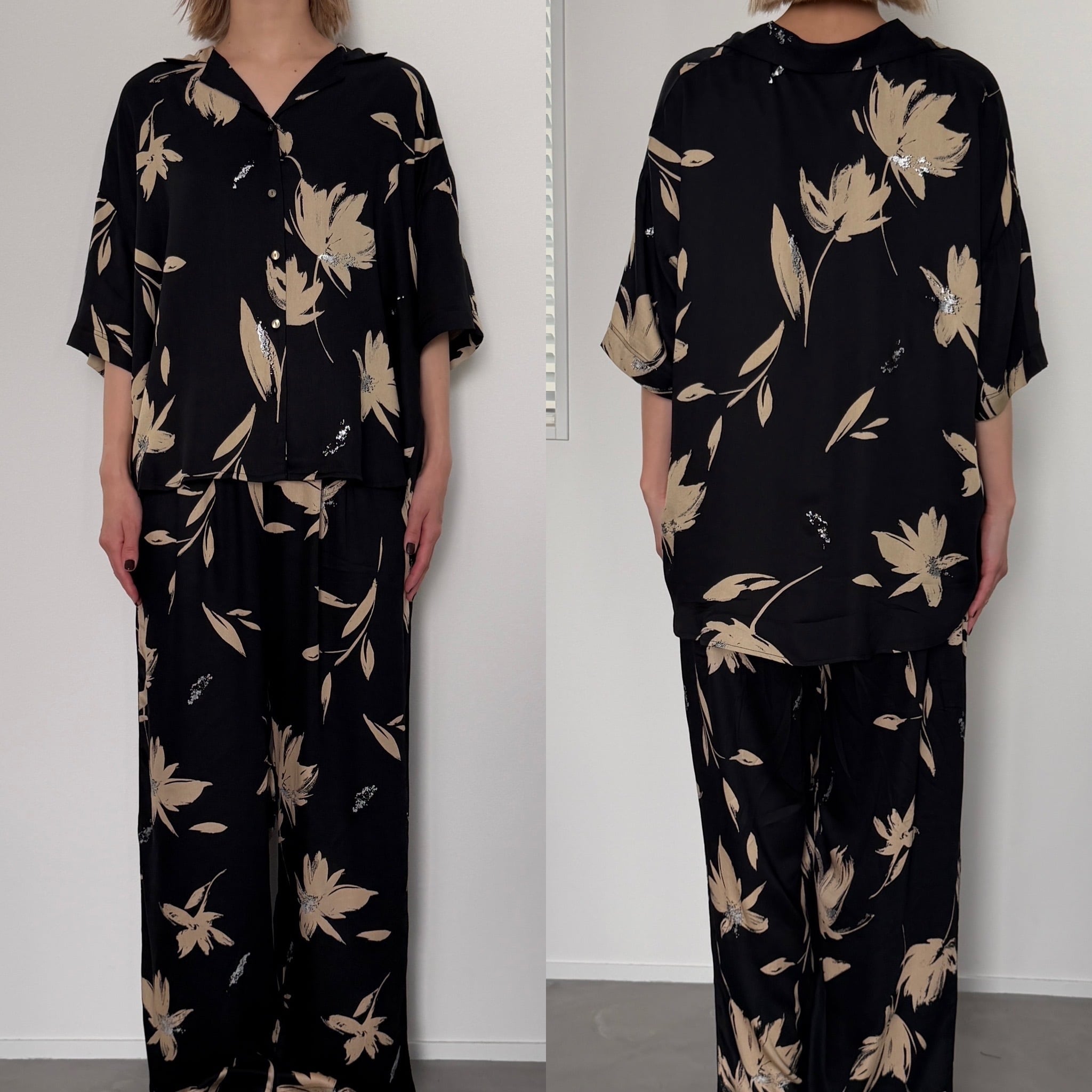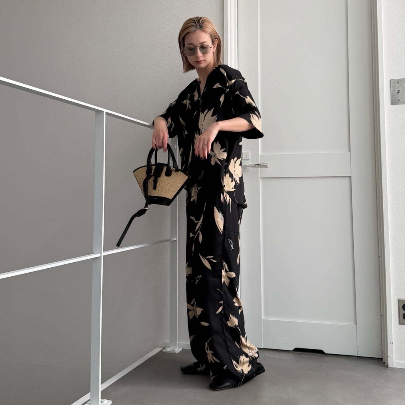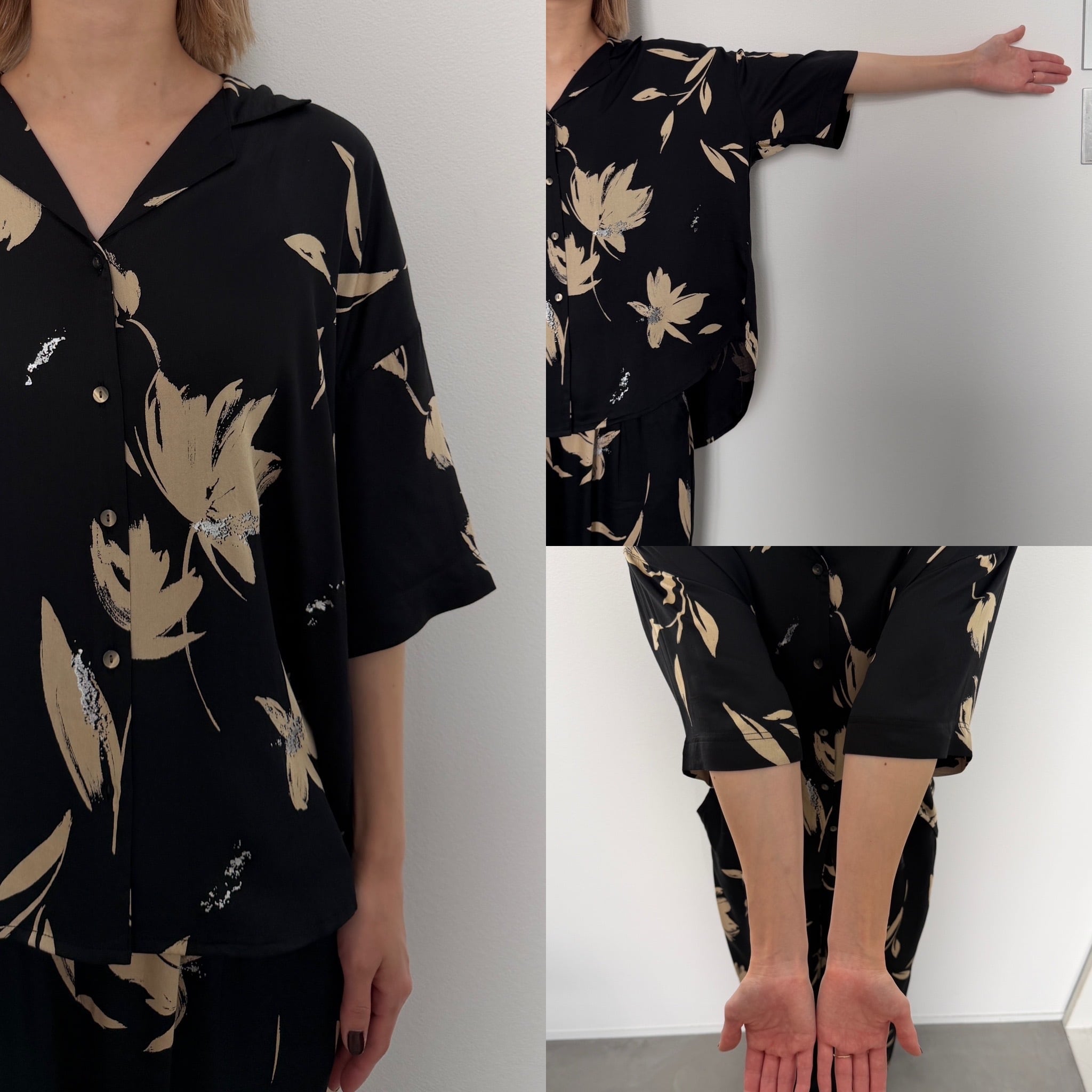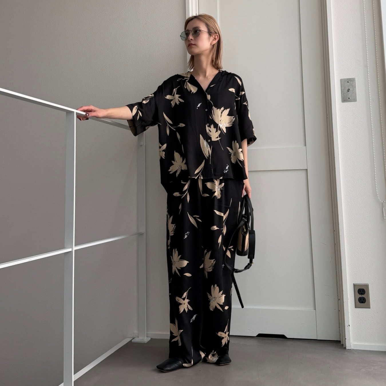 【受注予約:5月下旬入荷予定】柄マットサテンオープンカラーSH/ブラック