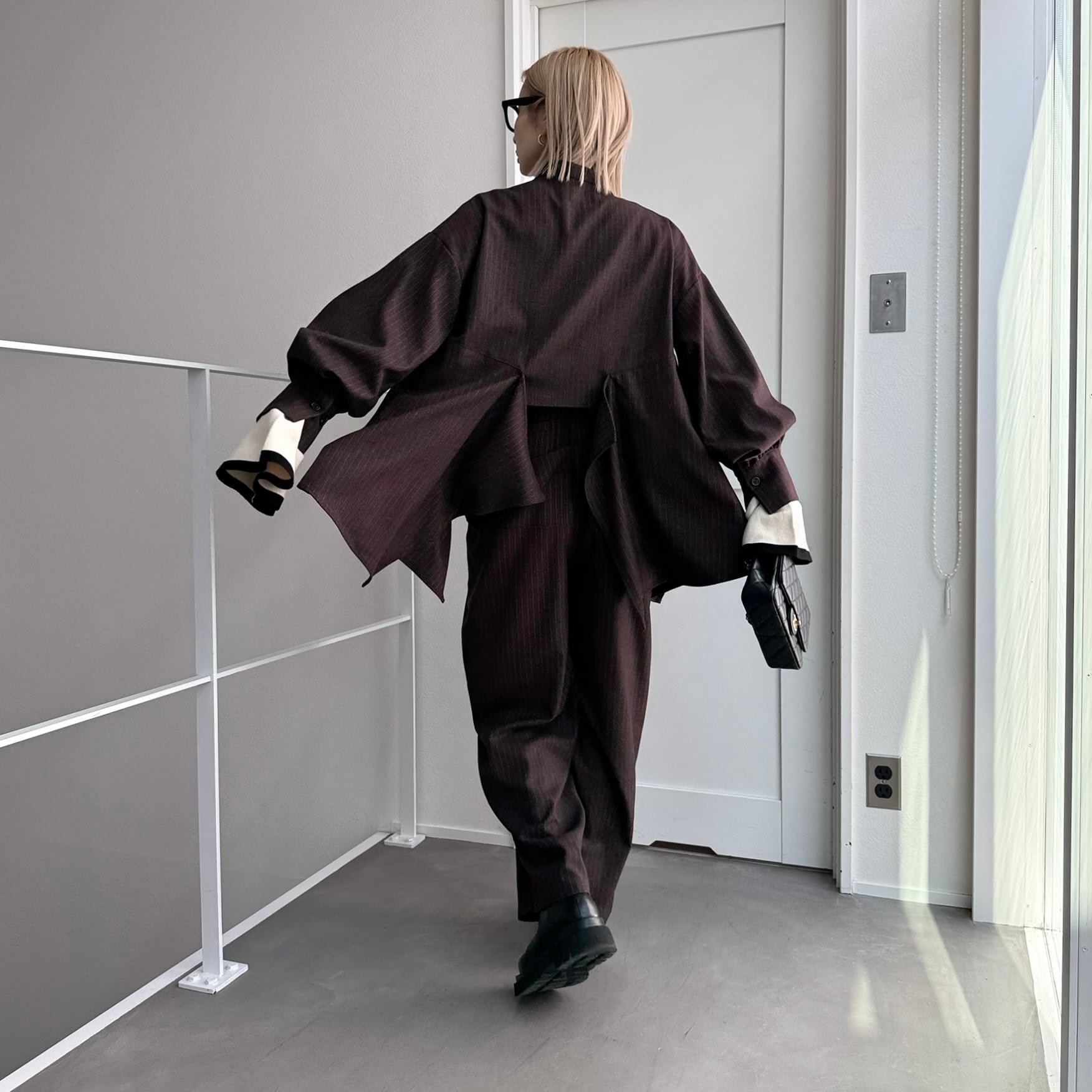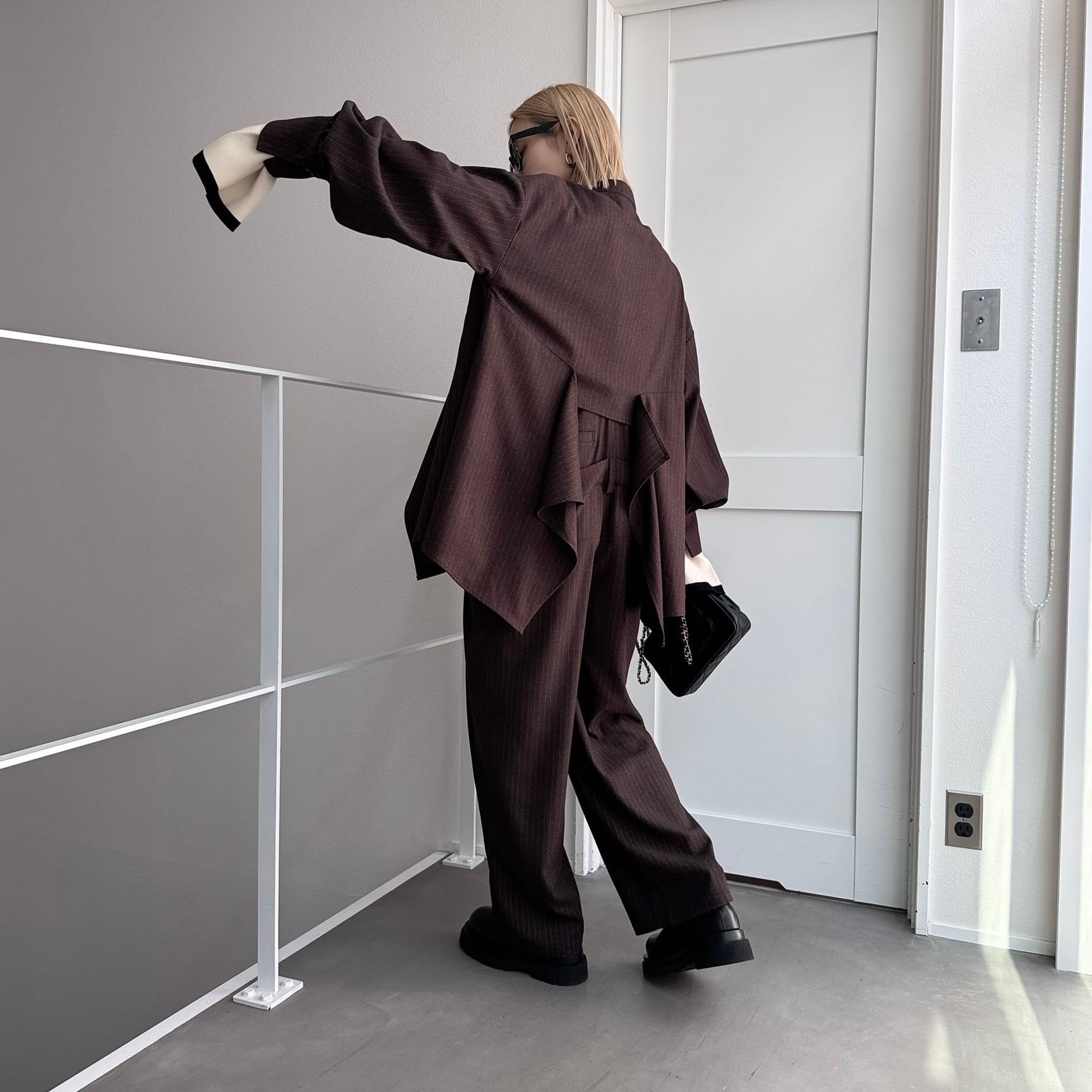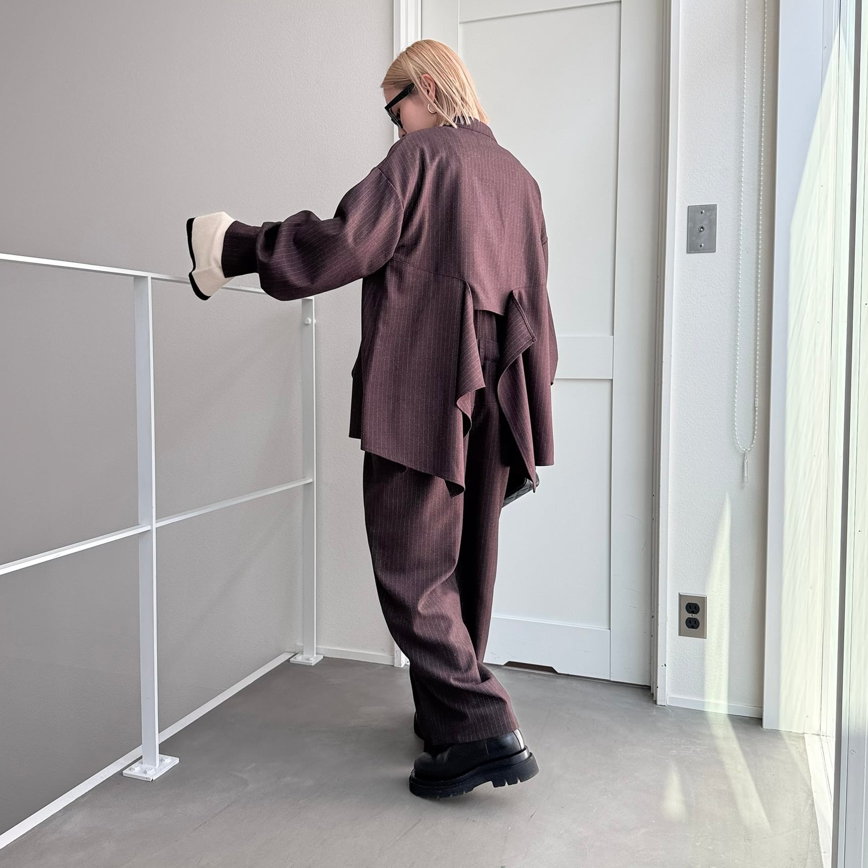 フロントとバックのドレープが目を惹くジップジャケット。ドレープ部分は腰回りを隠してくれるロング丈。きれいなドレープ感のあるシルエットなので重く見えず動きのあるデザインに。zip部分はあえて短くしているので合わせるインナーで印象が変わります。セットアップはもちろんワンピースの上やシャツ感覚で羽織っても◎オケージョンにもおすすめです。