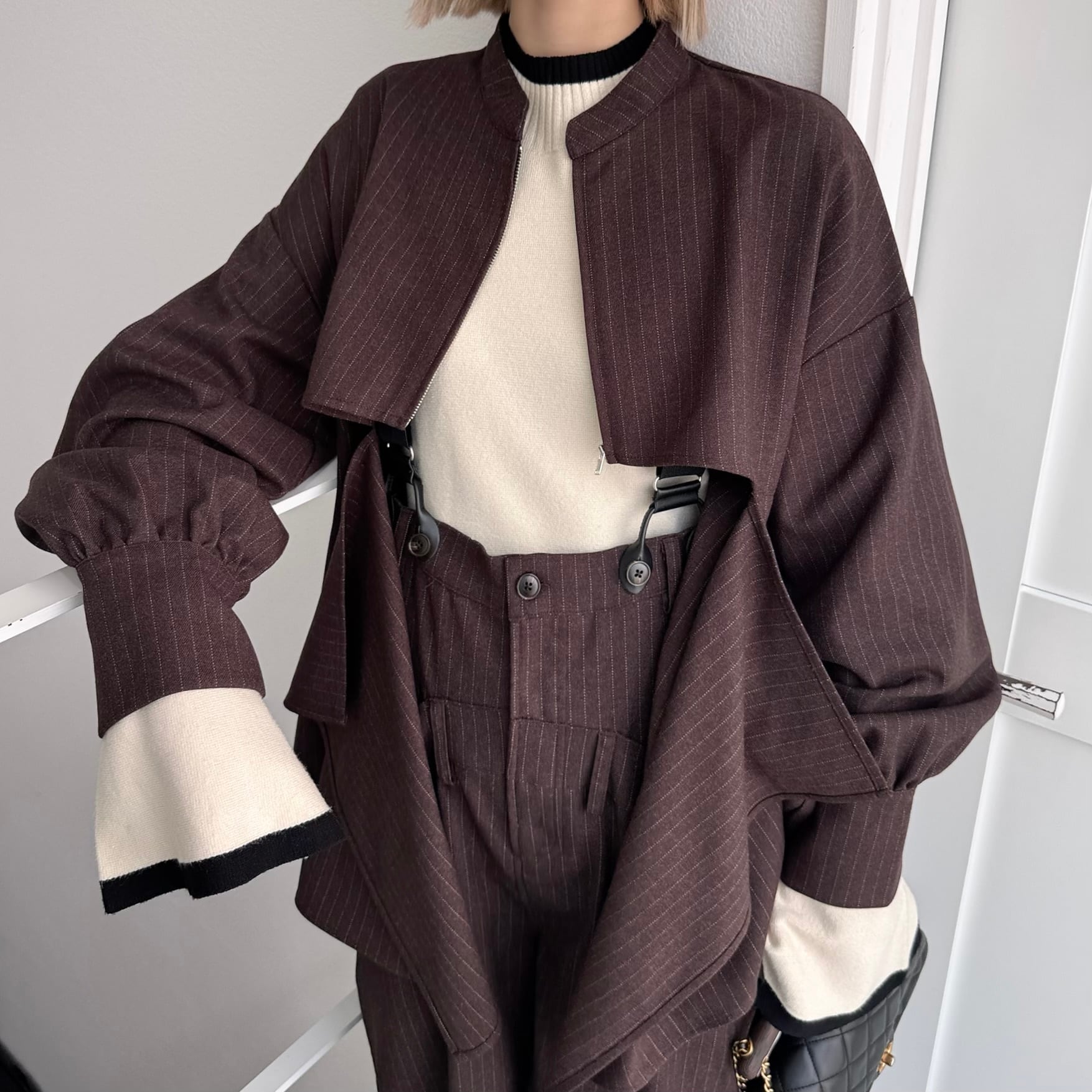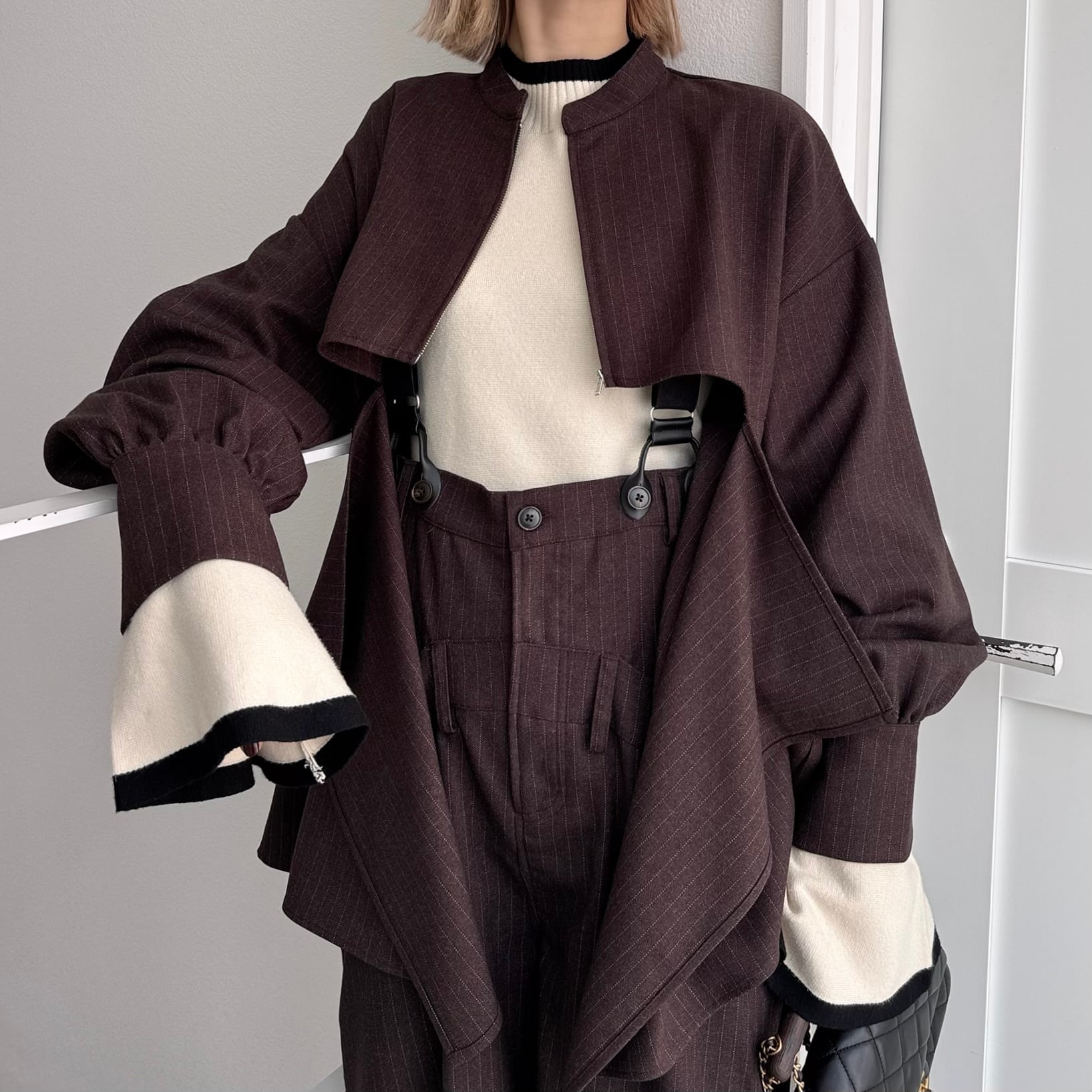 stripe back drape zip JK/brown