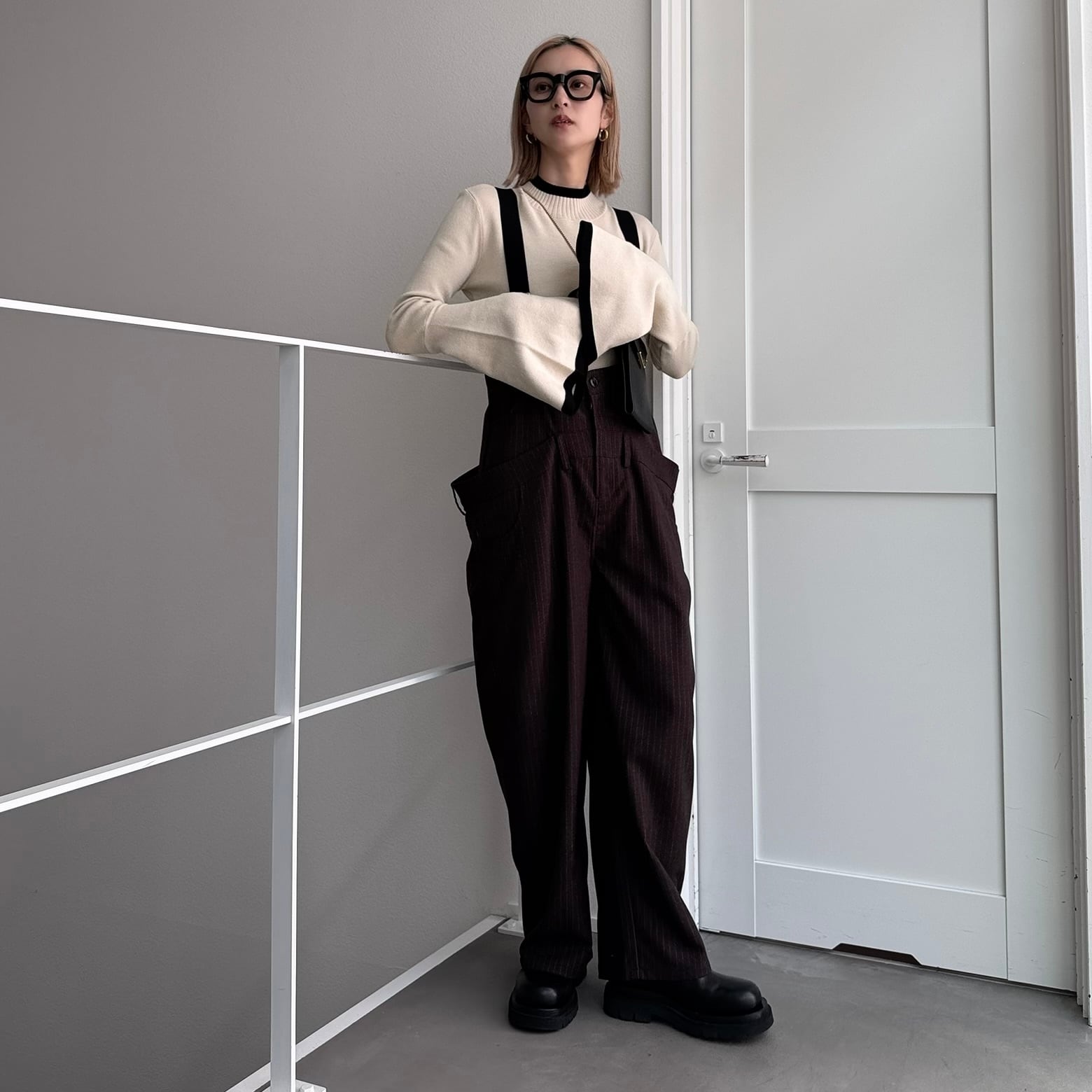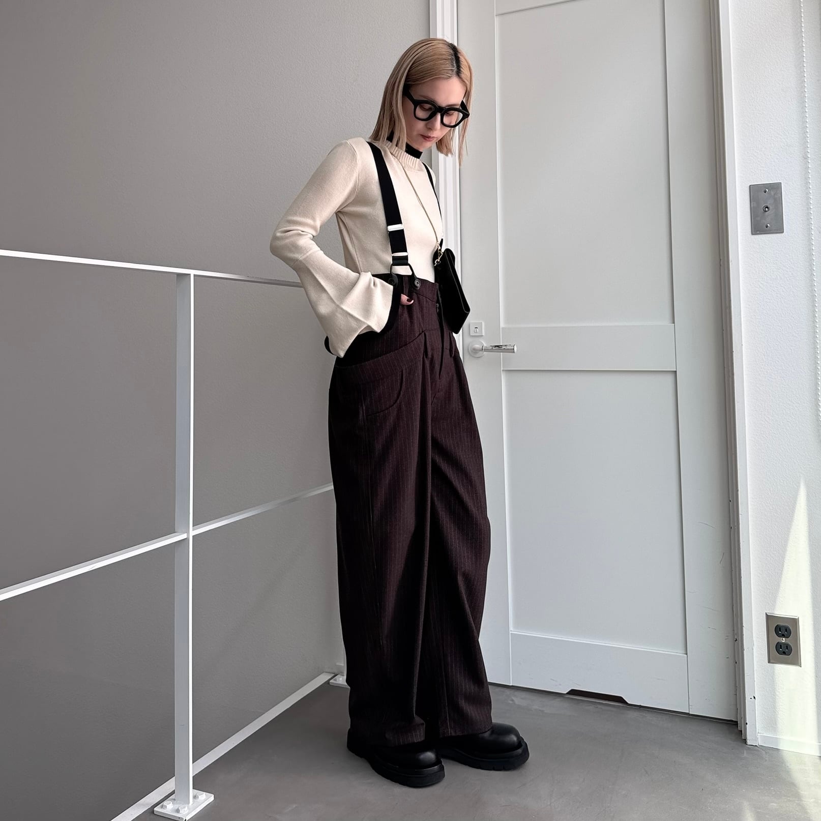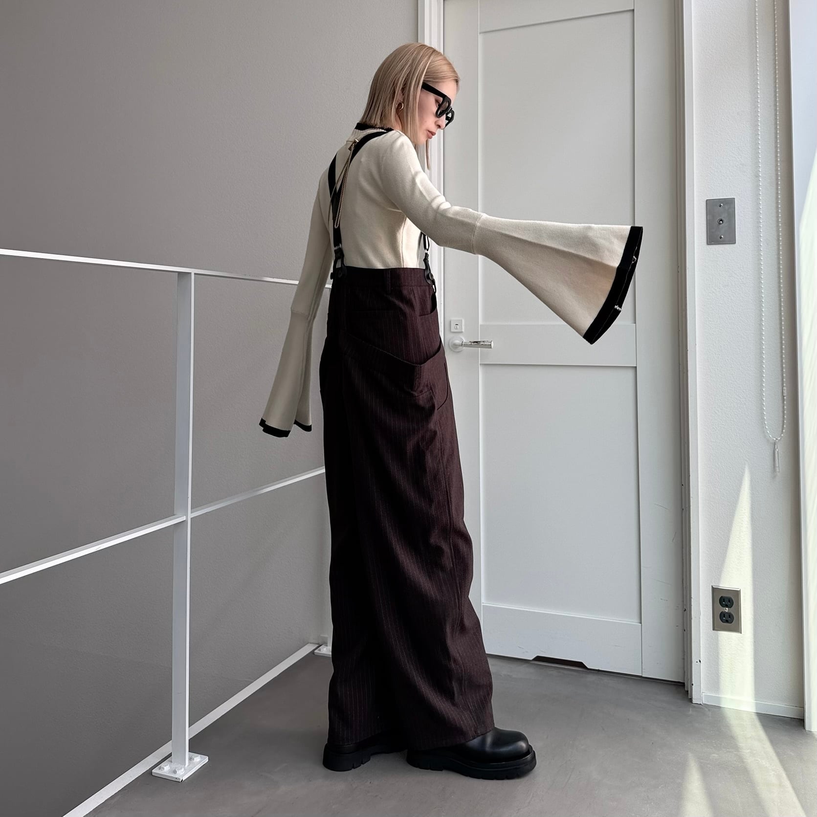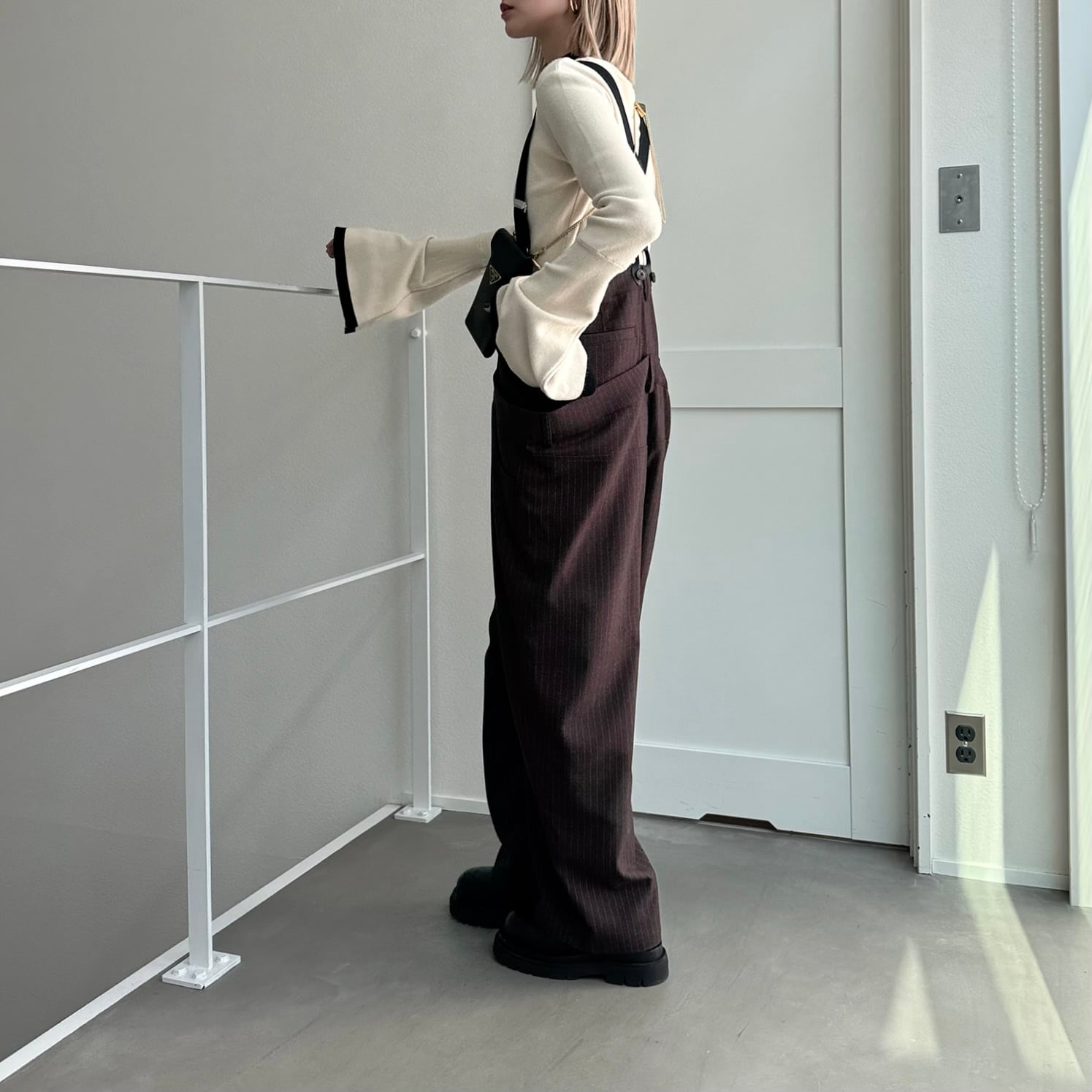 ウエスト部分を重ね合わせたドッキングデザインのサロペットパンツ。デザイン性のあるボトムはどんなitemにも合わせやすく一気にモード感のある雰囲気に。ダブルウエスト部分は腰回りをカバーしてくれます。サスペンダーを使用したコーデはもちろん、ウエストのボタンを切り替えるだけでハイウエストパンツとしても◎コーデによって履く位置をチェンジしコーデをお楽しみいただけます。オケージョンにもおススメ。