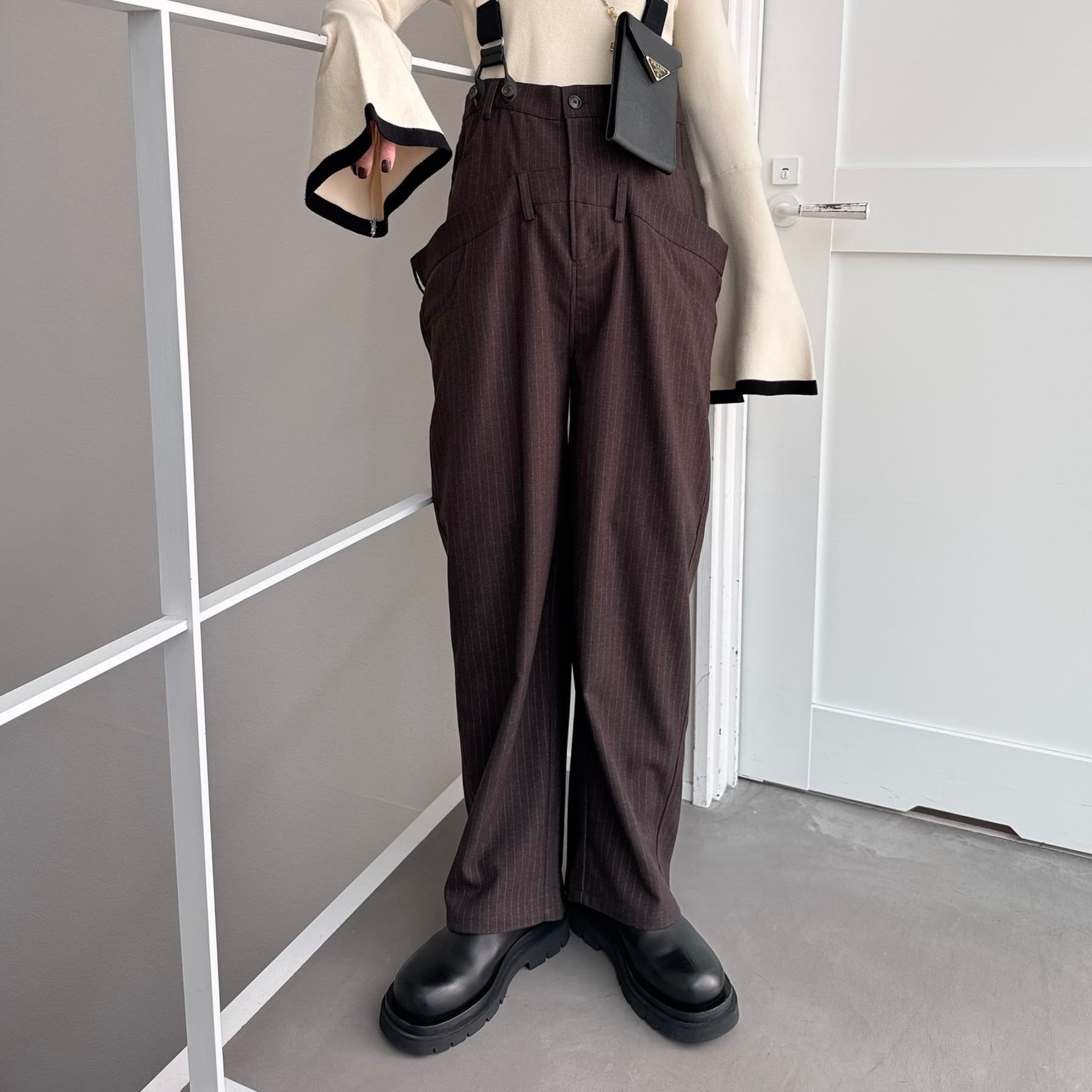 stripe double waist salopette PT/brown