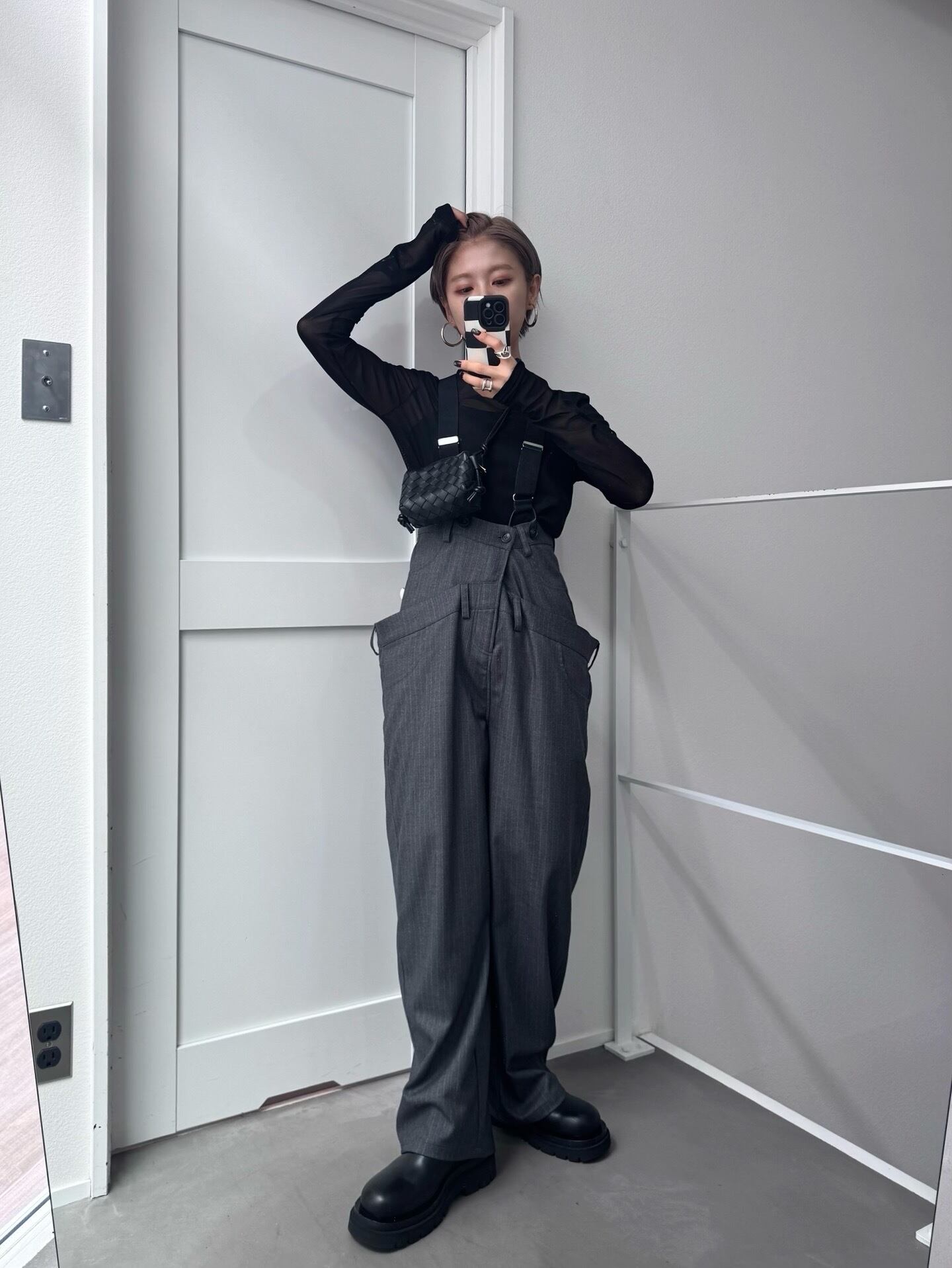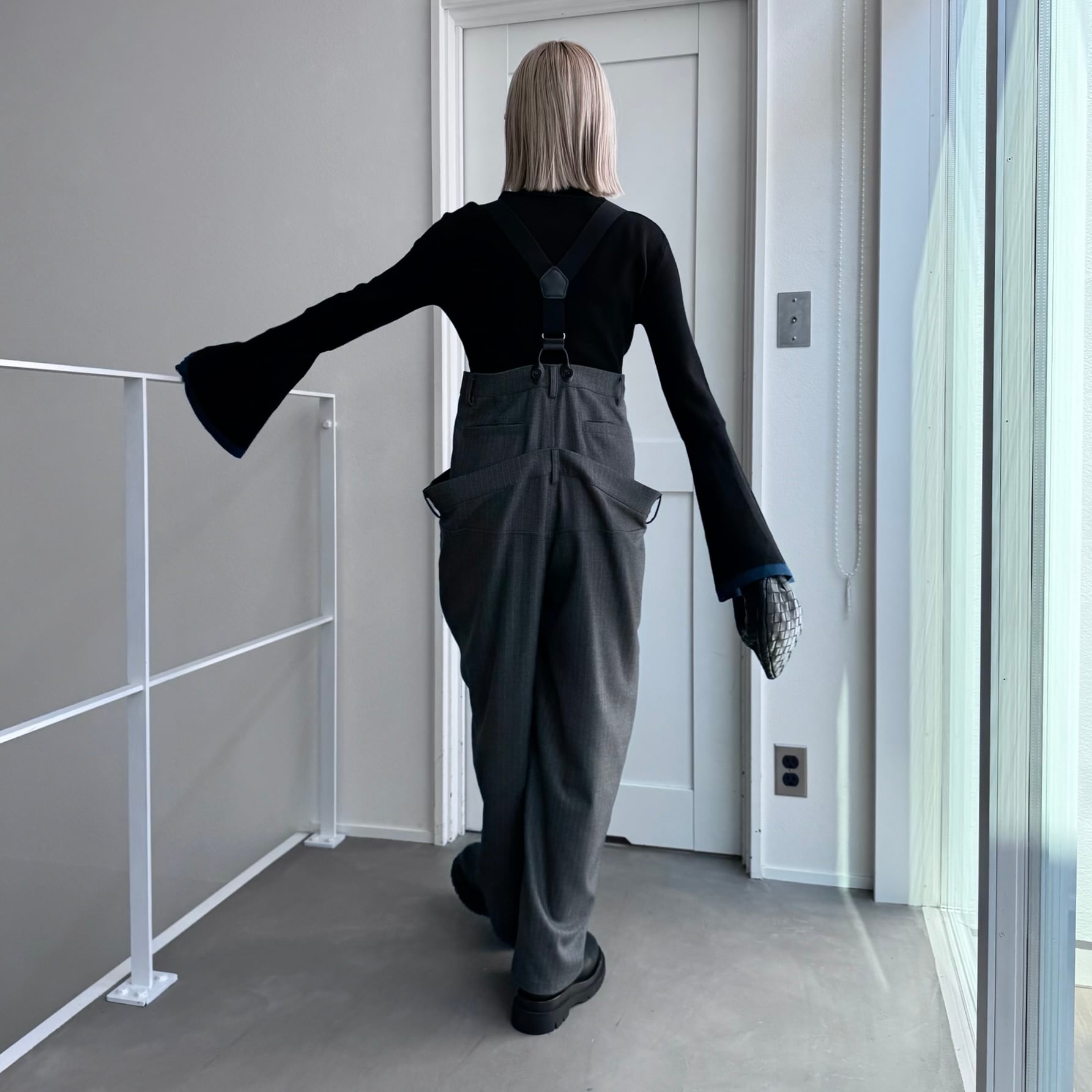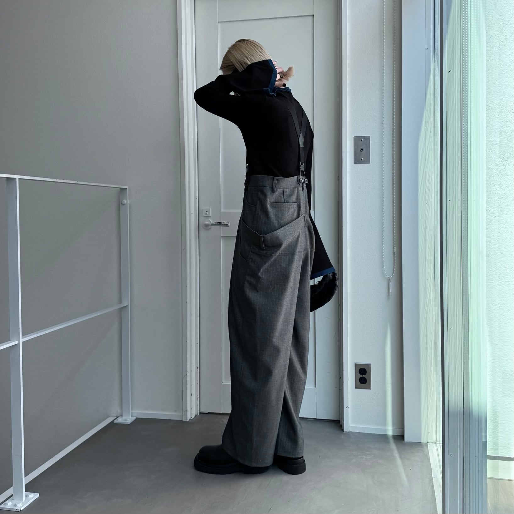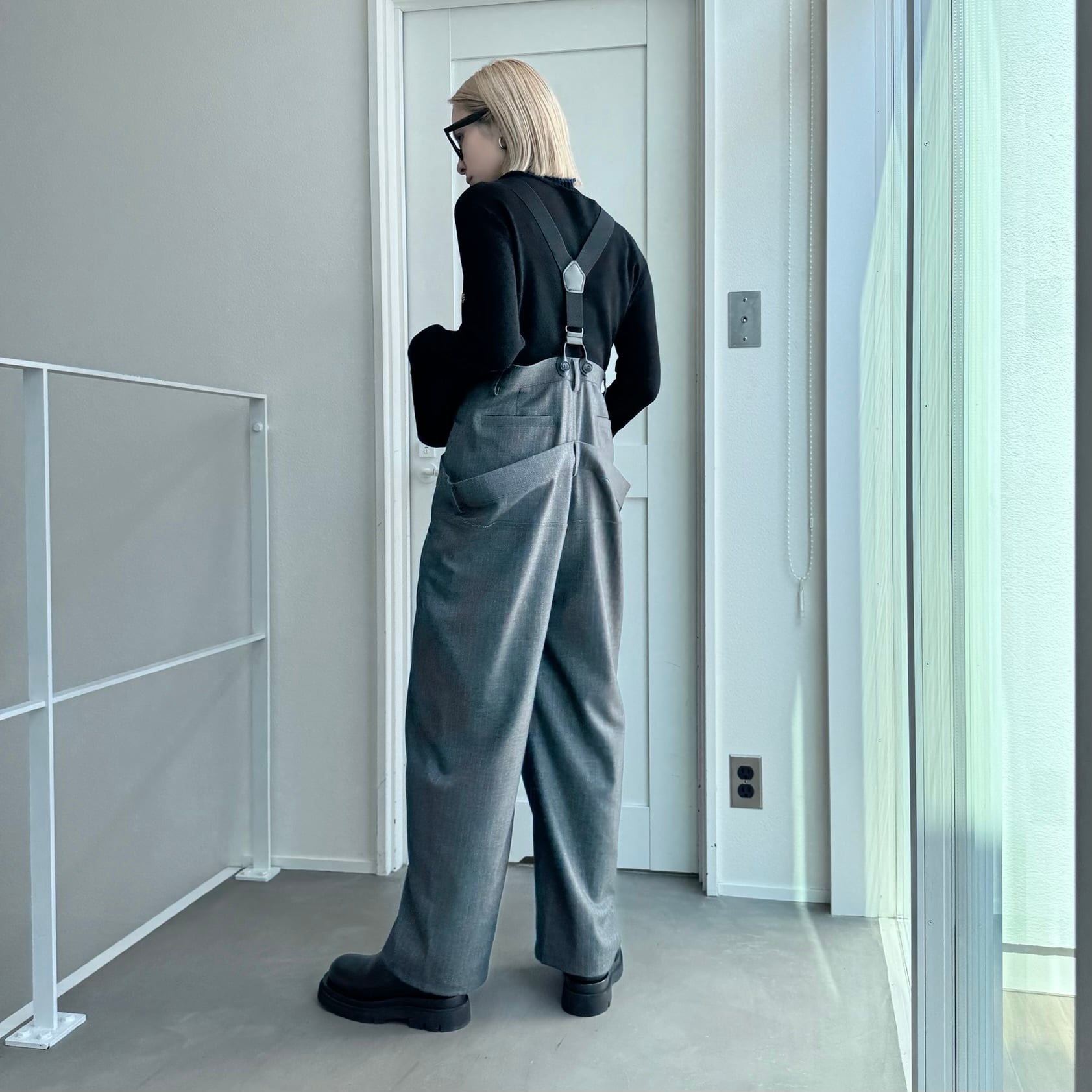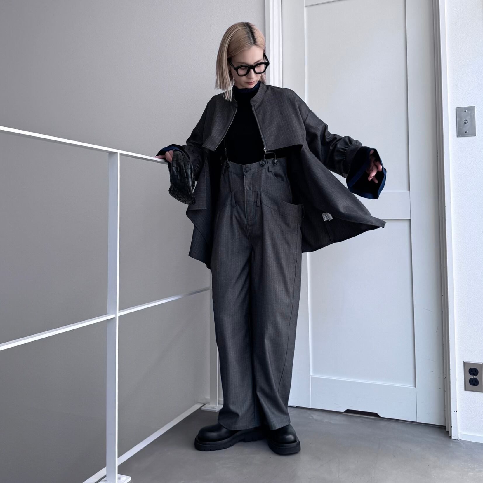 ウエスト部分を重ね合わせたドッキングデザインのサロペットパンツ。デザイン性のあるボトムはどんなitemにも合わせやすく一気にモード感のある雰囲気に。ダブルウエスト部分は腰回りをカバーしてくれます。サスペンダーを使用したコーデはもちろん、ウエストのボタンを切り替えるだけでハイウエストパンツとしても◎コーデによって履く位置をチェンジしコーデをお楽しみいただけます。オケージョンにもおススメ。