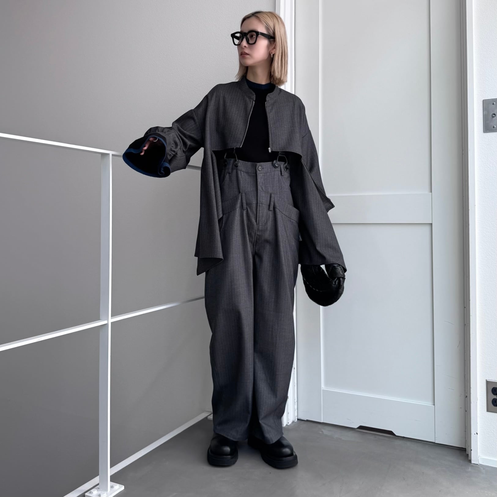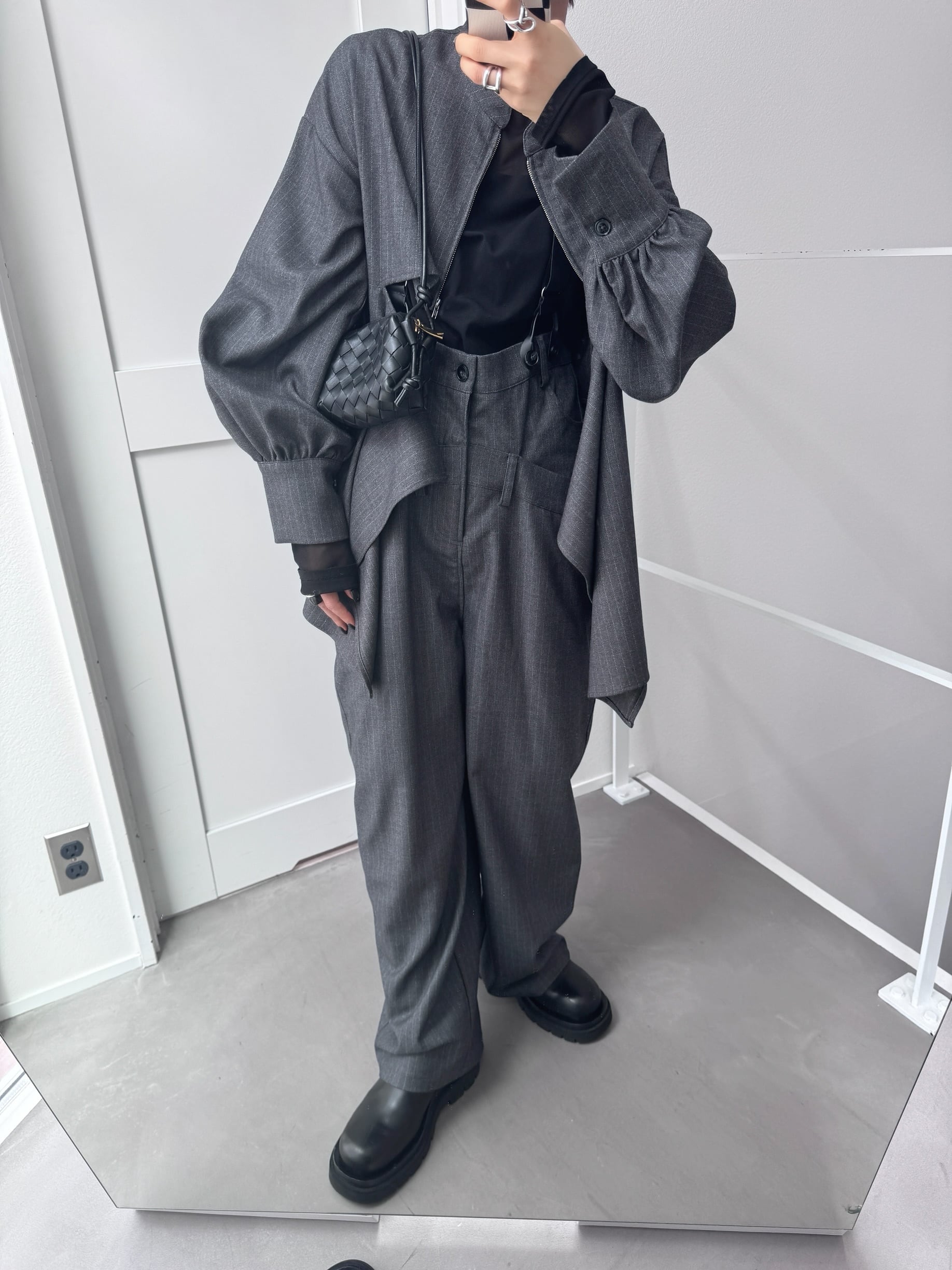 jacket:stripe back drape zip JK/gray