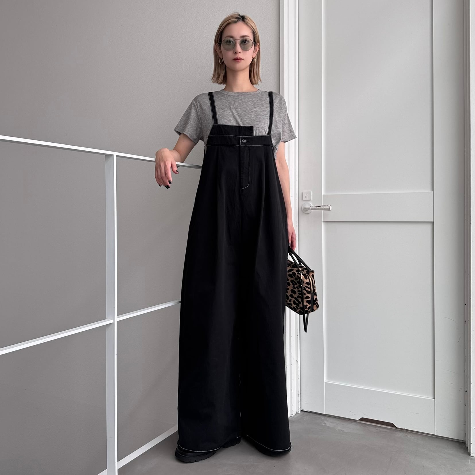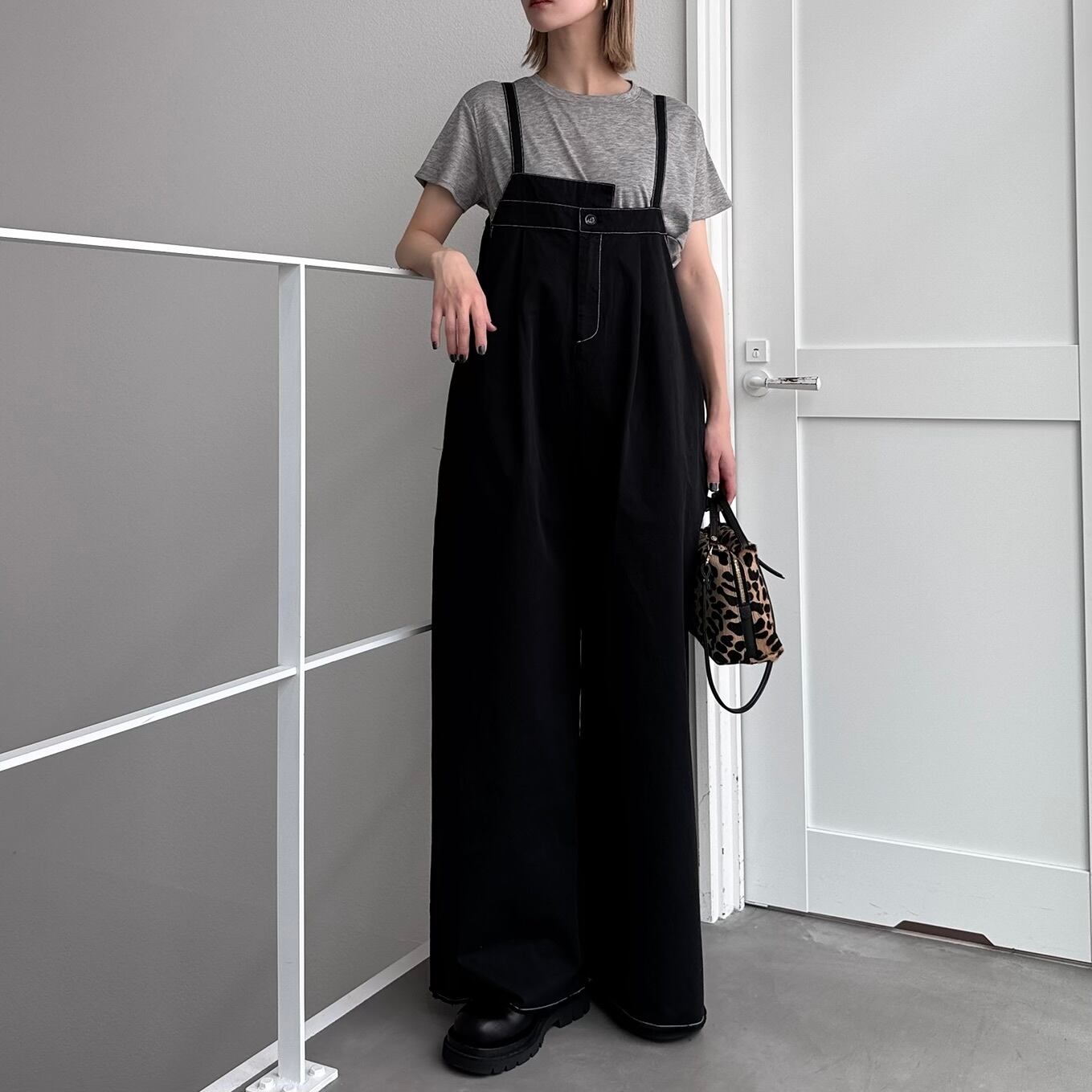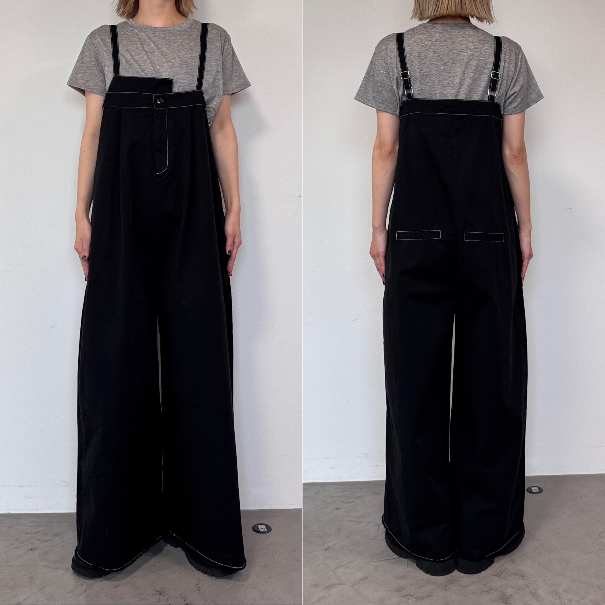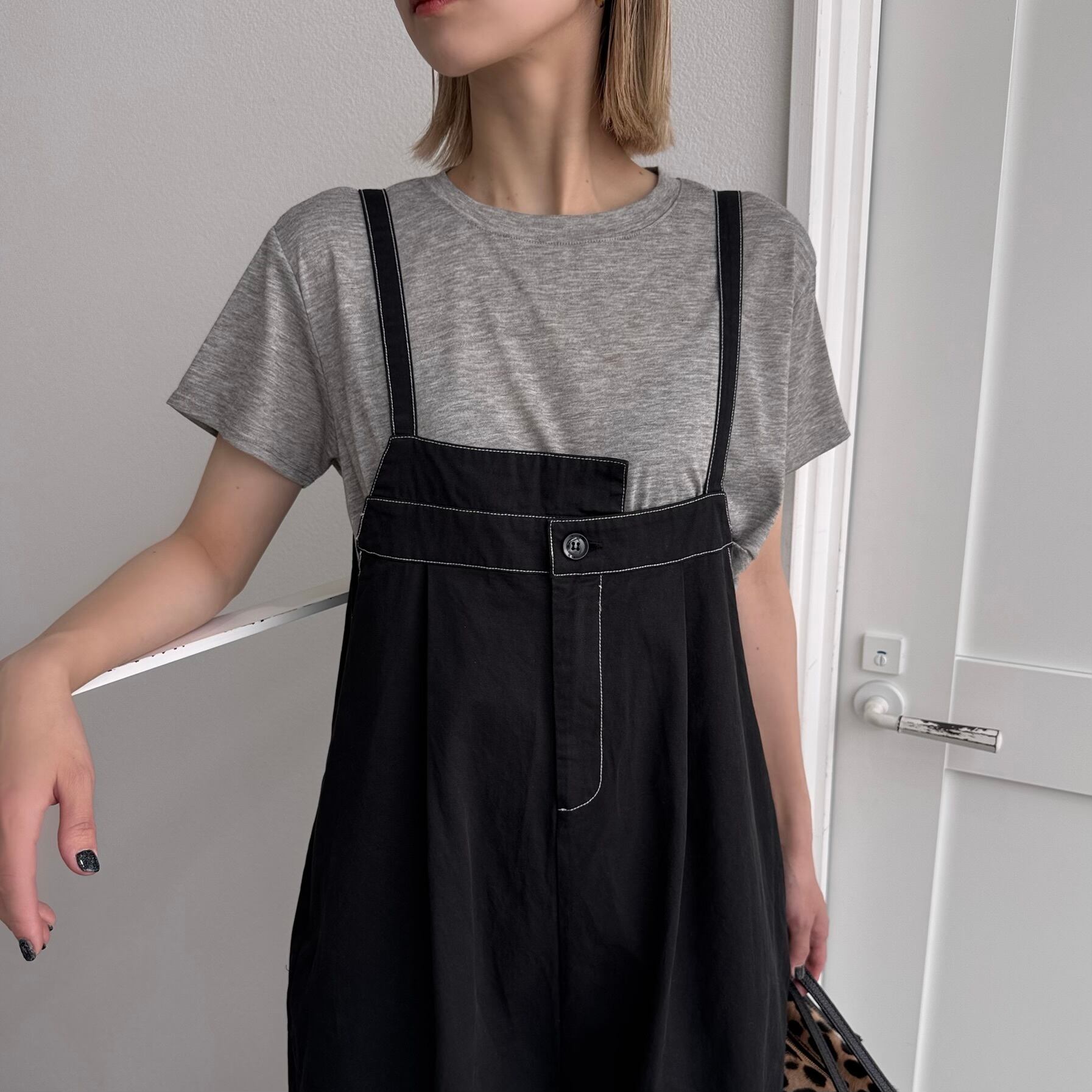 切りっぱなしステッチサロペットPT/ブラック