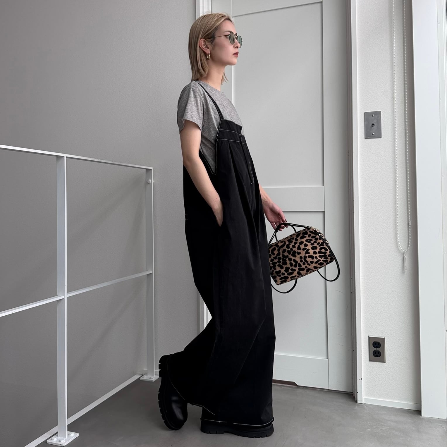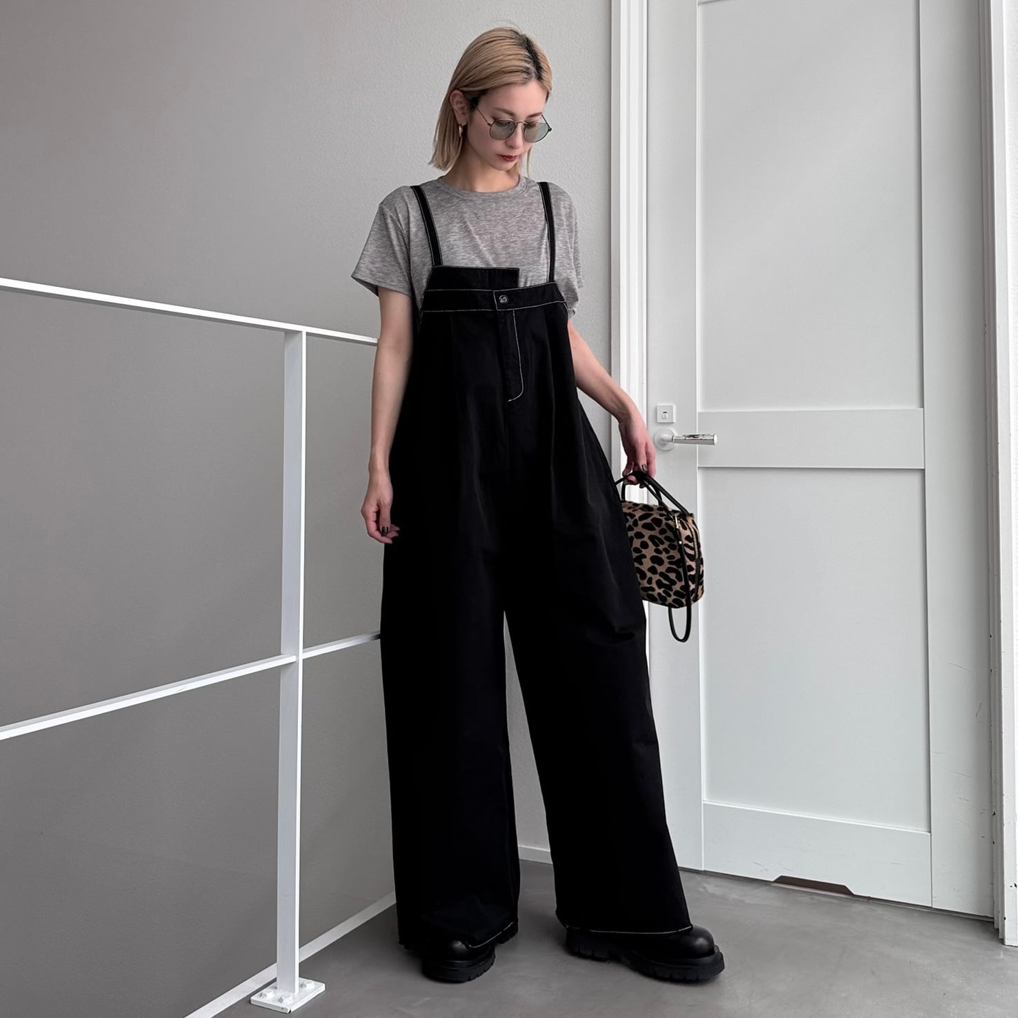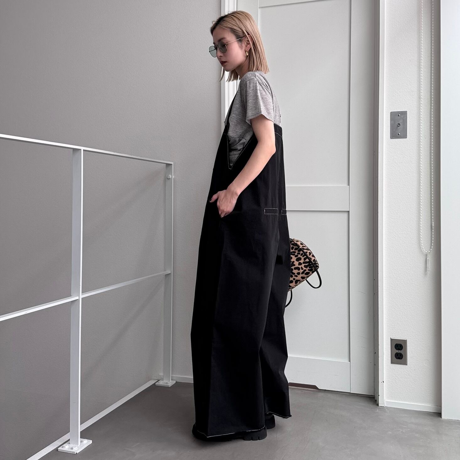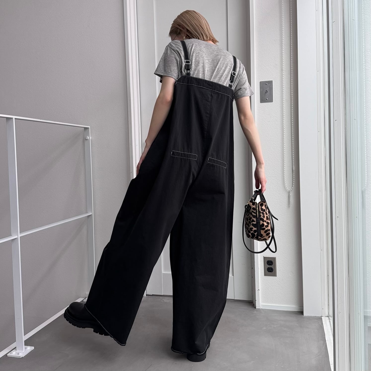 切りっぱなしステッチサロペットPT/ブラック