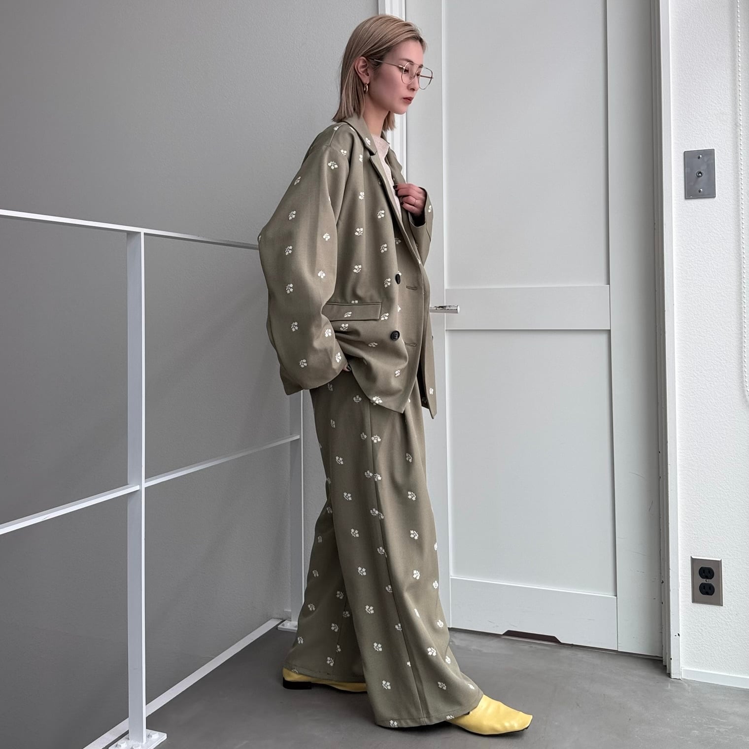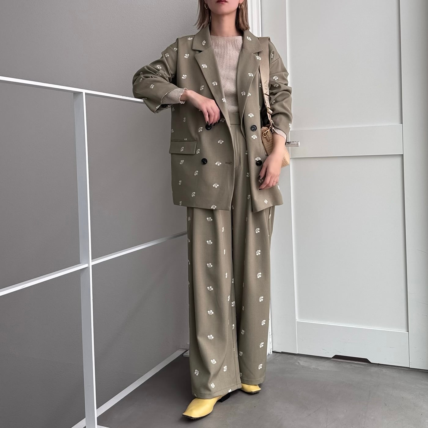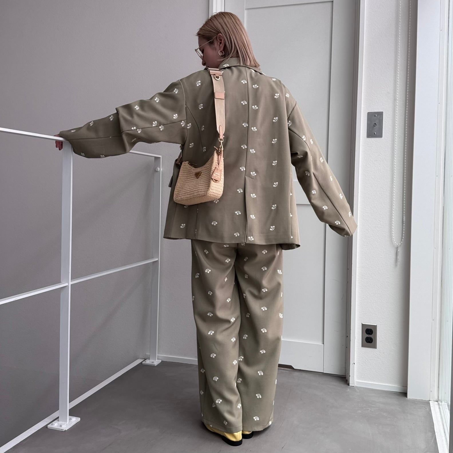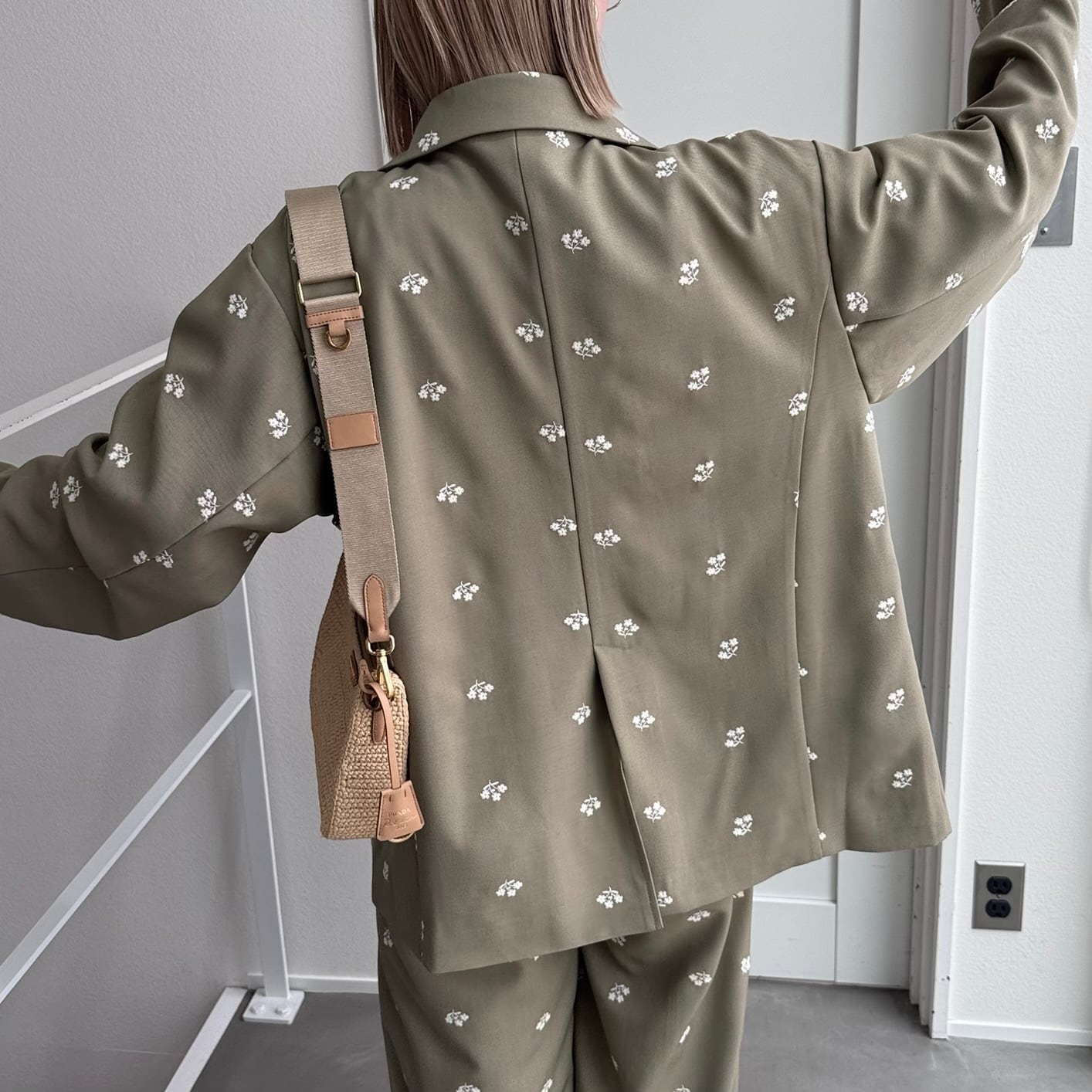 小花柄の刺繍が目を惹くオーバーサイズのジャケット。着心地も楽で、ゆったりとしたスタイリングを楽しめます。同生地/同柄のパンツとセットアップ着用も可能◎オケージョンから普段着まで様々なコーデでお楽しみいただけます。