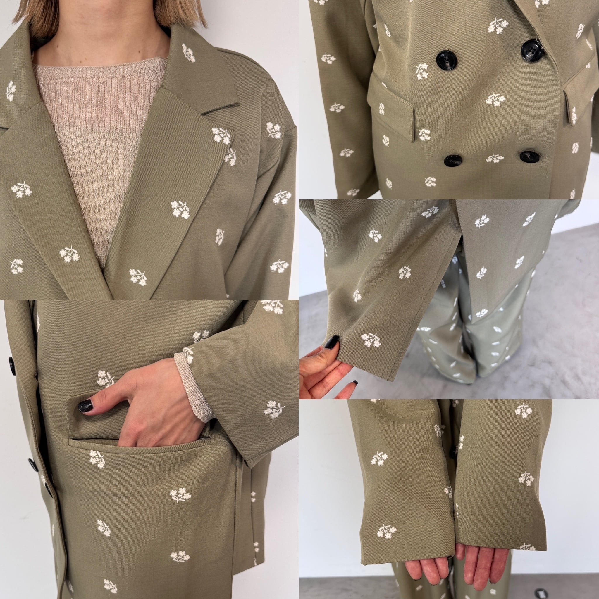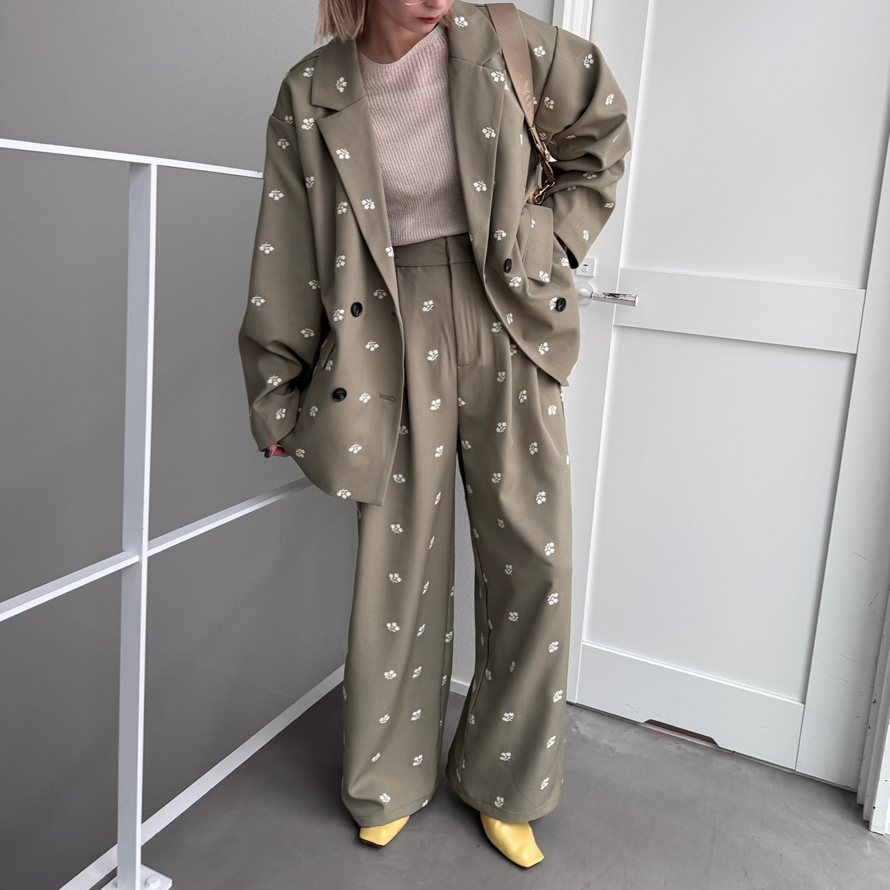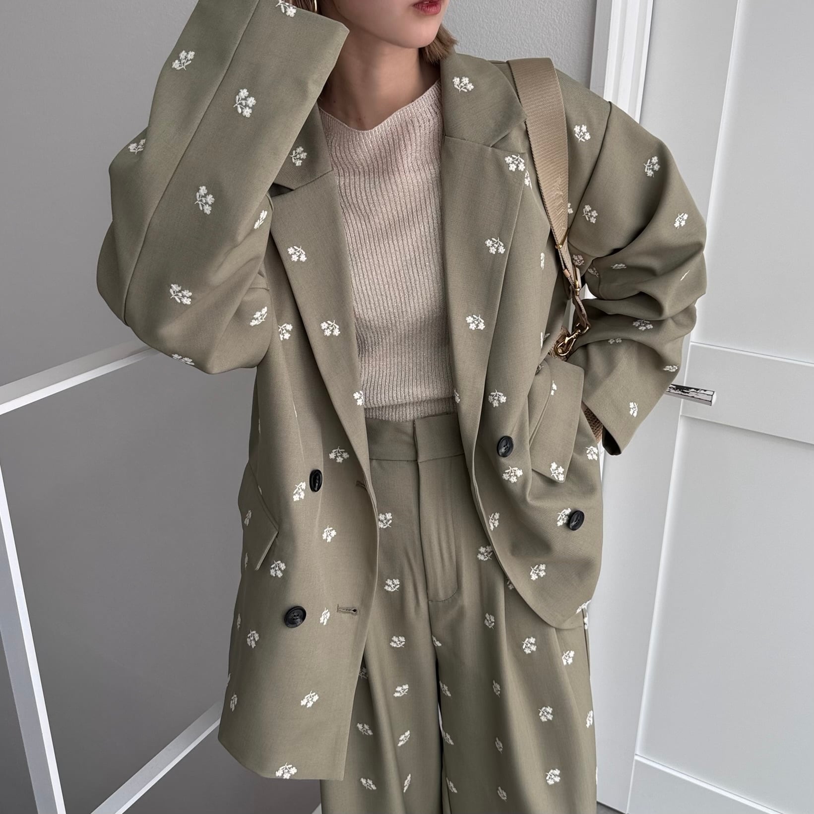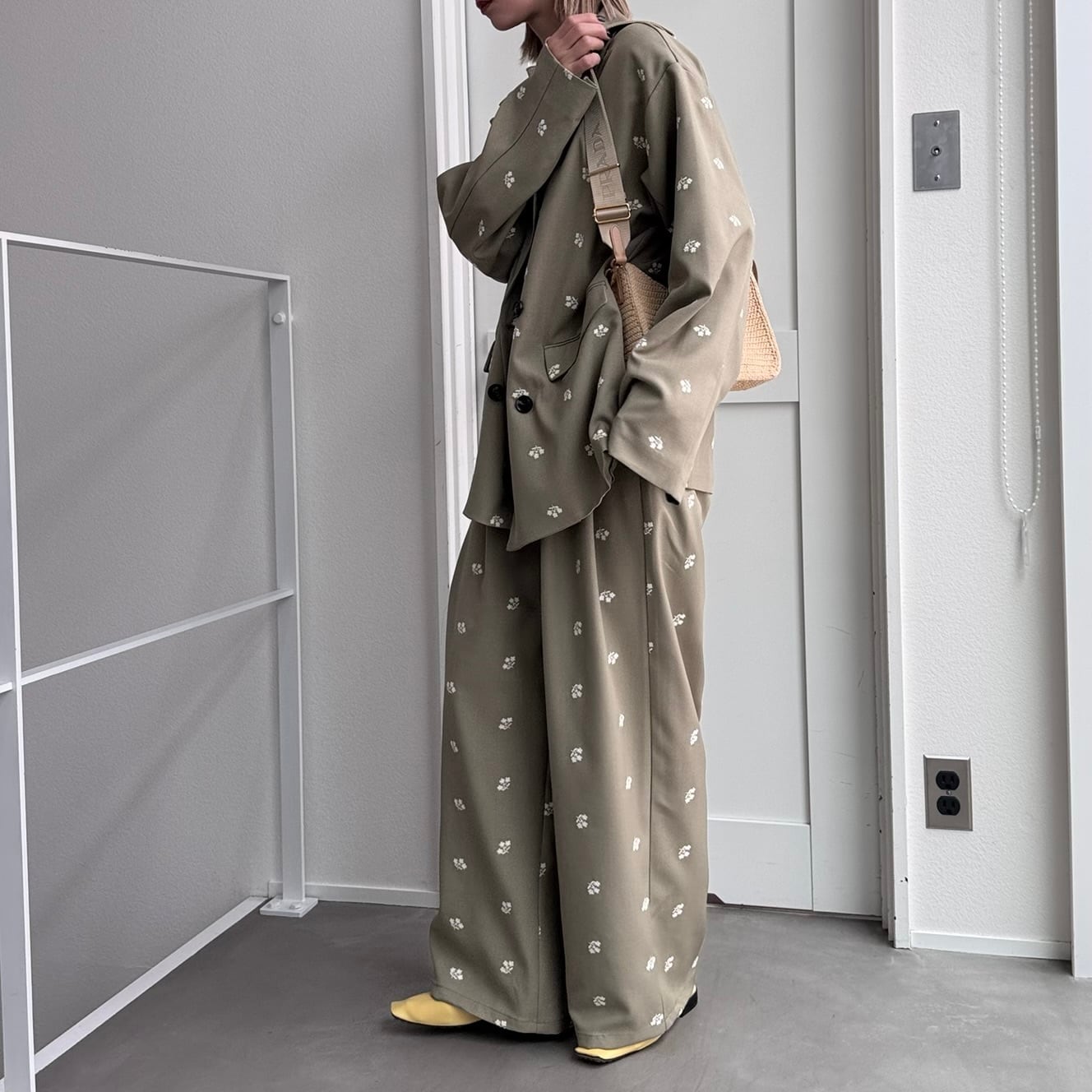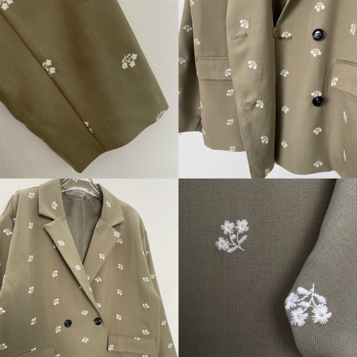 小花柄の刺繍が目を惹くオーバーサイズのジャケット。着心地も楽で、ゆったりとしたスタイリングを楽しめます。同生地/同柄のパンツとセットアップ着用も可能◎オケージョンから普段着まで様々なコーデでお楽しみいただけます。