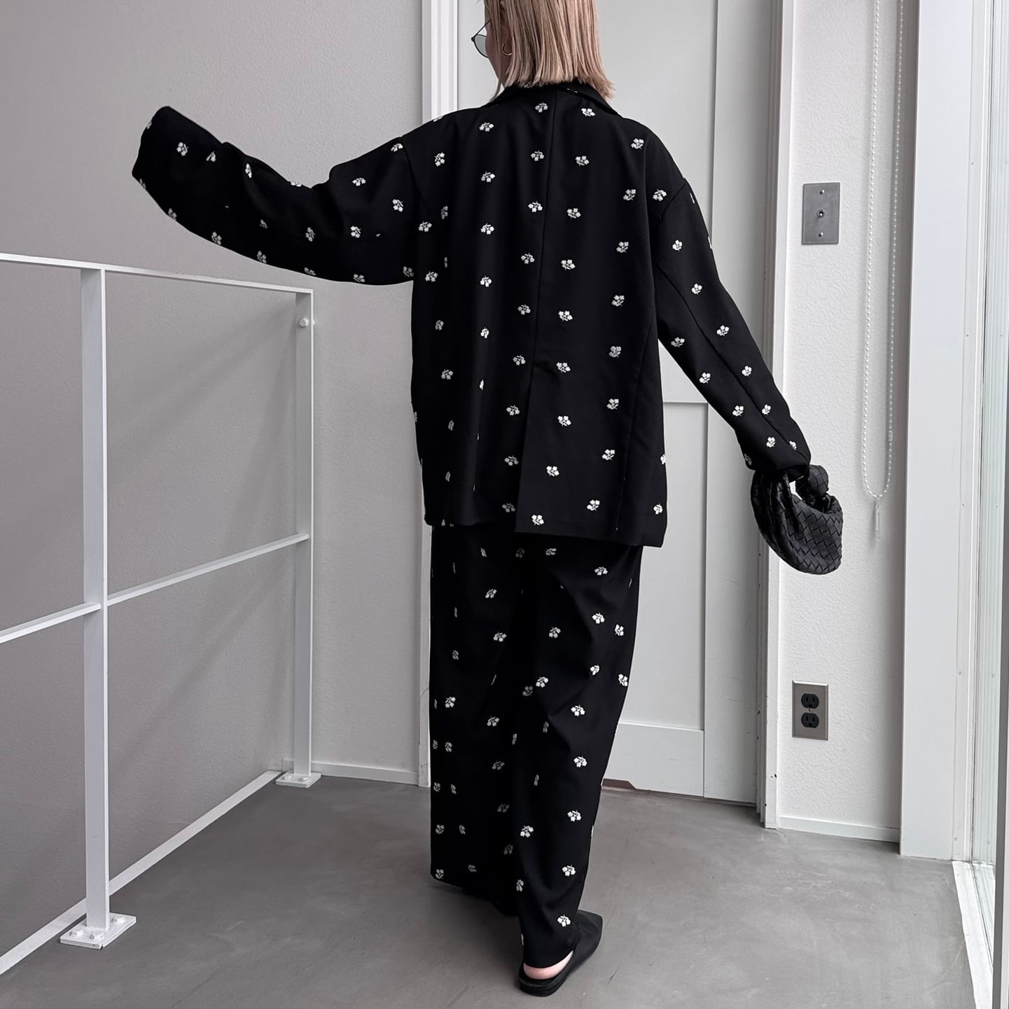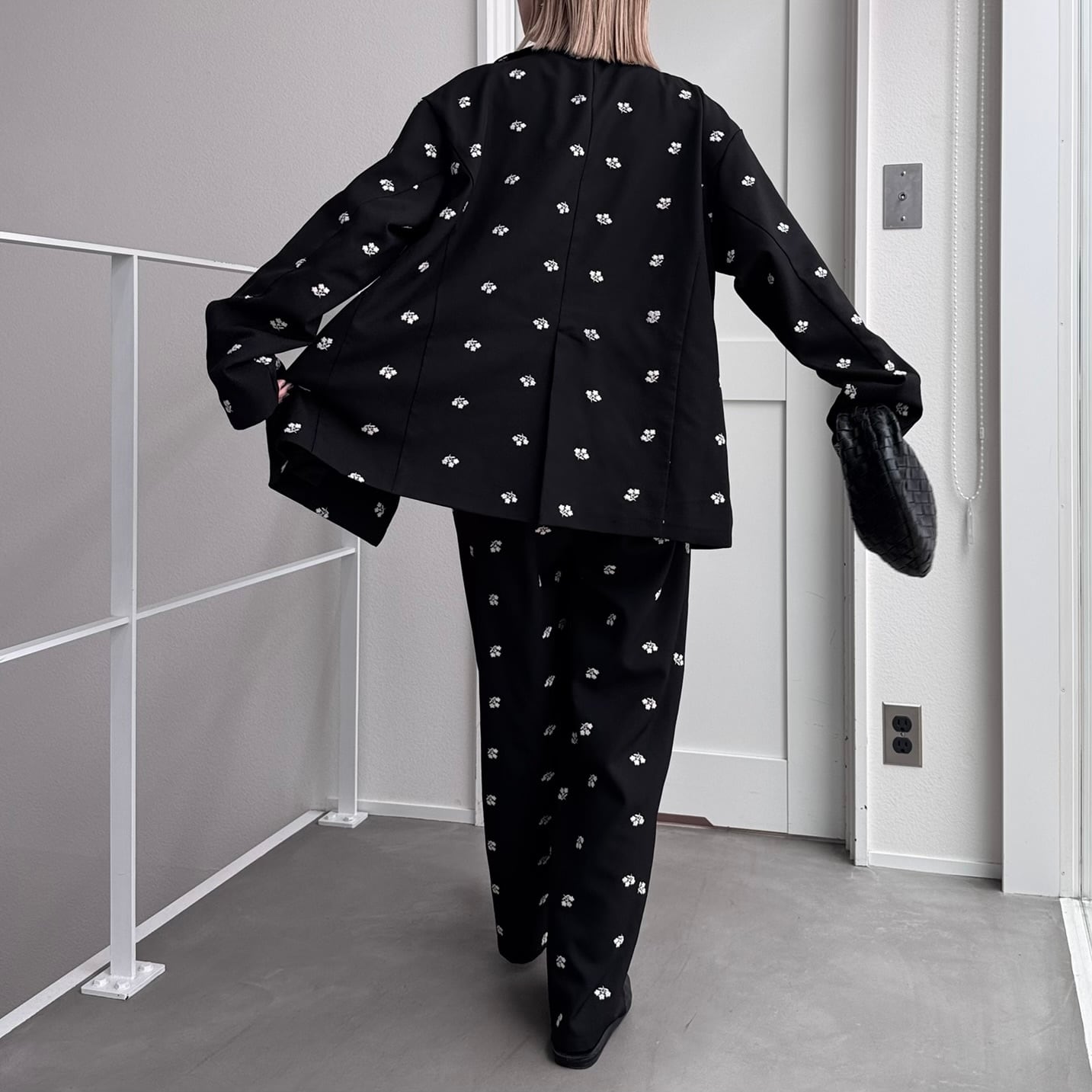 jacket:ミニフラワー刺繍オーバーJK/ブラック