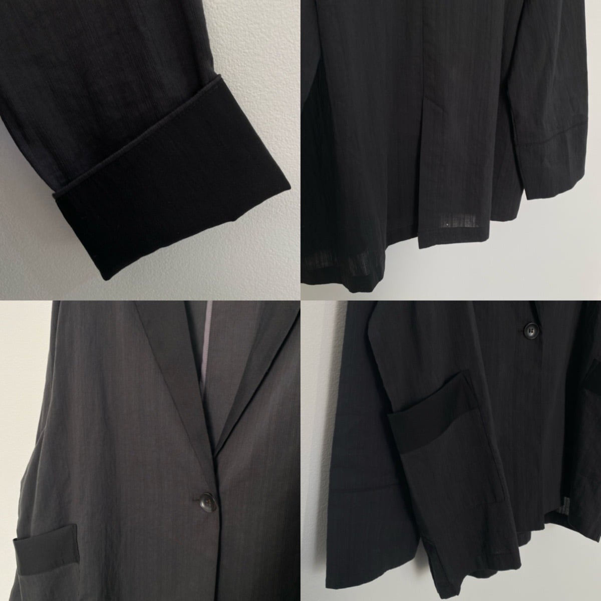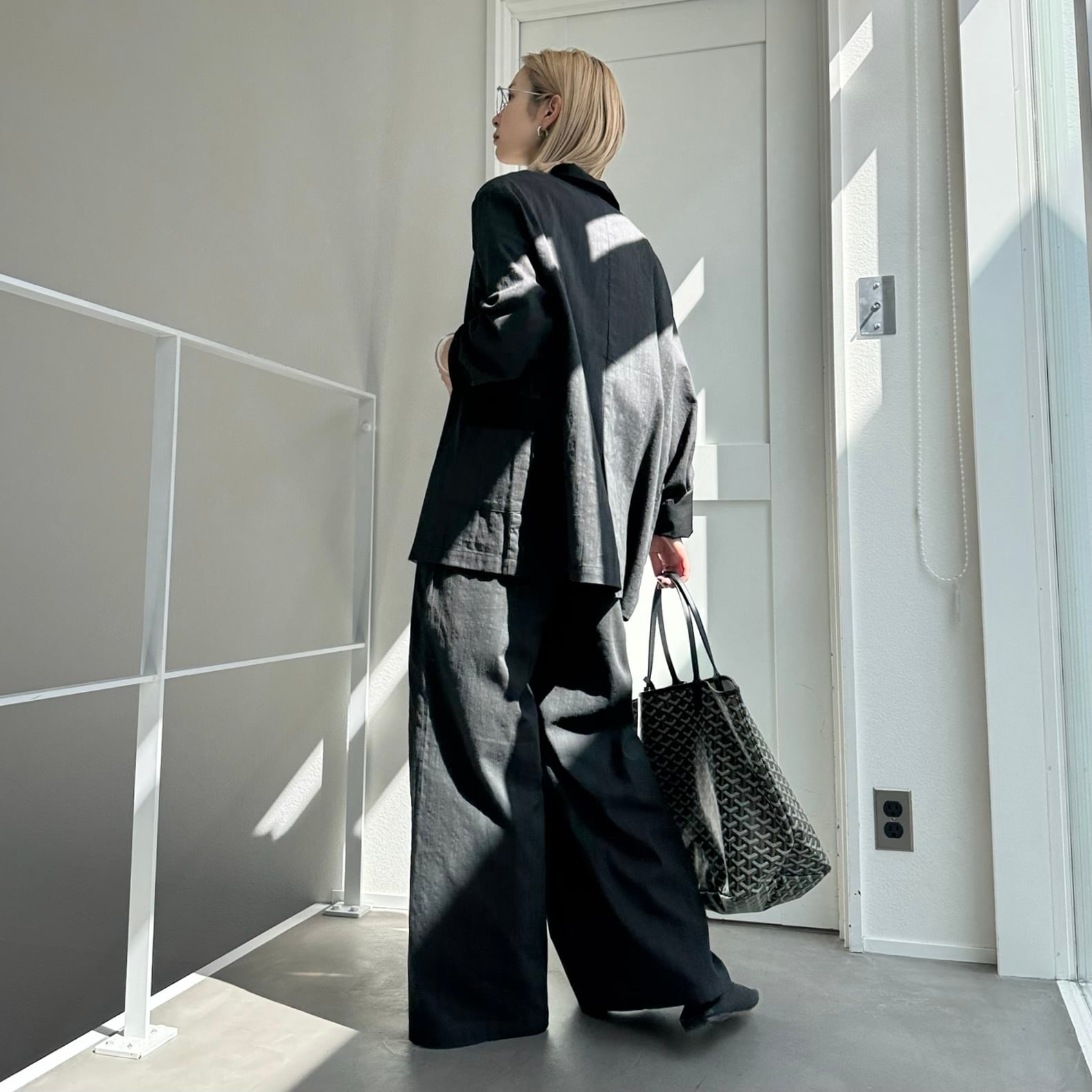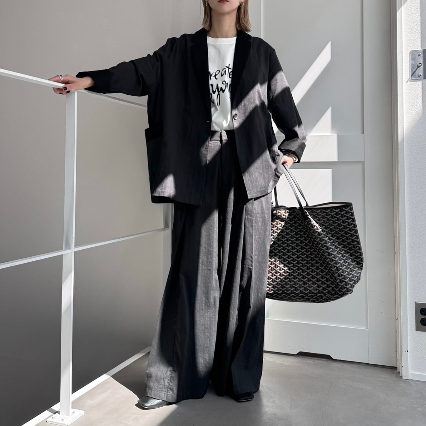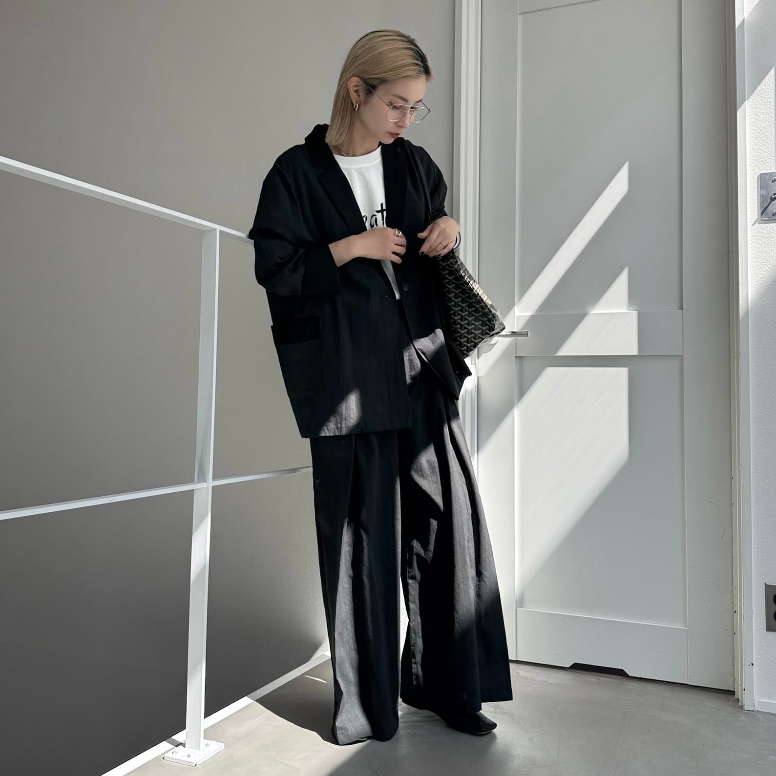 麻のような生地で通気性が良く、さらっと軽やかな着心地が特徴のテーラードジャケット。襟と袖の折り返し部分が異素材の切替えデザインがアクセントに◎カジュアルにはもちろんこれからの季節のスタイリッシュなフォーマルコーデにもお楽しみいただけます。同生地のパンツとセットアップ着用も可能◎