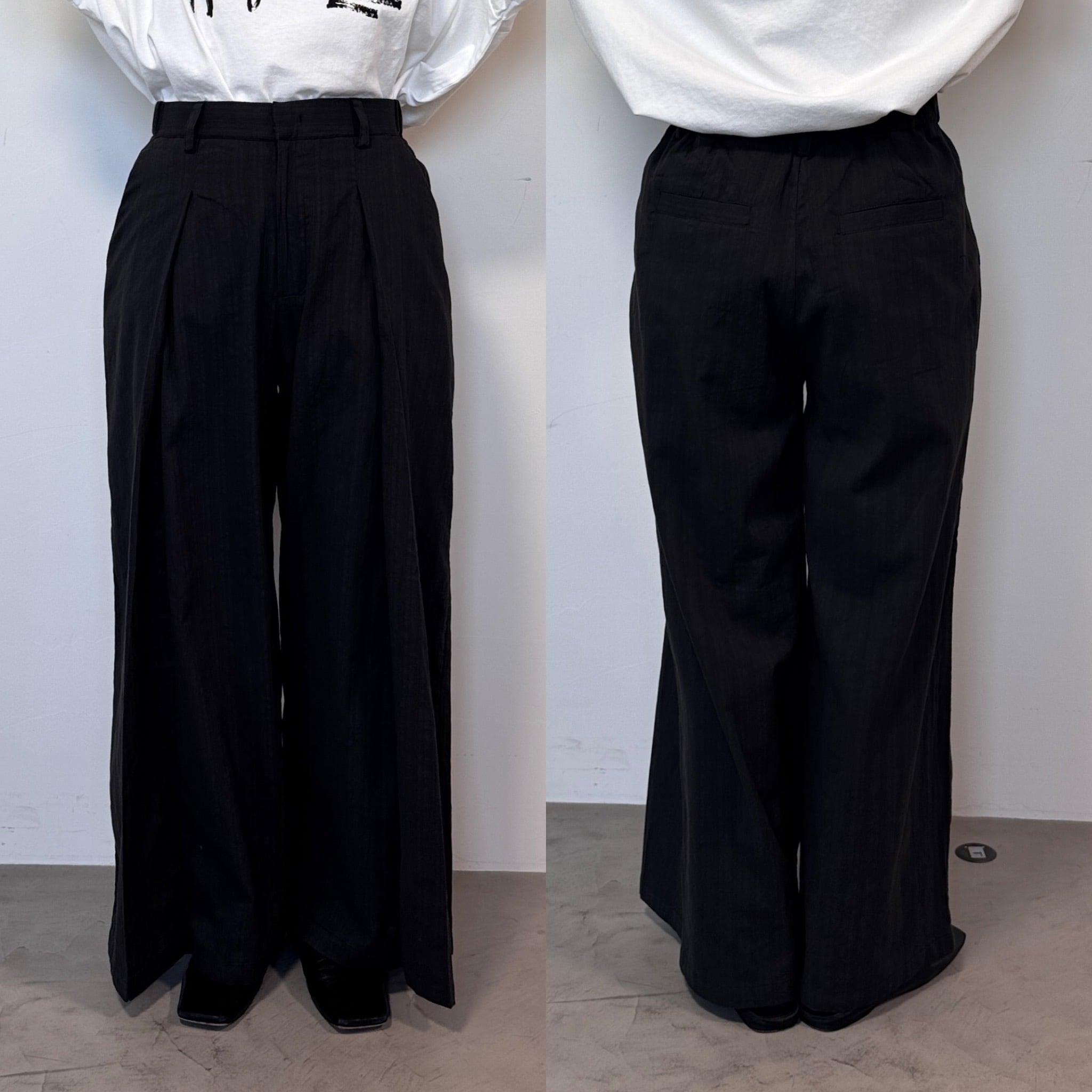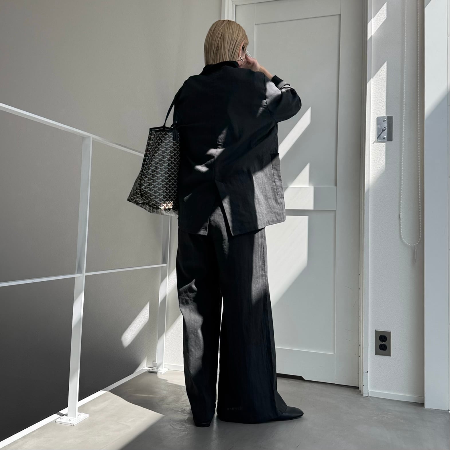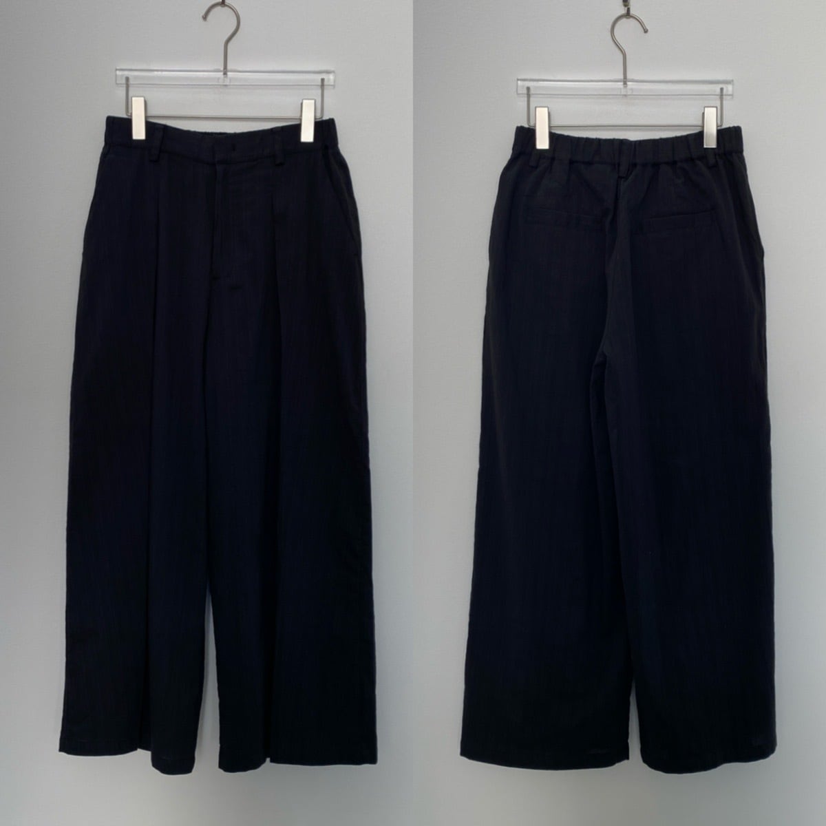麻のような軽やかな着心地のワイドパンツ。幅の深いタックが入っているため、ワイドながらもきれいなシルエットに。カジュアルにはもちろんこれからの季節のスタイリッシュなフォーマルコーデにもお楽しみいただけます。同生地のジャケットとセットアップ着用も可能◎