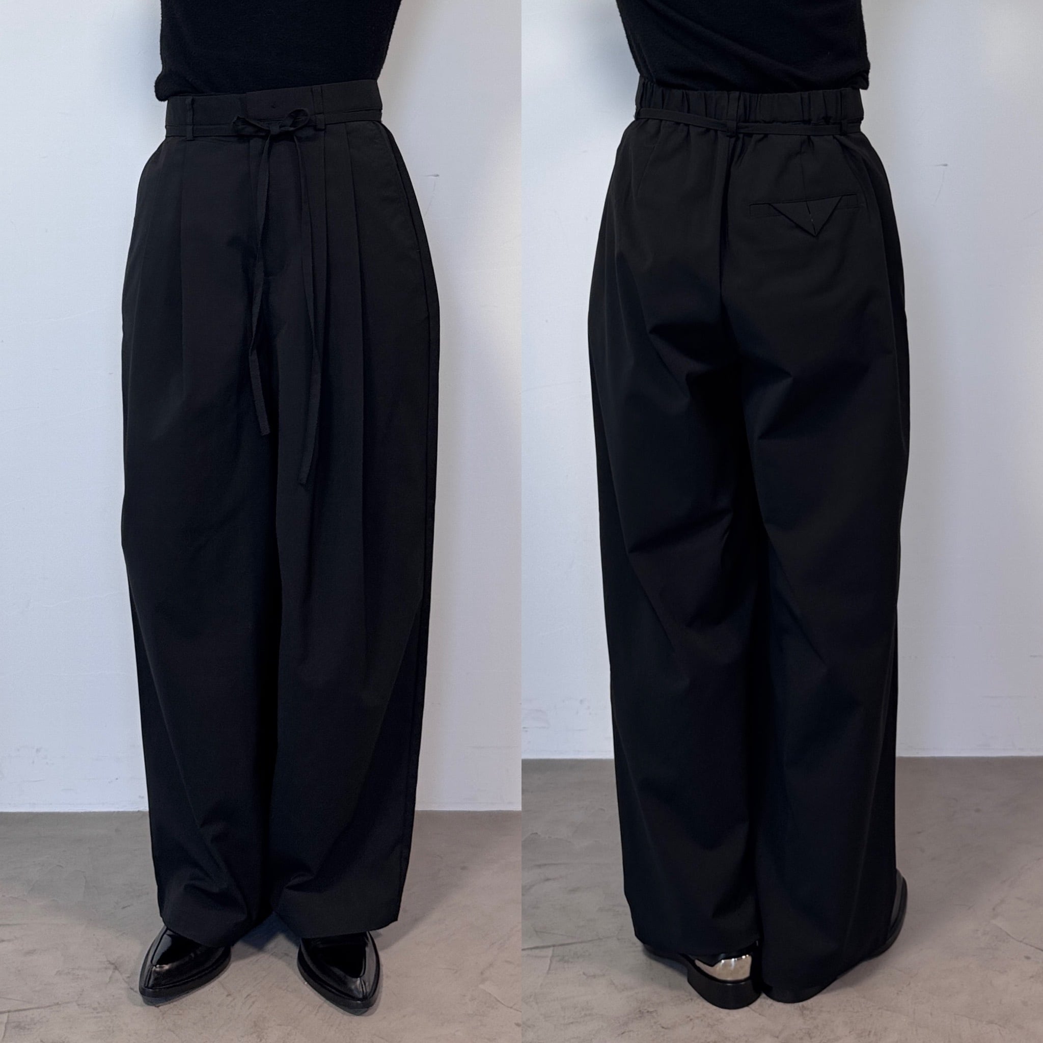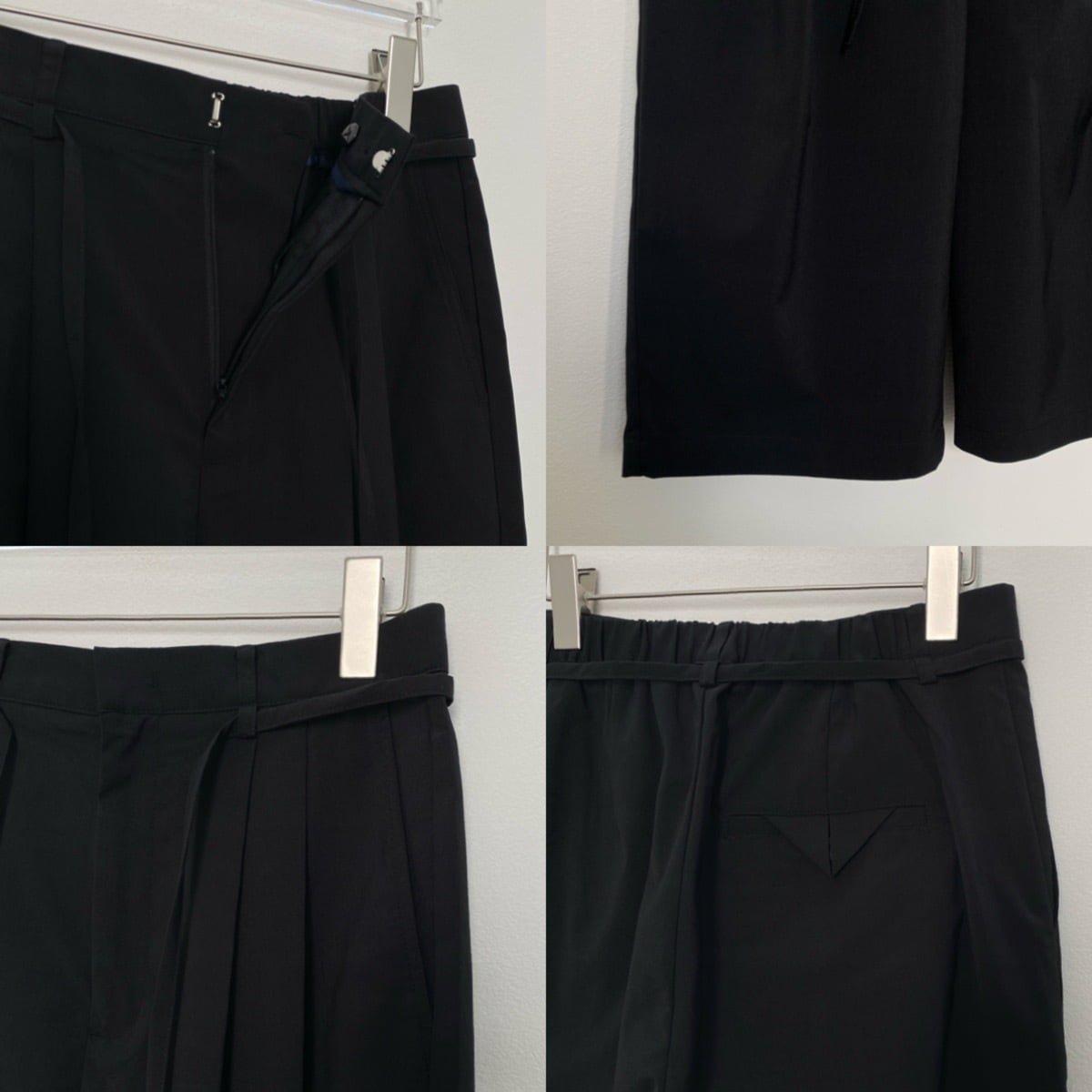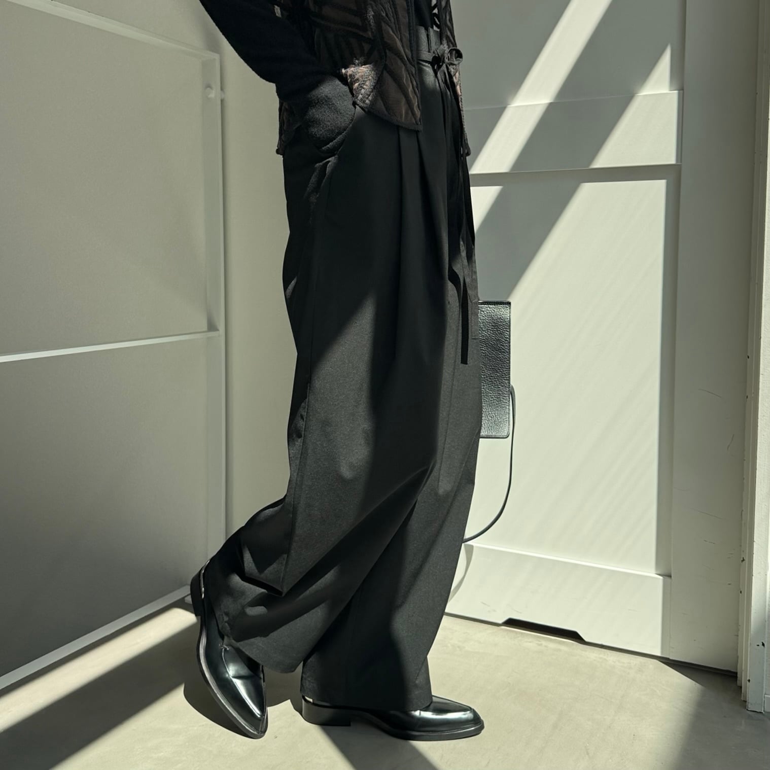 タブルベルトループ付きのタックパンツ。麻ライクな素材感が軽やかで、シーズンを通して着回しが可能◎ウエスト部分には華奢な紐が付いており、機能性だけでなくデザインのアクセントに◎デイリー使いからフォーマルコーデまで幅広いスタイリングをお楽しみいただけます。