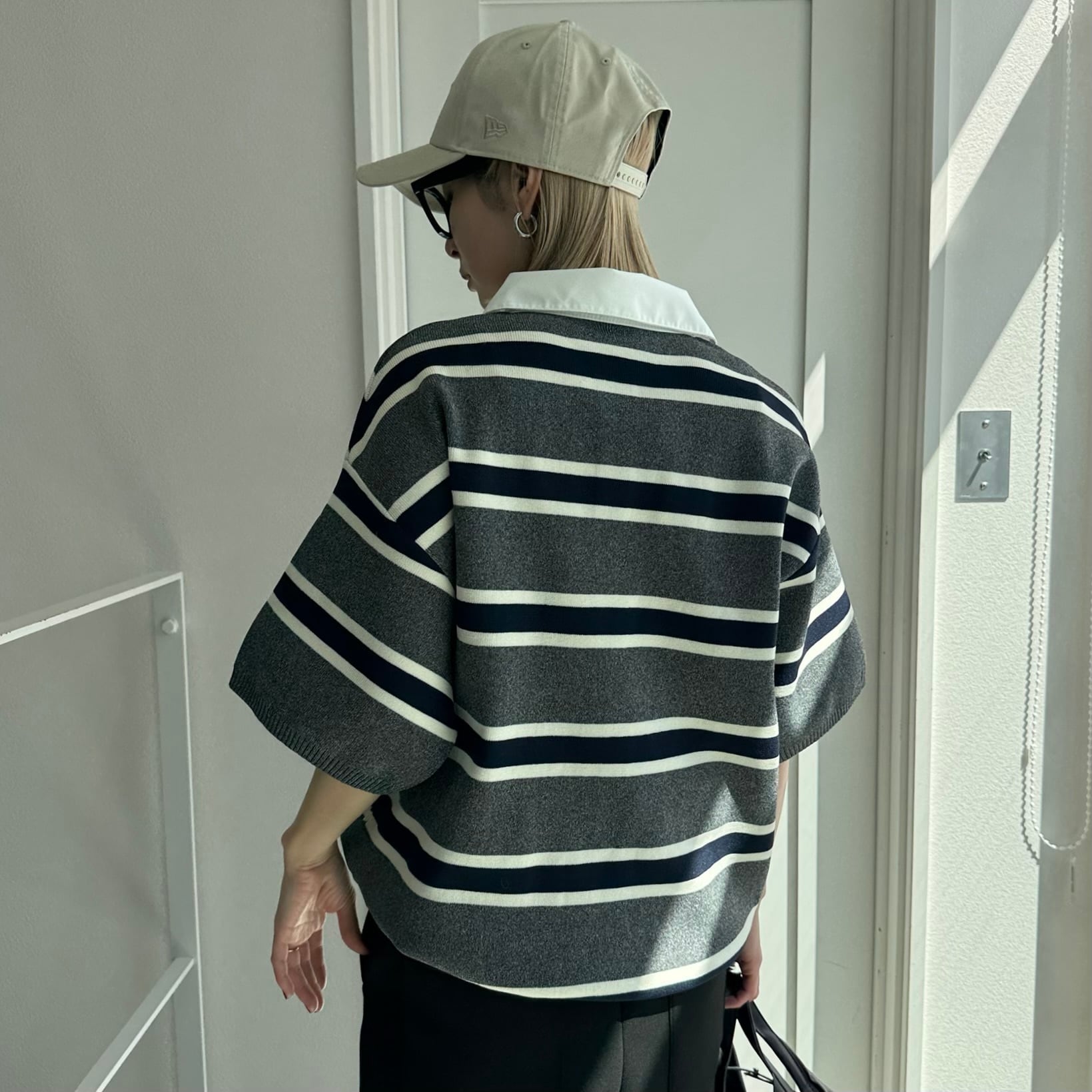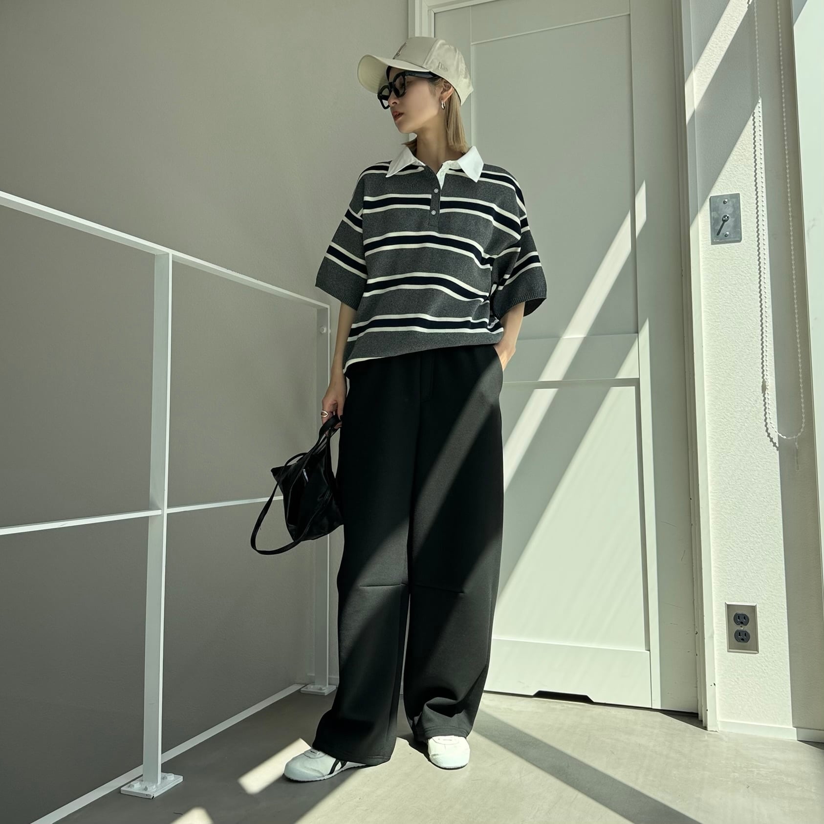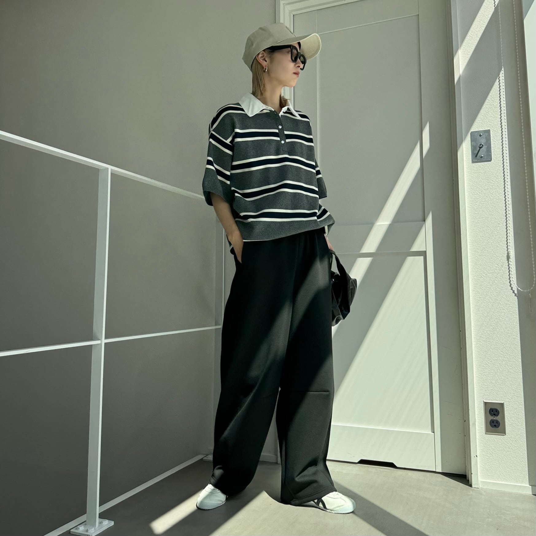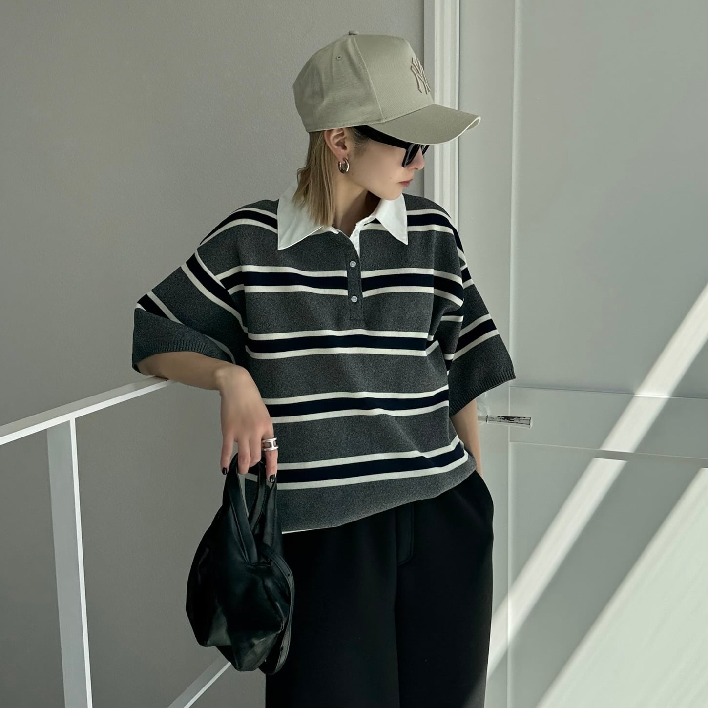 しっかりとしたポンチ生地で襟付きデザインの半袖ニット。肉厚なニットにもかかわらずインしやすく着心地◎大きめな襟でメンズライクなカジュアルスタイリングをお楽しみいただけます。