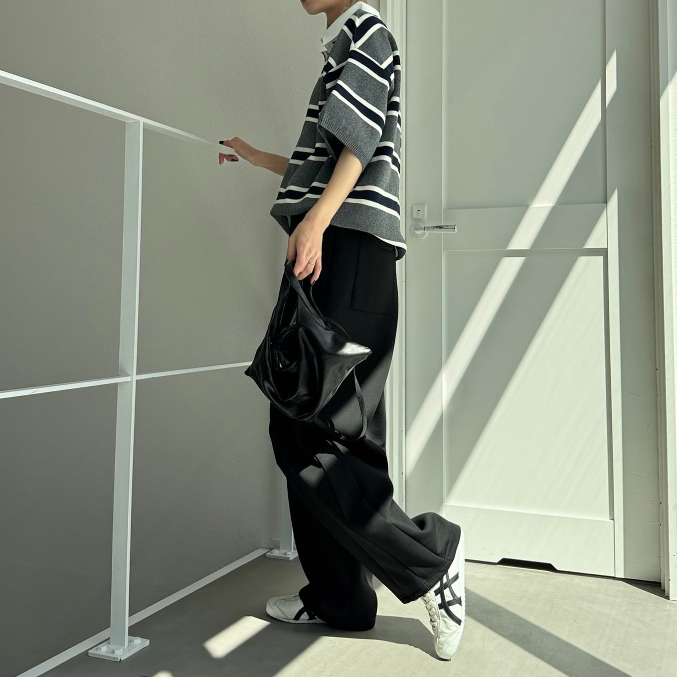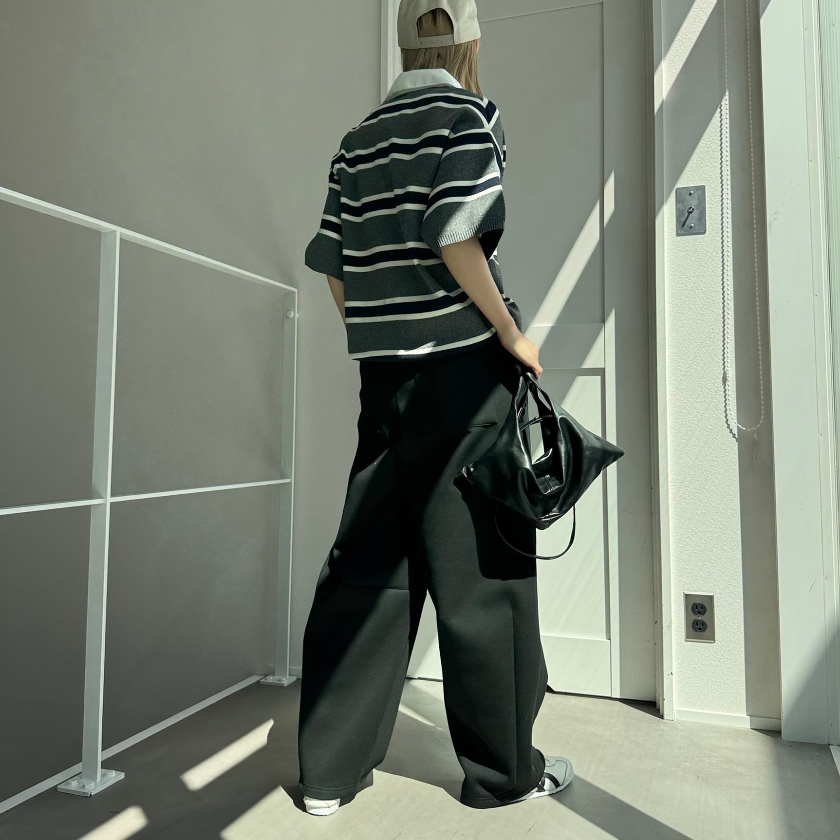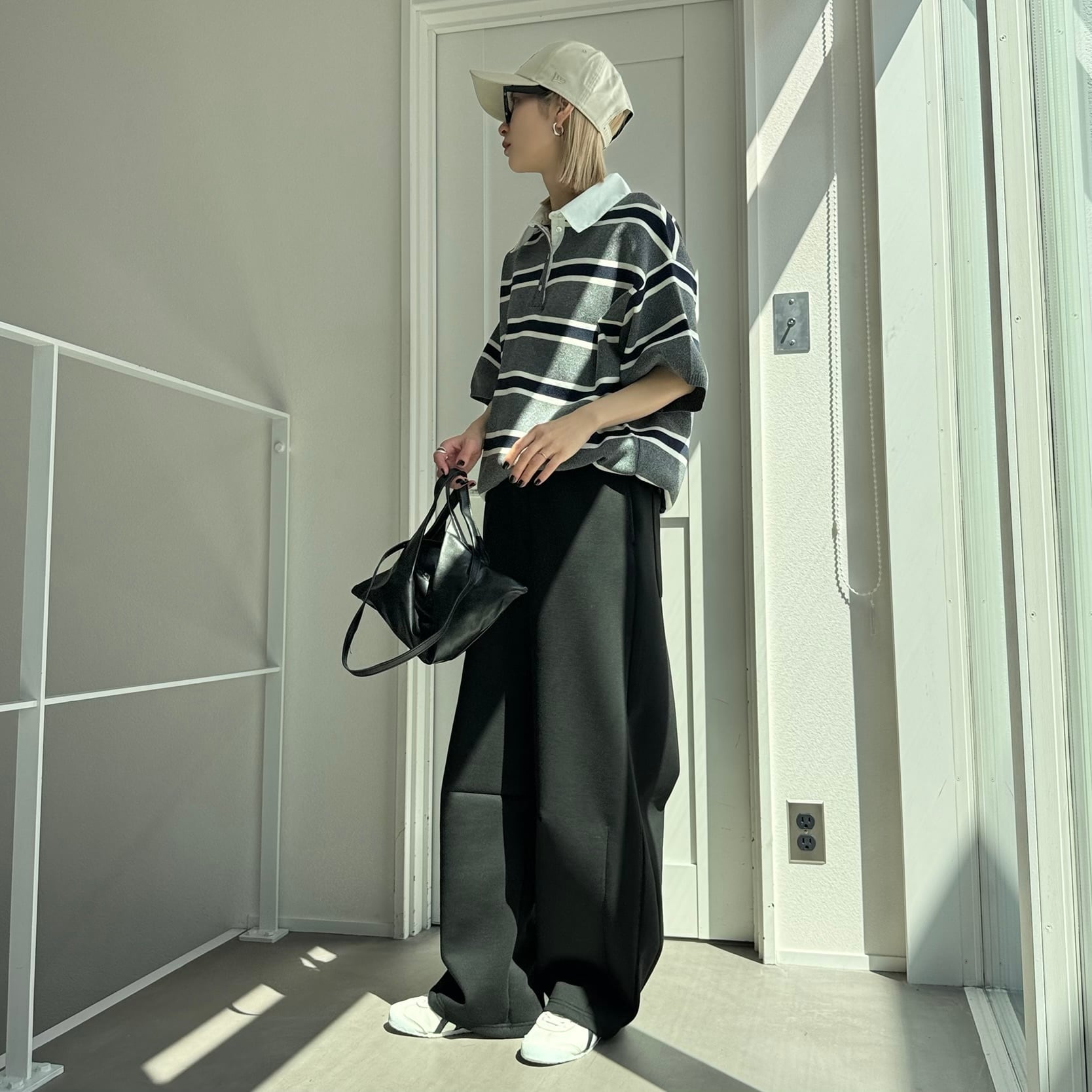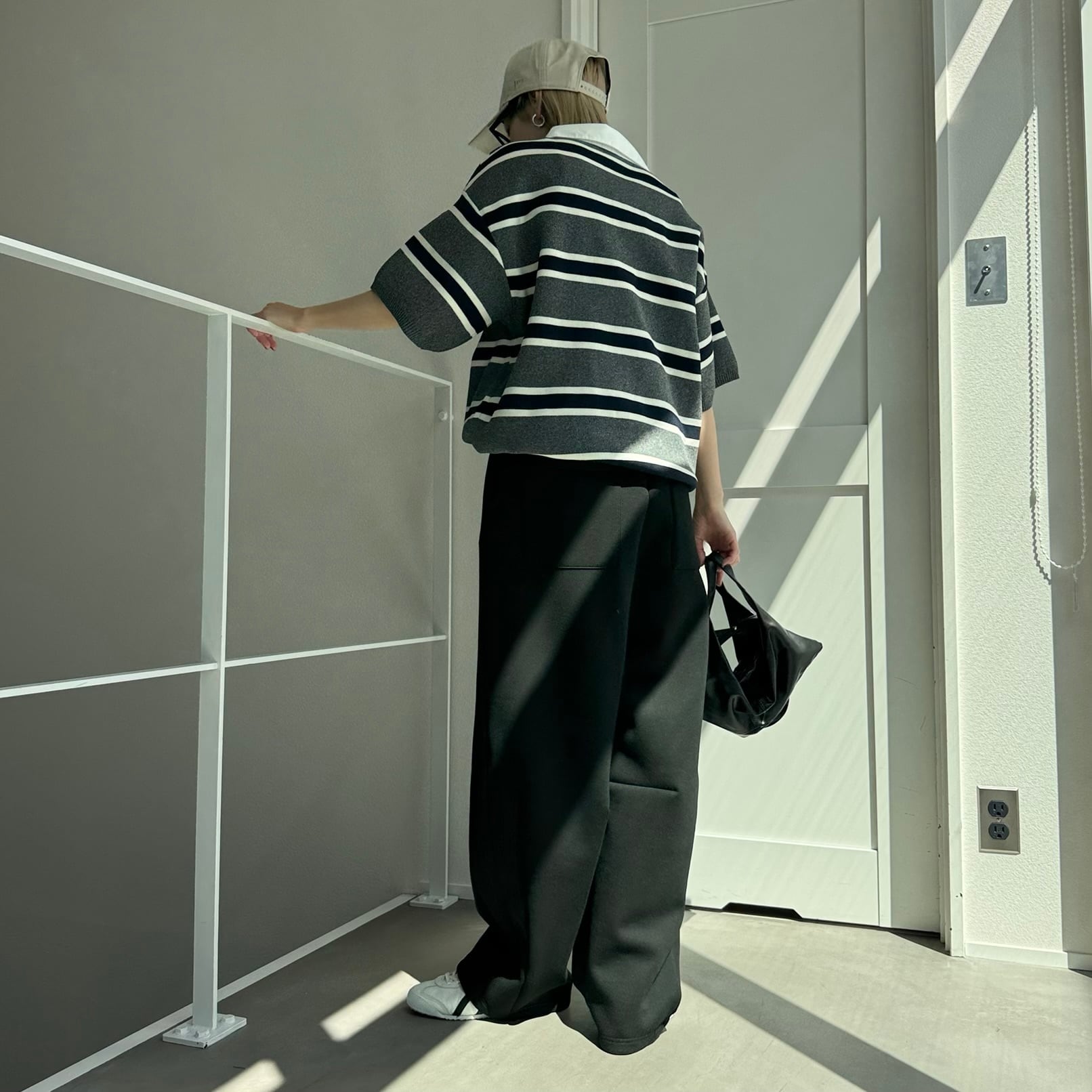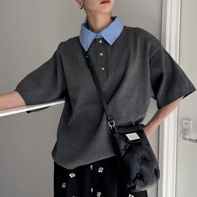 しっかりとしたポンチ生地で襟付きデザインの半袖ニット。肉厚なニットにもかかわらずインしやすく着心地◎大きめな襟でメンズライクなカジュアルスタイリングをお楽しみいただけます。