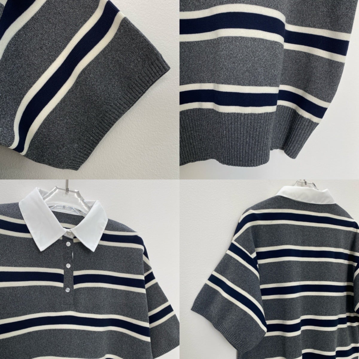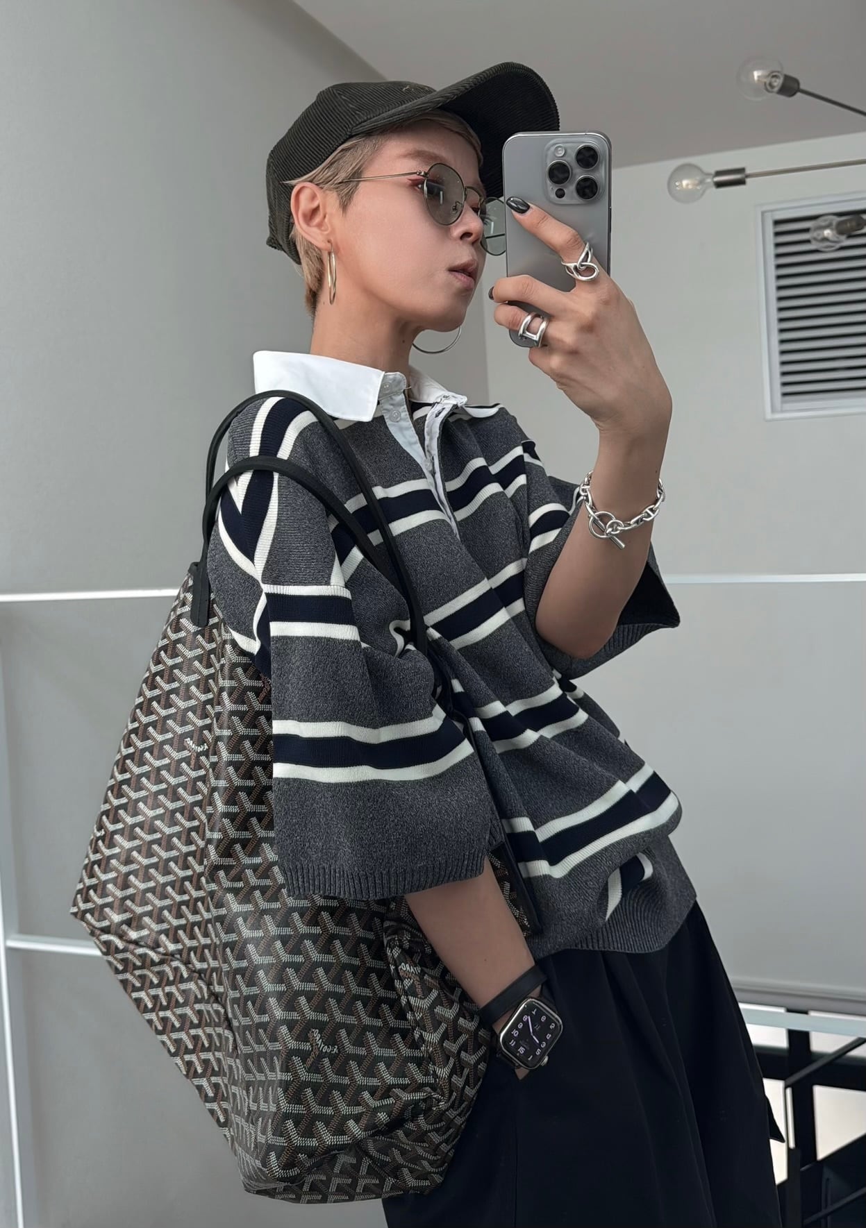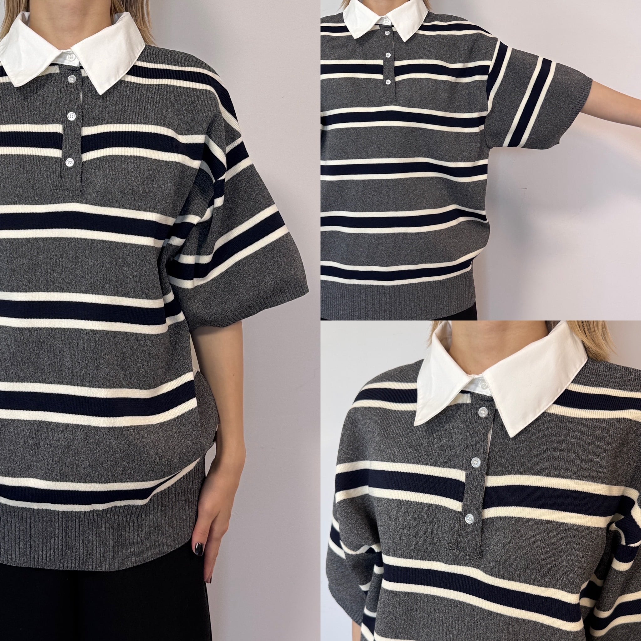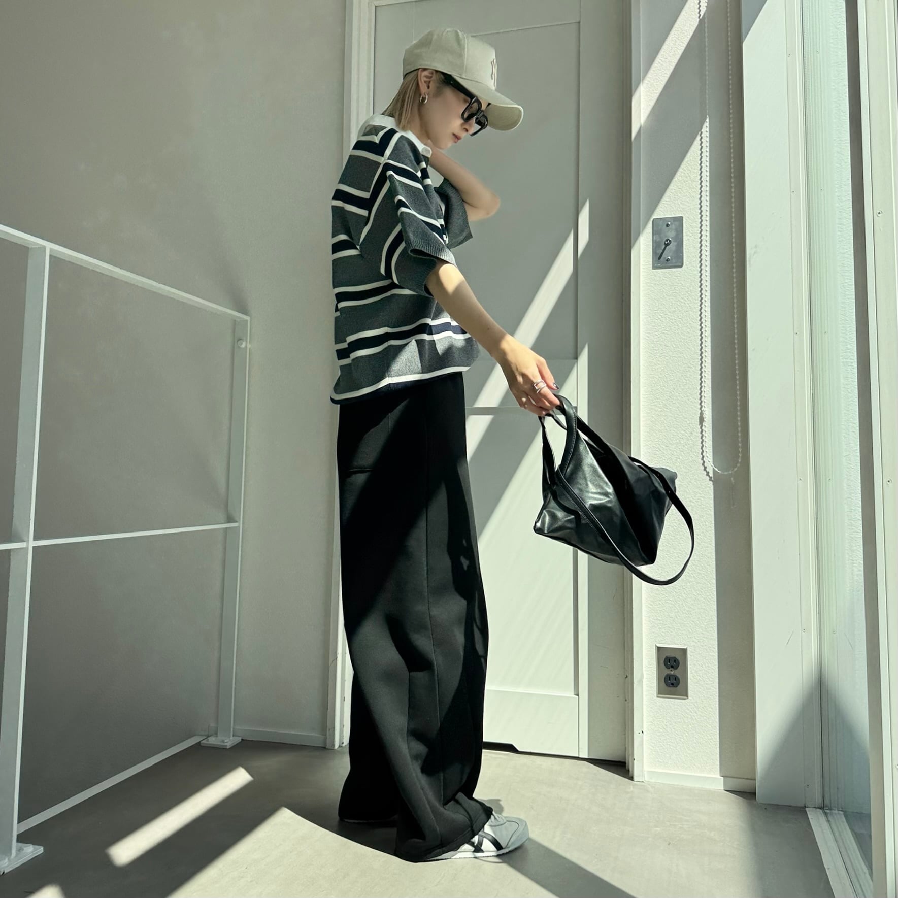 しっかりとしたポンチ生地で襟付きデザインの半袖ニット。肉厚なニットにもかかわらずインしやすく着心地◎大きめな襟でメンズライクなカジュアルスタイリングをお楽しみいただけます。